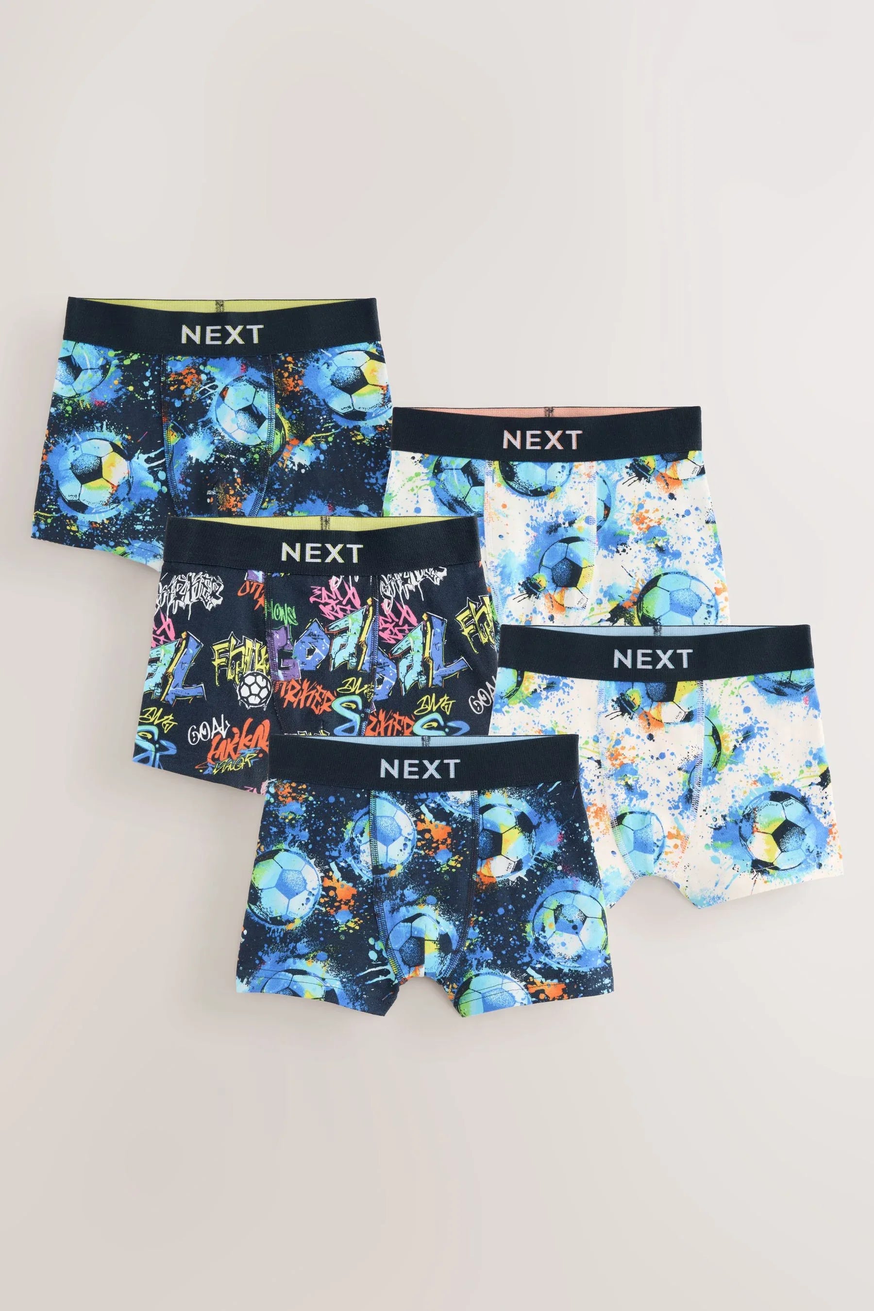 Blue Football Print Boxers 5 Pack