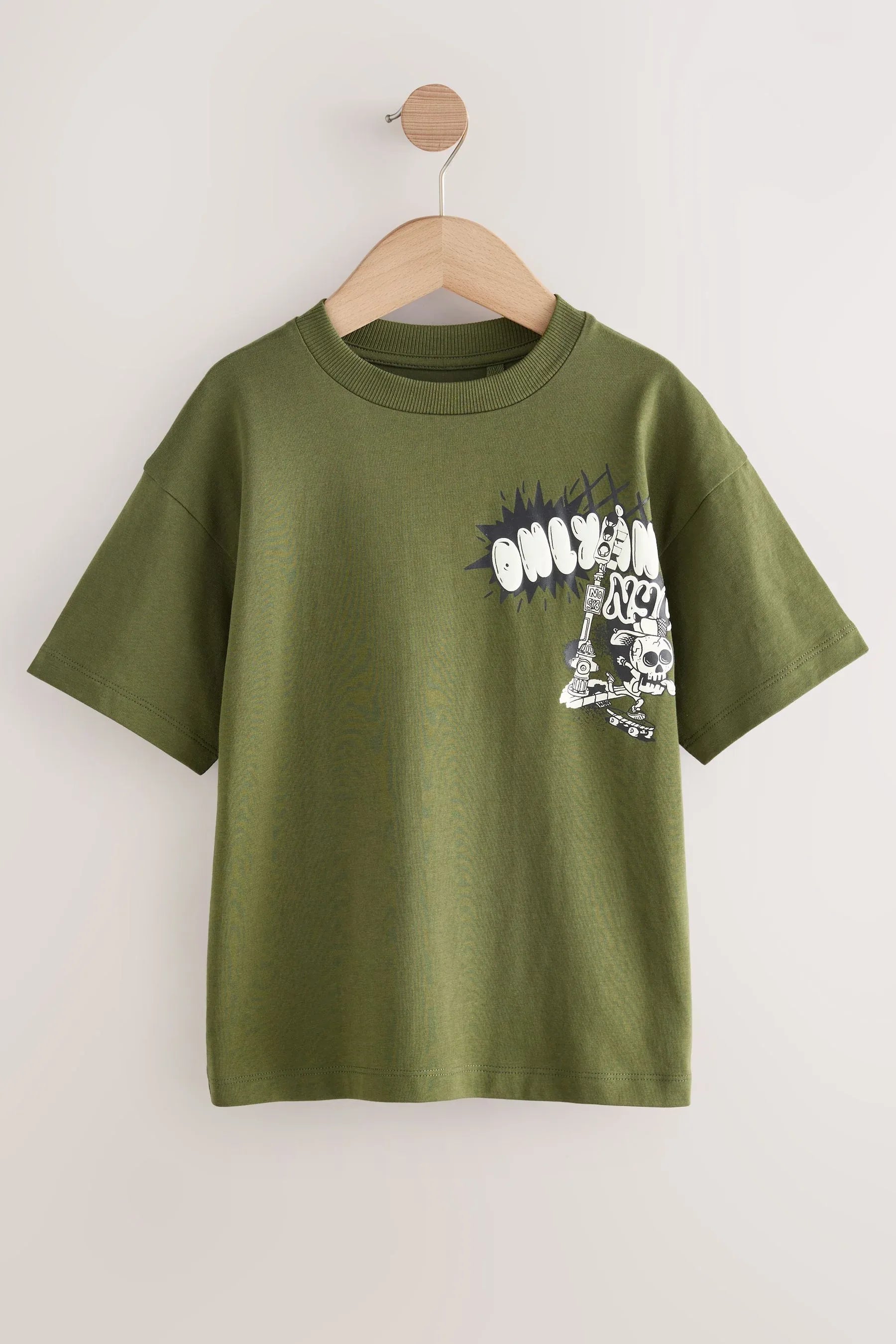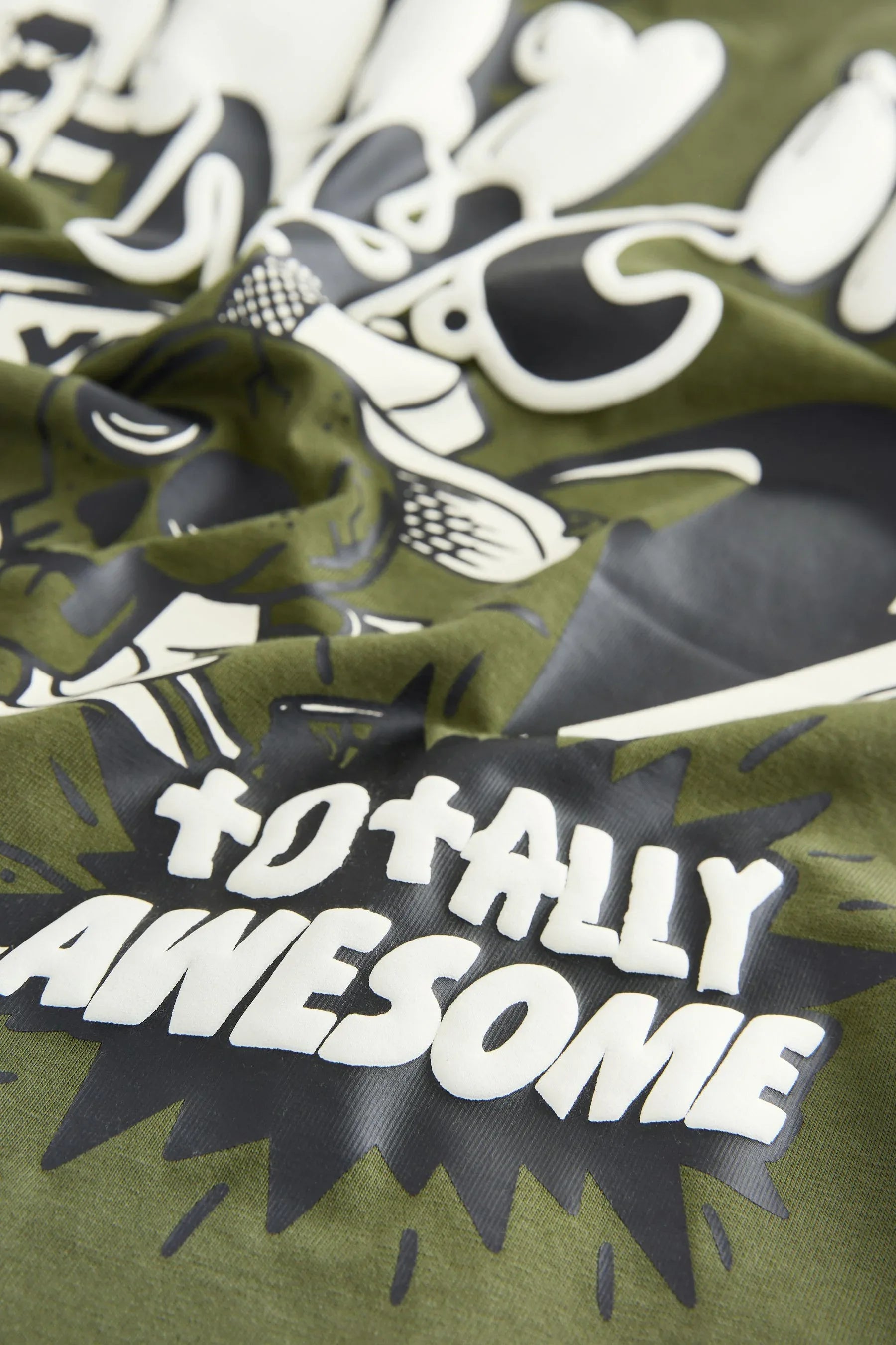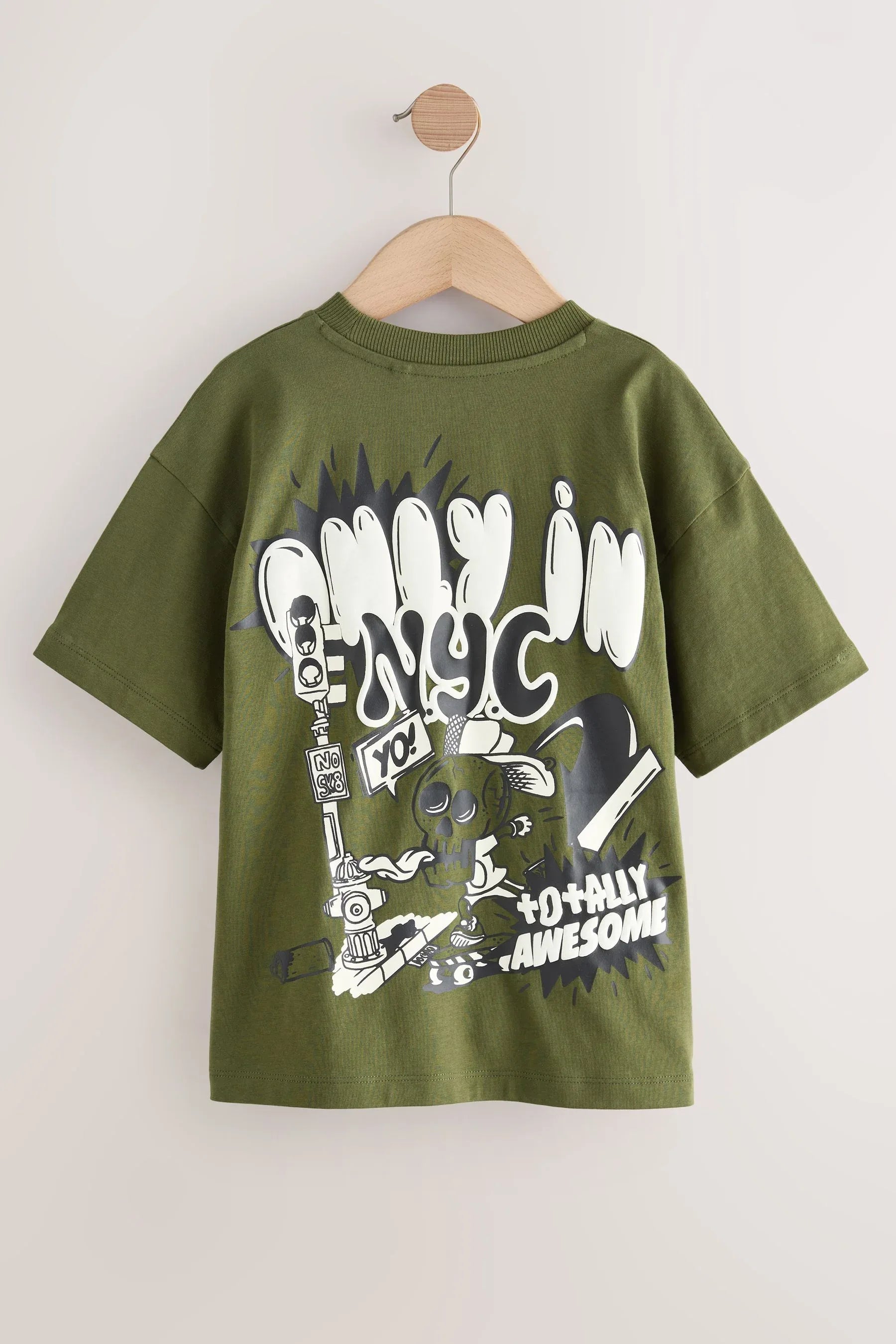 Khaki Green Graffiti Back Relaxed Fit Short Sleeve Graphic T-Shirt