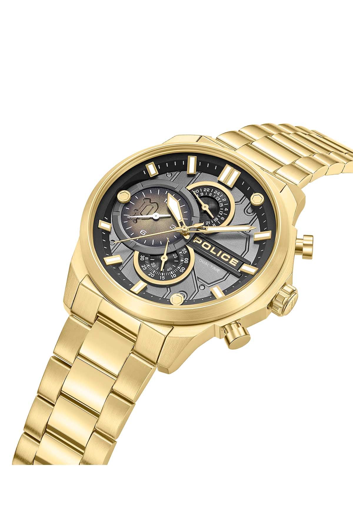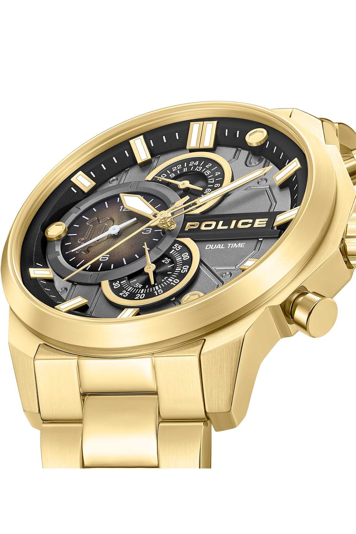 POLICE PEWGK0039208 GENTS REACTOR 46MM BLACK STAINLESS STEEL IP GOLD MULTI FUNCTION-DUAL TIME