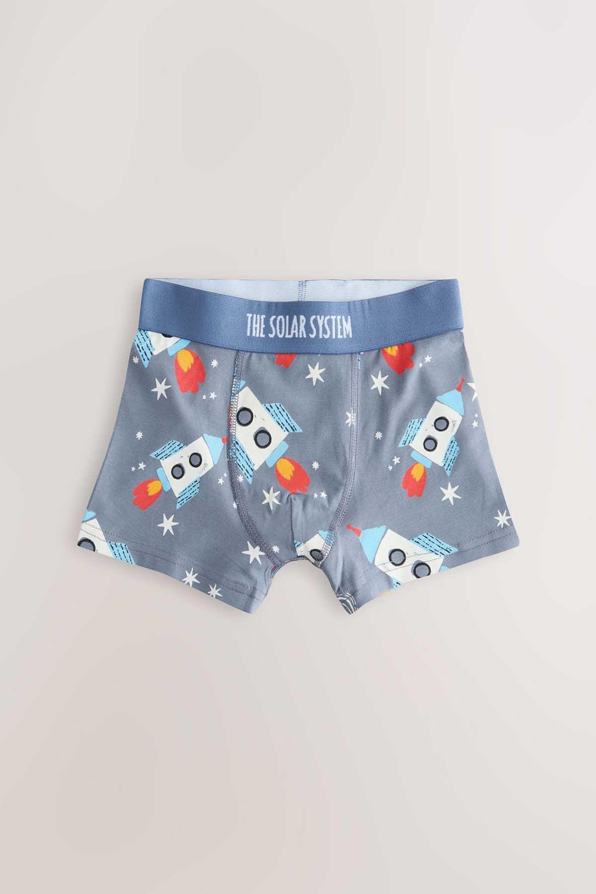Blue Space Print Junior Character Trunks 5 Pack (1.5-16yrs)