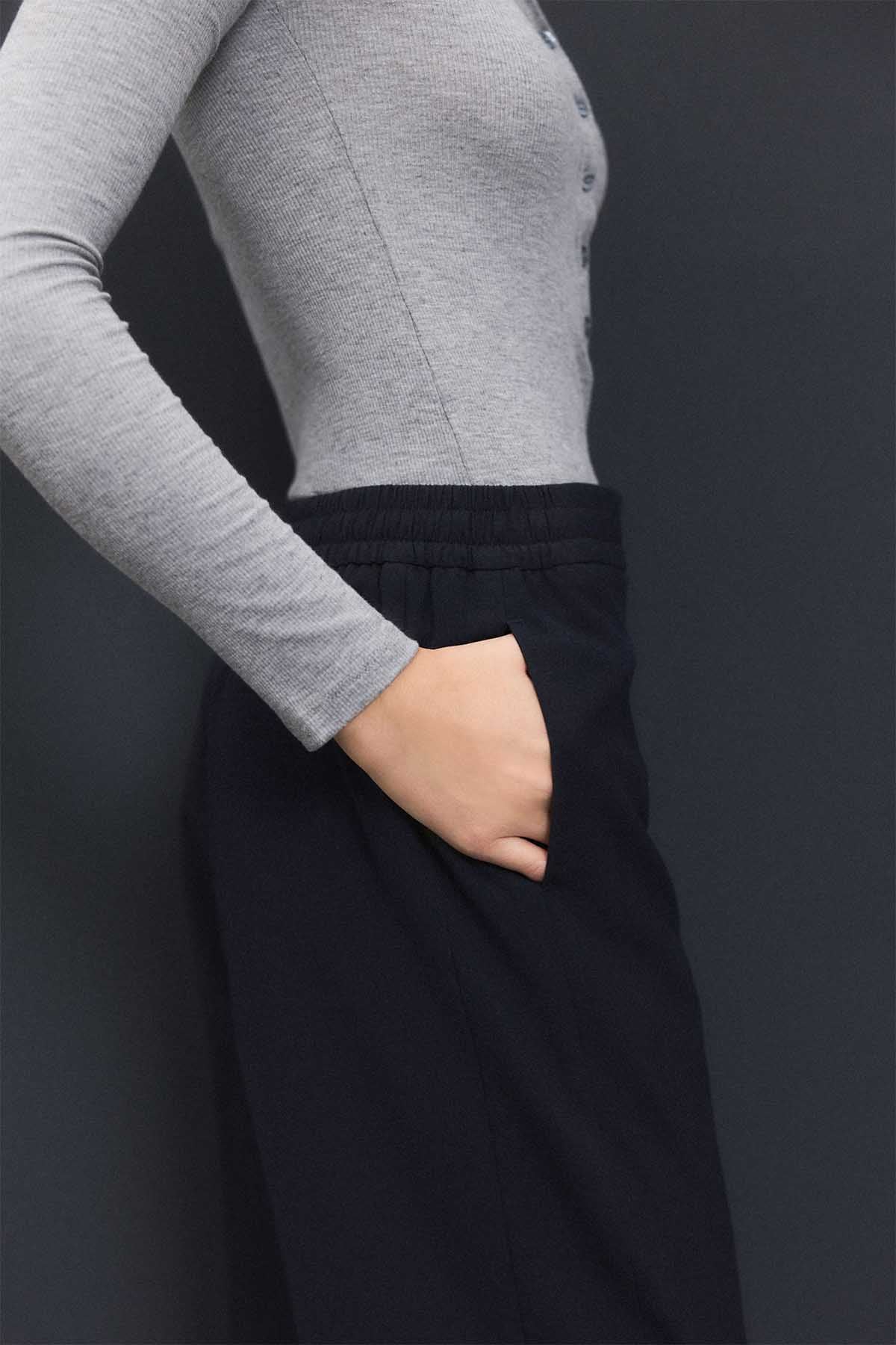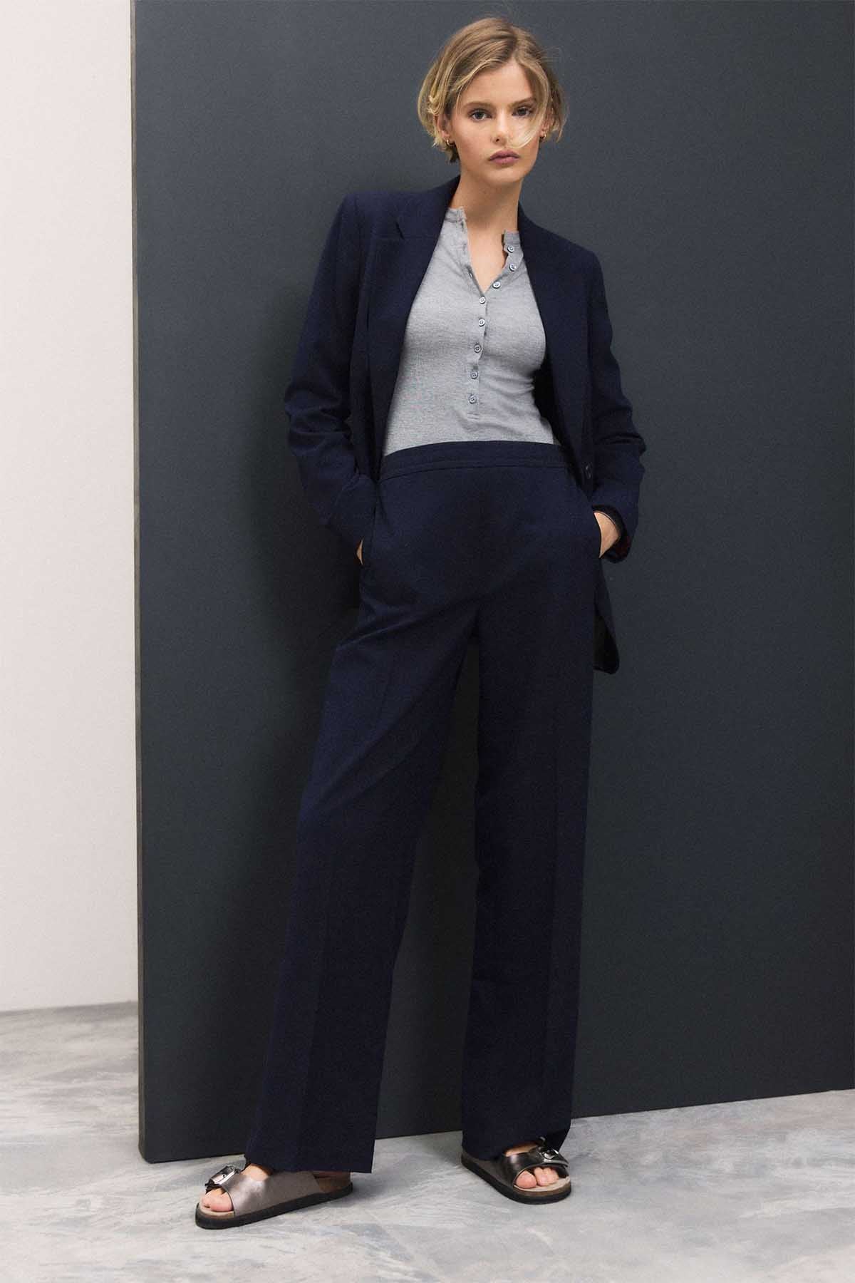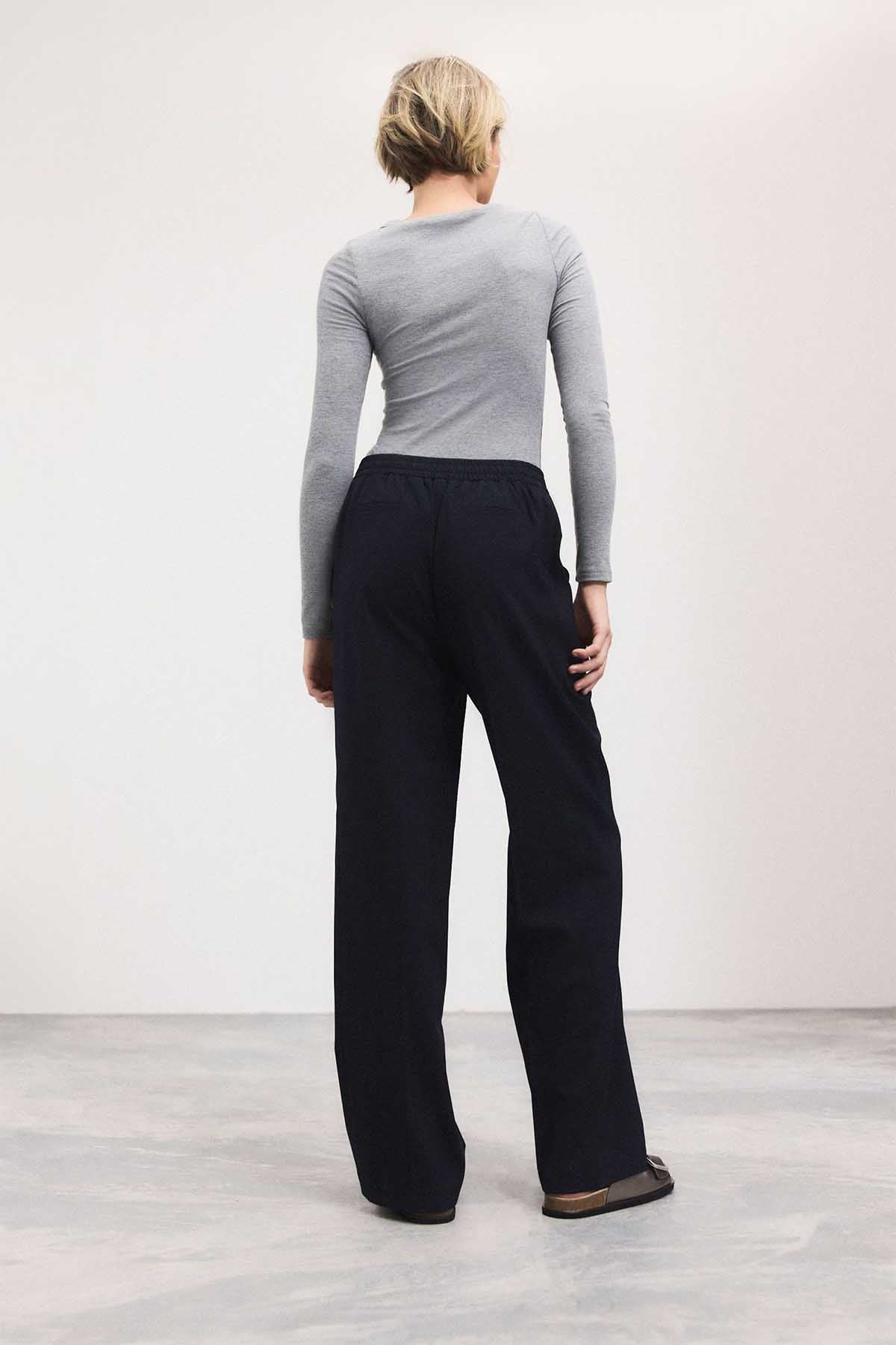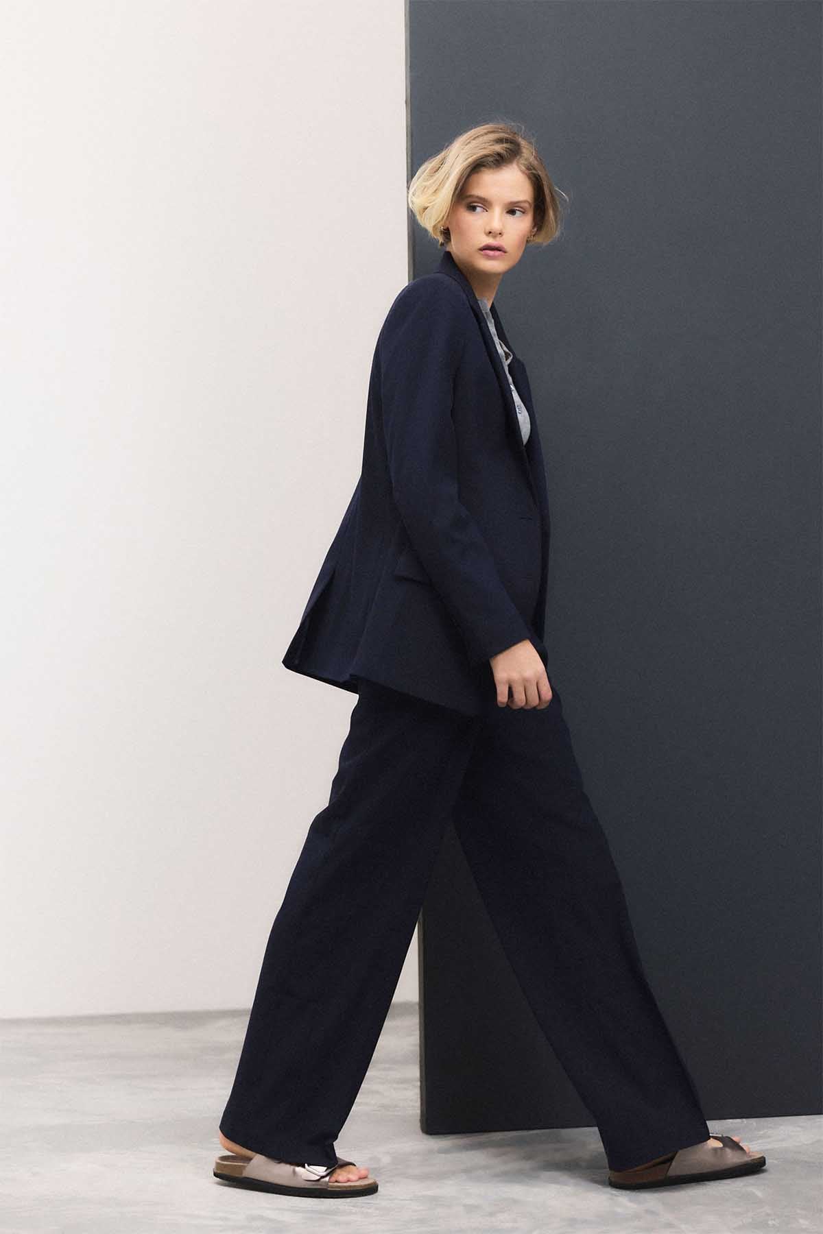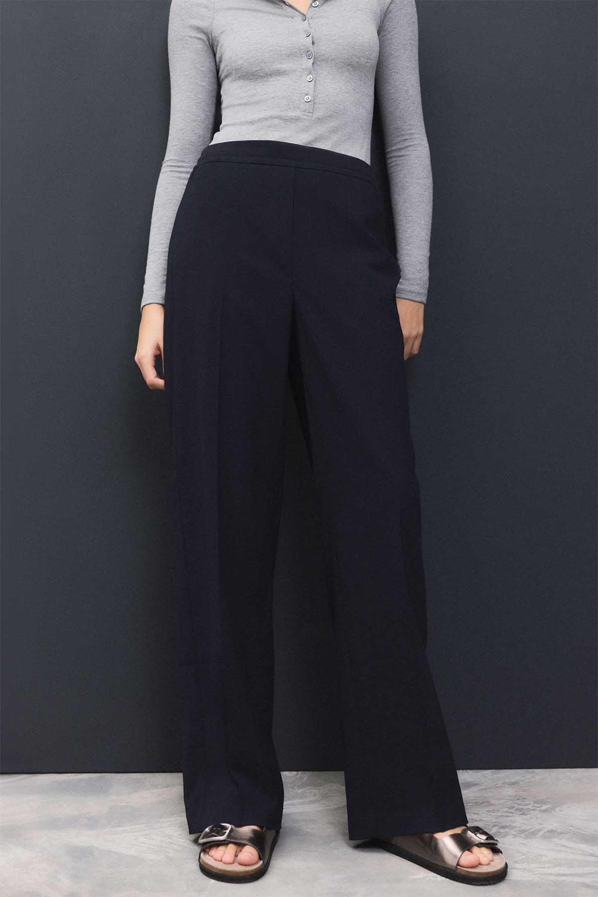 Navy Blue Tailored Wide Leg Trousers With Wool 66% Recycled polyester25% Vis