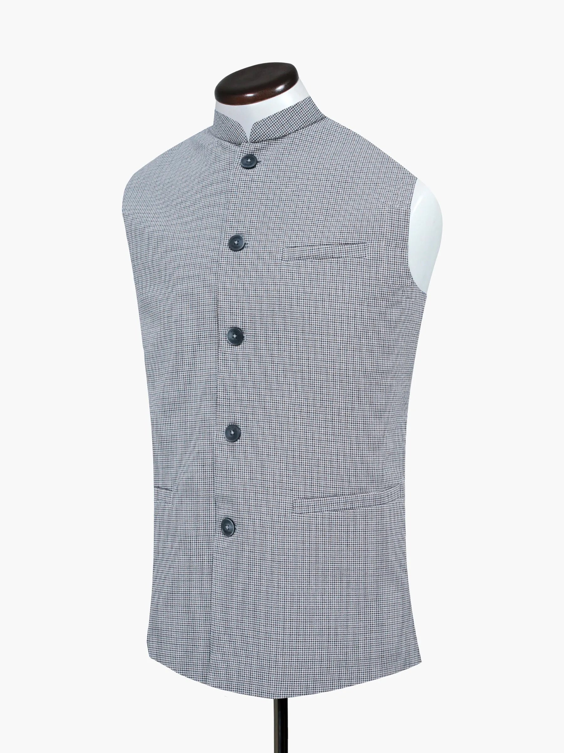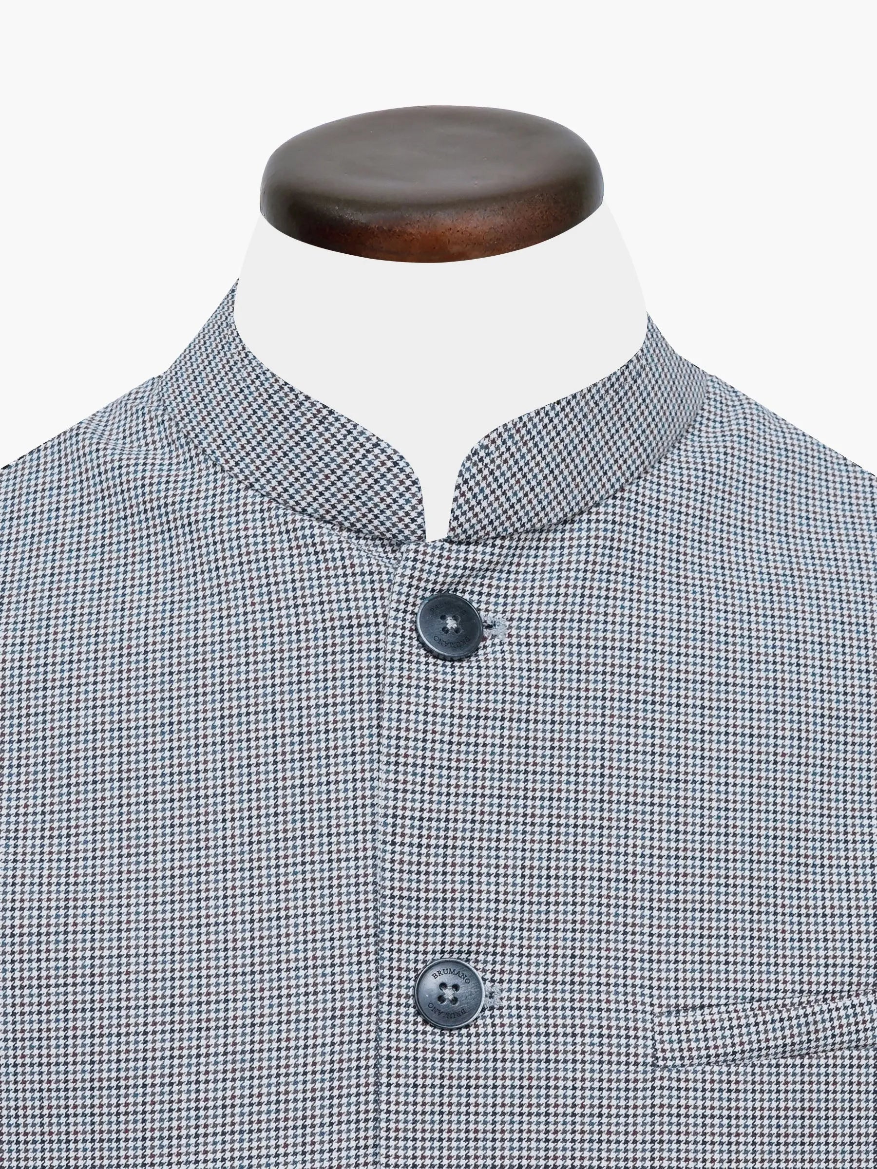 A refined blend of modern tailoring and timeless charm, this waistcoat features a beige base with a multicolor houndstooth pattern. Designed with a structured fit. Ideal for wearing it on special days with white shalwar kameez