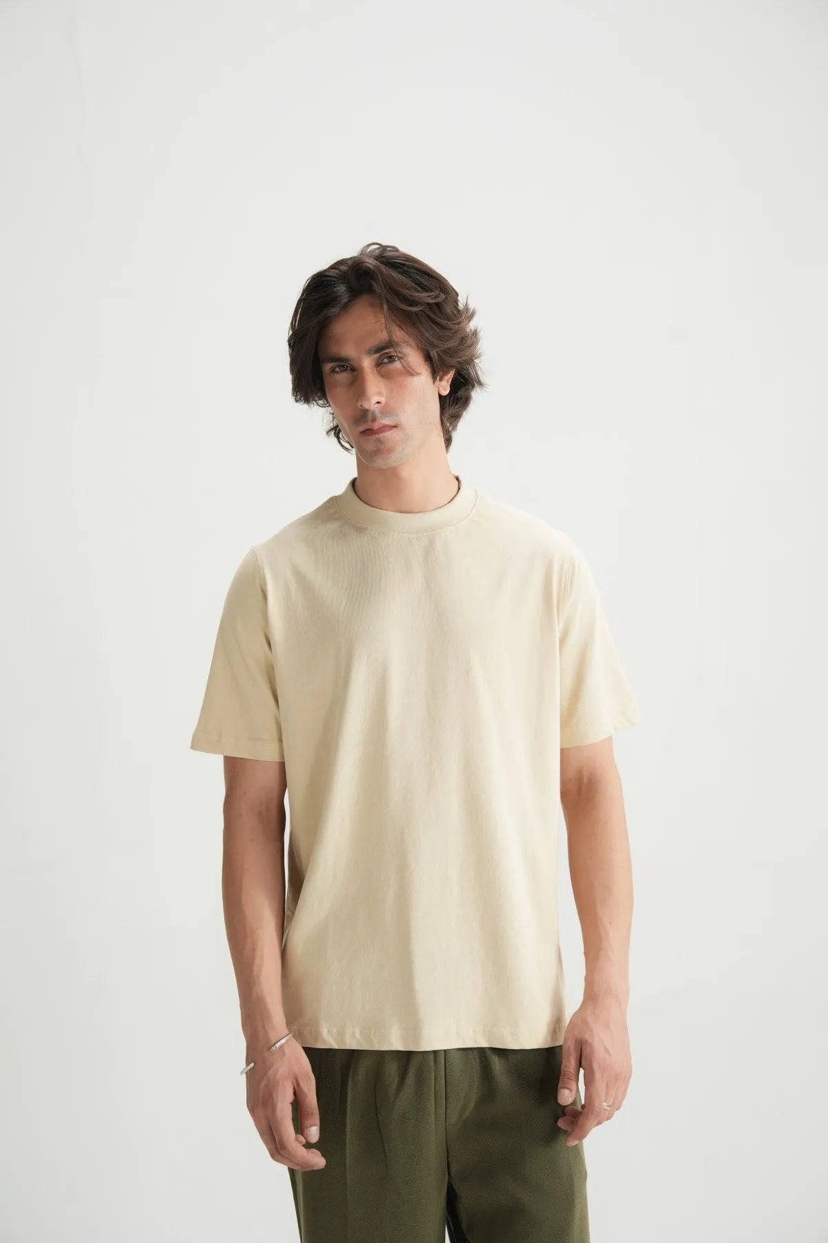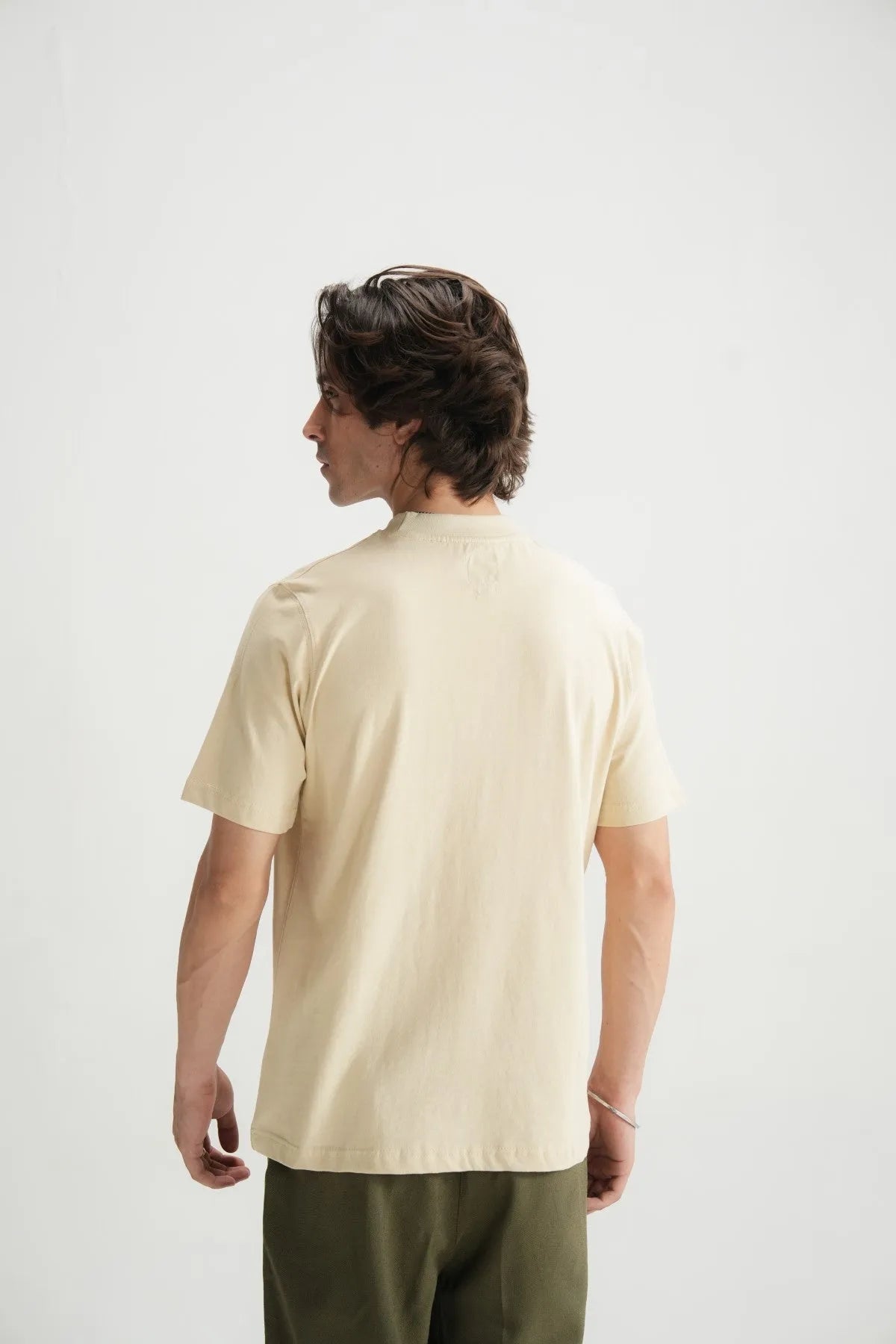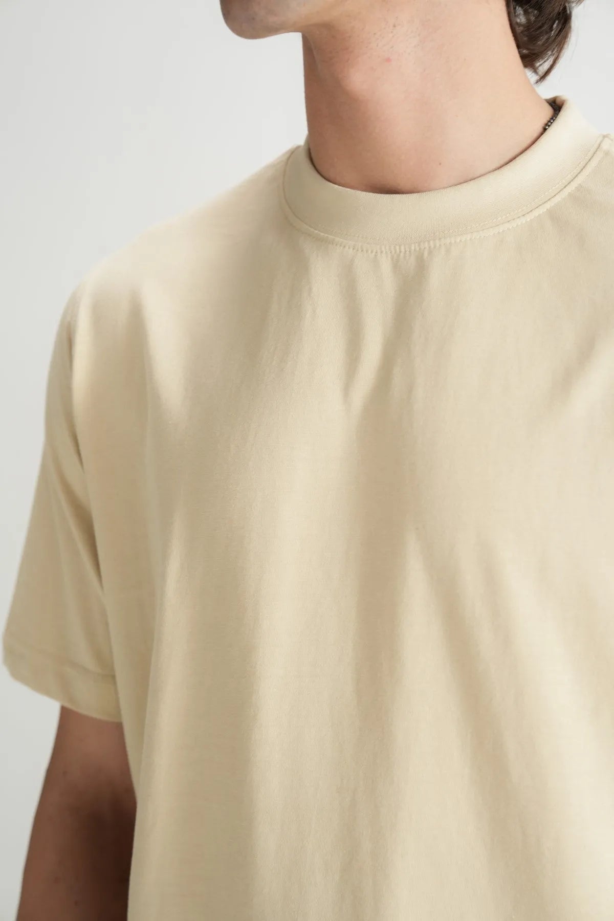 plain cotton in a warm, neutral tone. The regular fit offers a clean, comfortable silhouette that’s perfect for everyday wear.