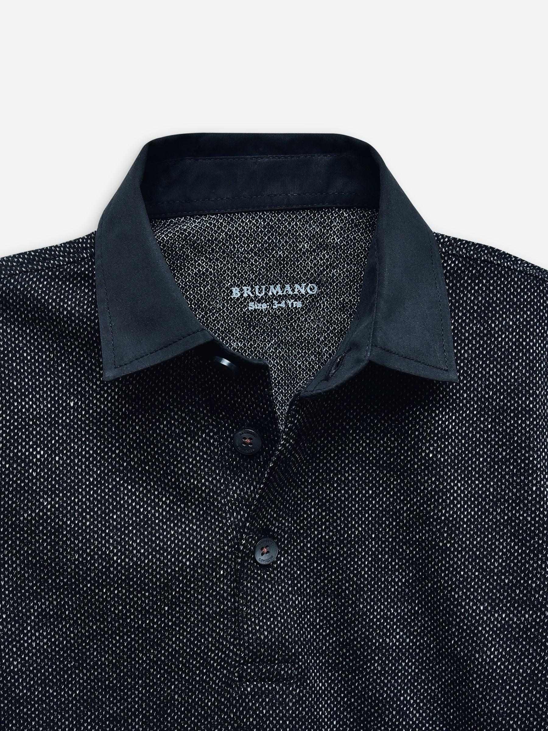 Keep your kid looking stylish in our black dobby structured casual polo. Featuring contrasting black collar with 3 buttons placket. It’s a perfect addition to your kids wardrobe