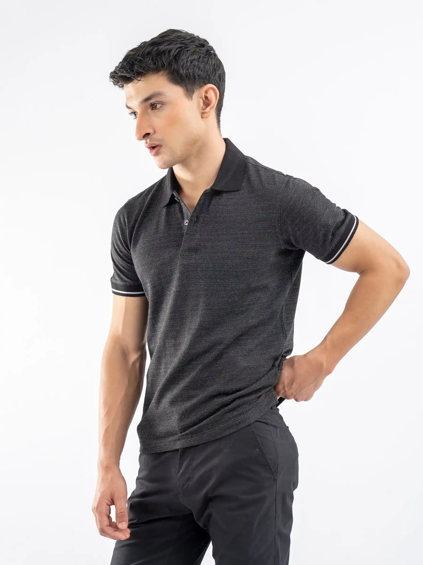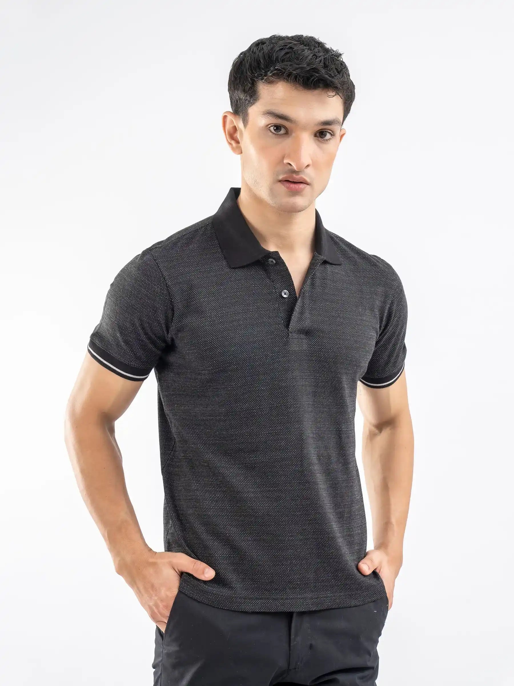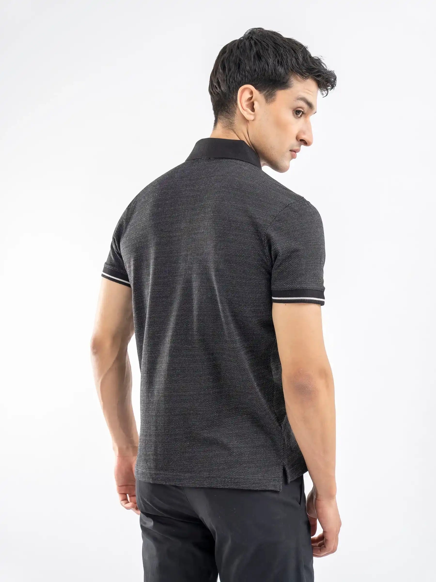 Black Dobby Structured Polo