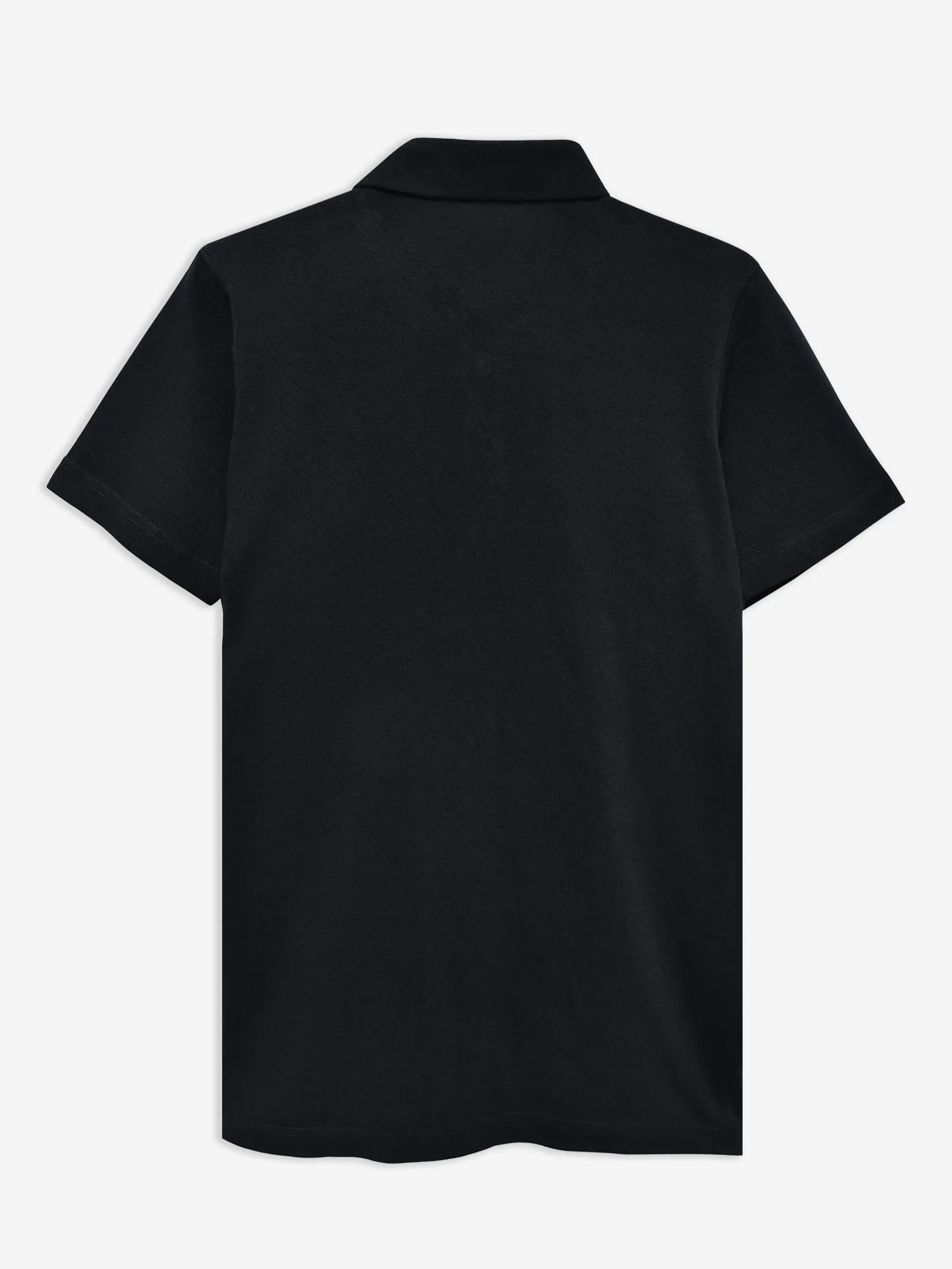 Elevate your casual wardrobe with our mens black self collar polo, featuring sharp contrasting detailing for a refined edge. Crafted from soft, 100% cotton pique fabric, it offers all-day comfort with a modern fit. Perfect for both smart-casual outings and weekend wear.