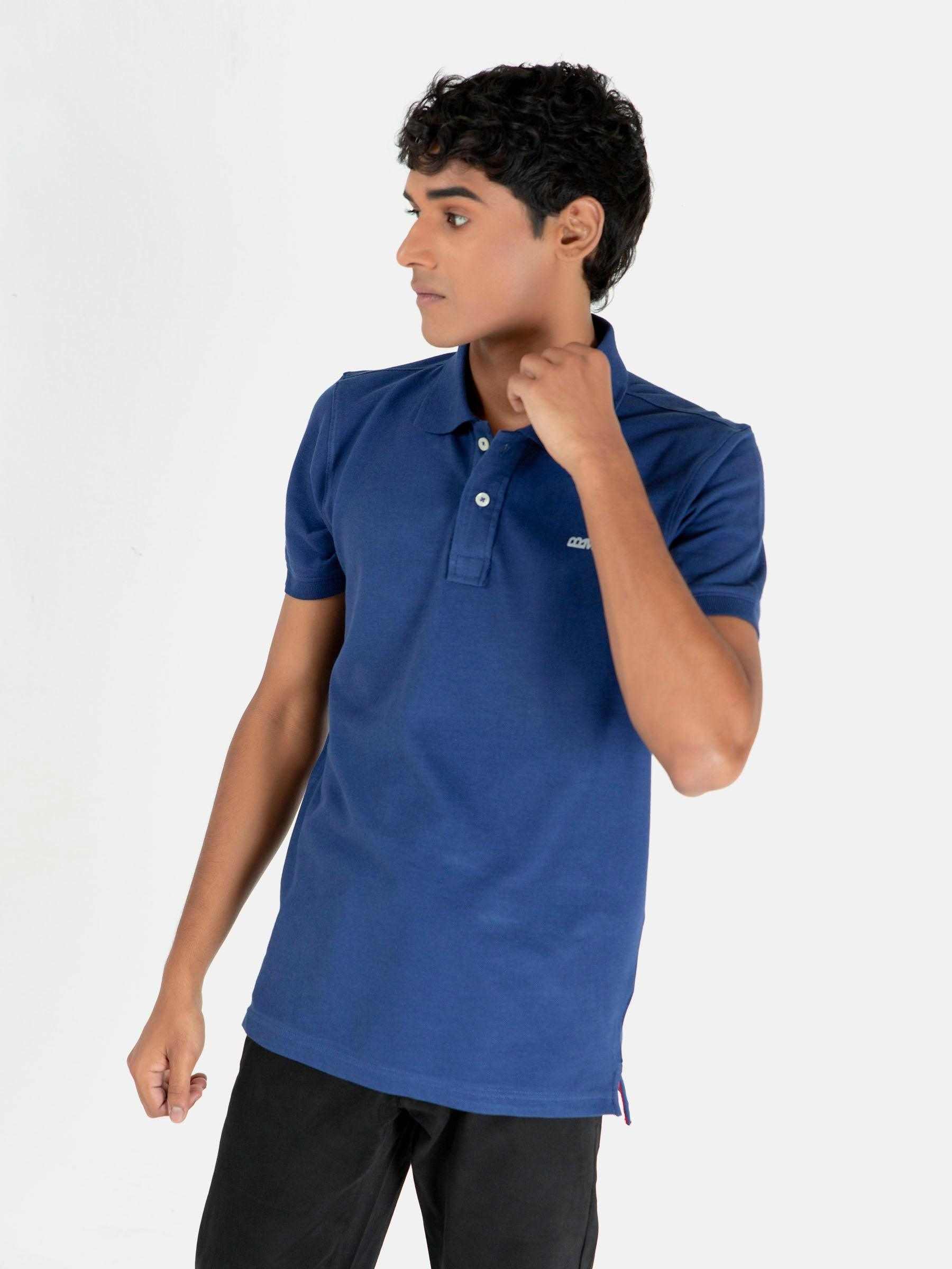 Our new two button basic pique polo is a wardrobe staple & you can never go wrong with it. Made with high quality pique fabric, this blue basic polo is perfect for work wear or weekend casuals. Featuring ribbed collar, cuff & branded logo in front