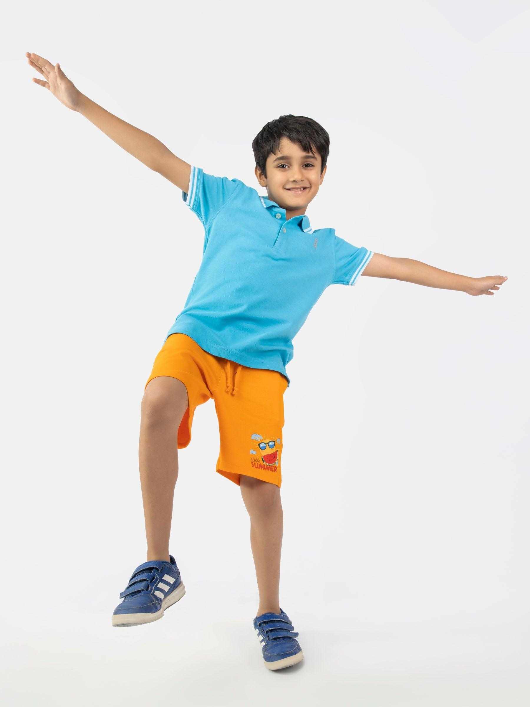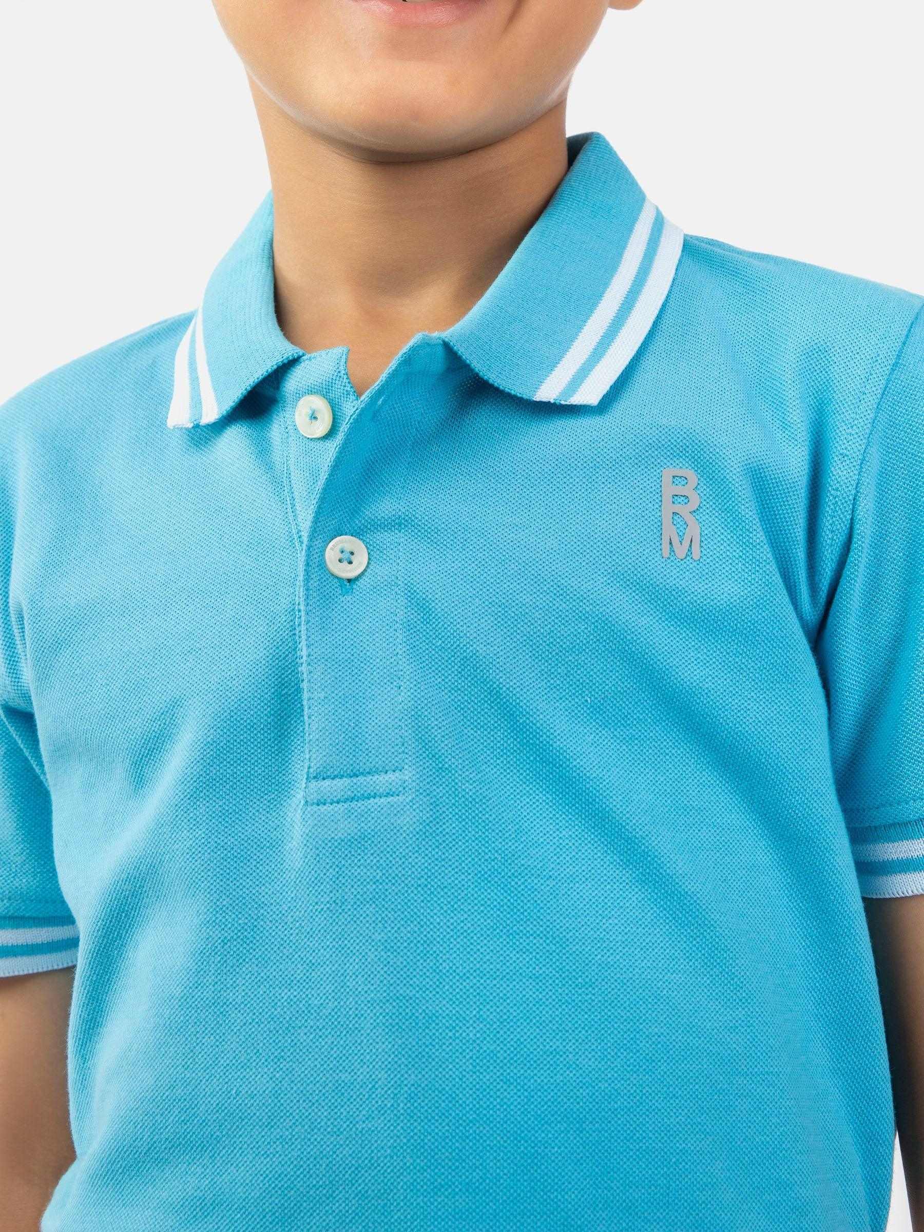 Update his wardrobe with this classic boys' aqua blue polo shirt featuring white tipped collar for everyday use. Made with soft pique fabric, its finished with printed logo in front to compete the look