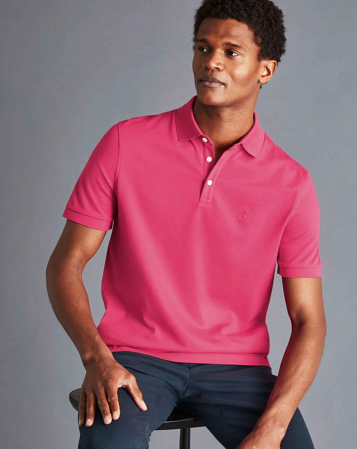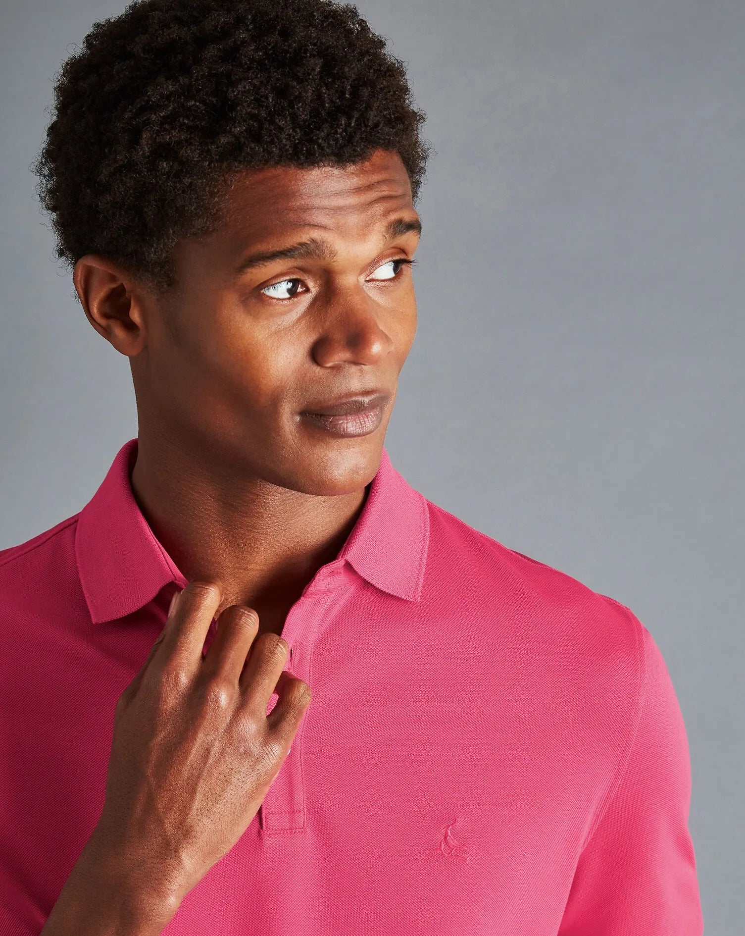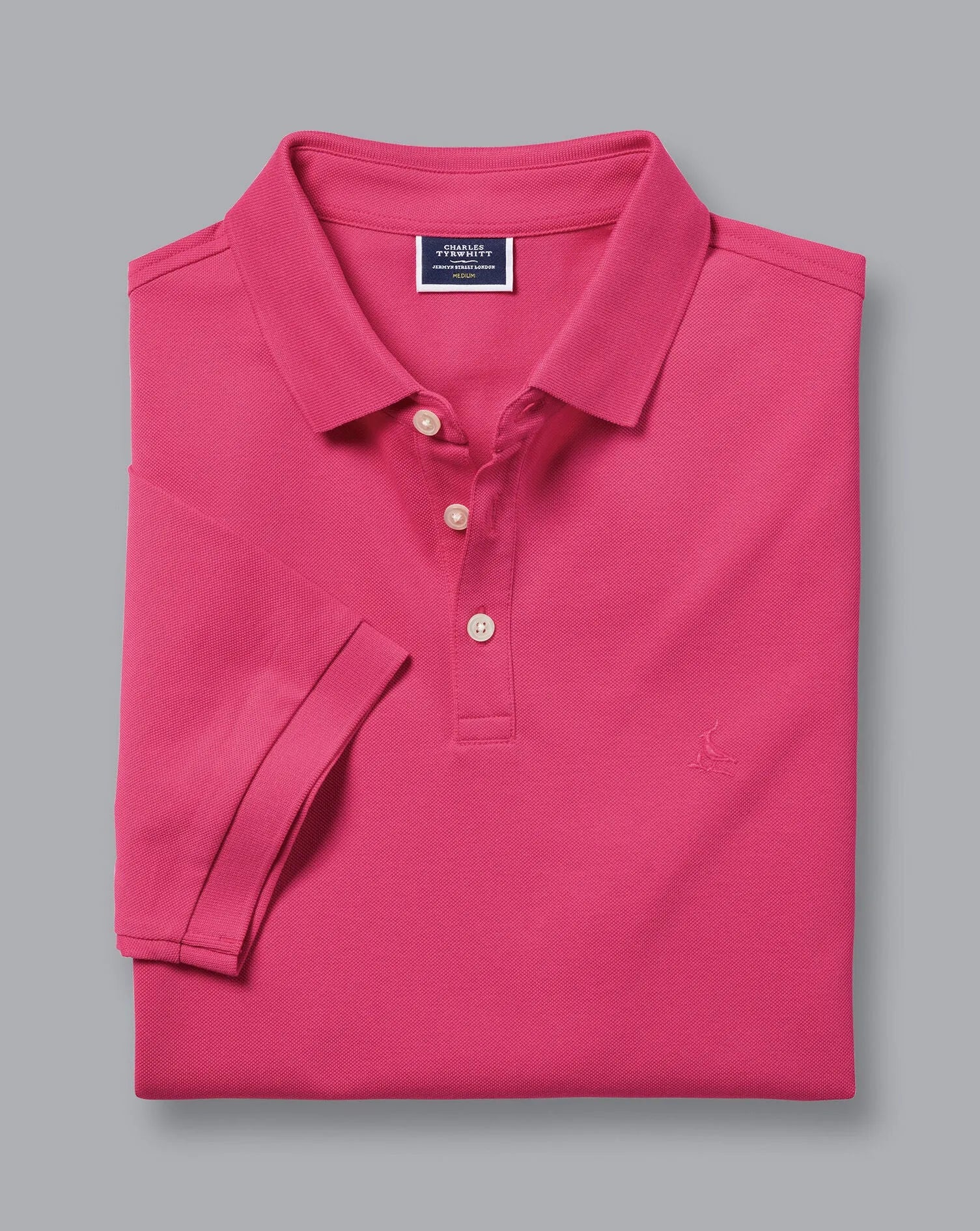 Bright Pink Solid Short Sleeve Cotton Tyrwhitt Pique Polo