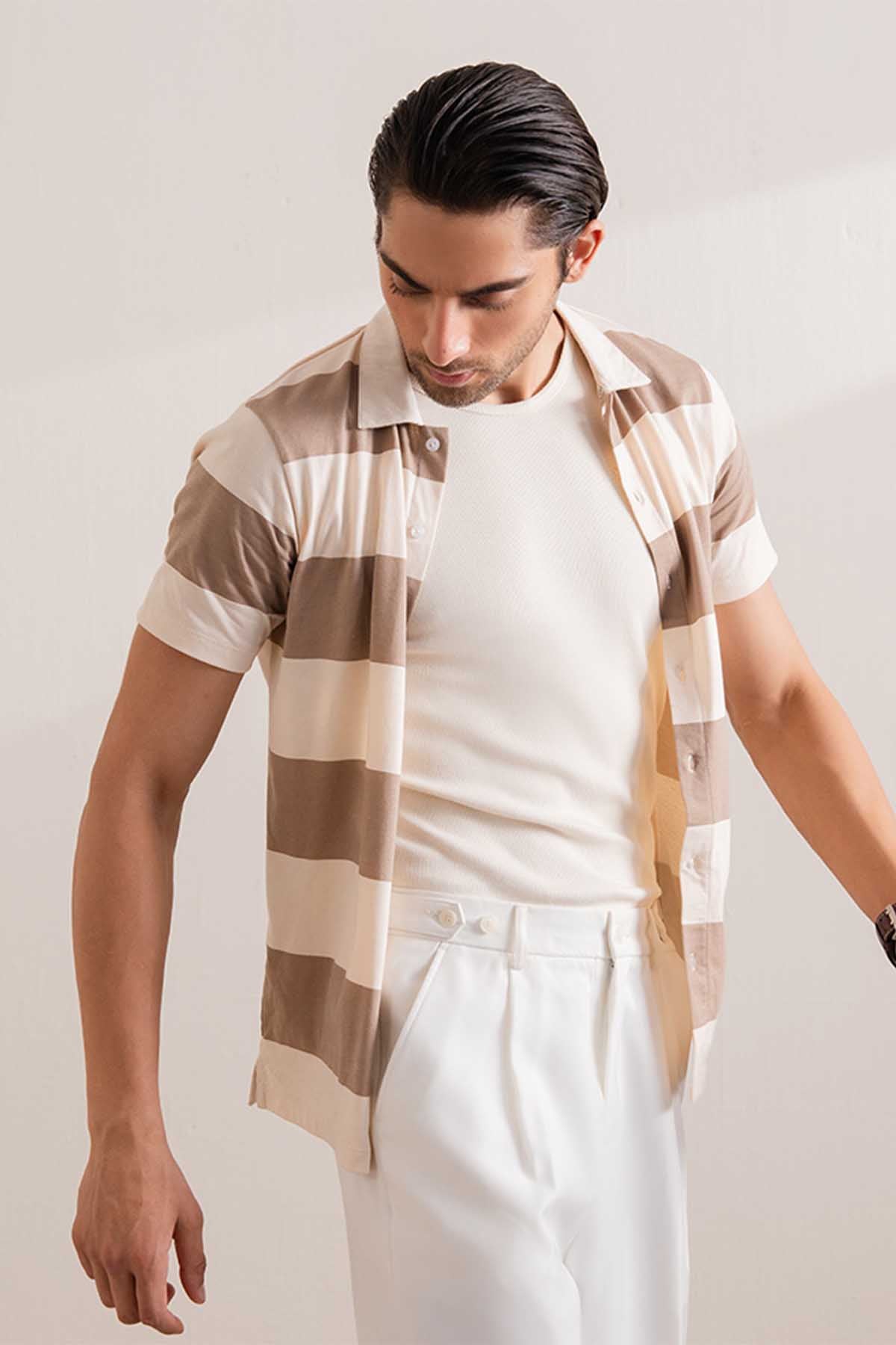 A refined essential with a laid-back edge — our knitted stone striper shirt blends comfort with elevated style. Made for effortless dressing, it features soft knit fabric, subtle texture, and a relaxed silhouette that transitions seamlessly from day to night.