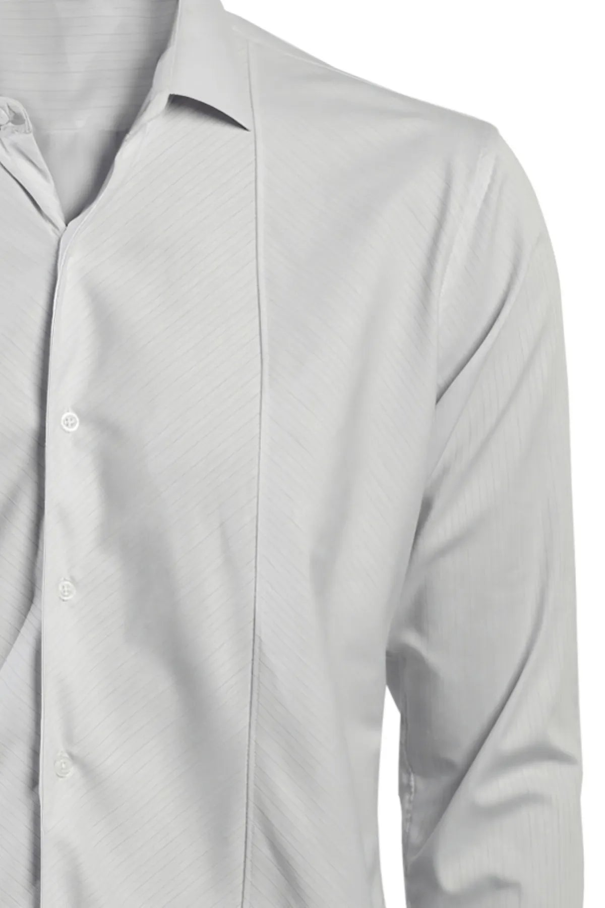 Step up your fashion game with this slim-fit grey button-down shirt, crafted from ultra-comfortable paper cotton. Featuring a classic collared neck and a button placket, it effortlessly blends sophistication with a modern twist. The full sleeves come complete with cuff flaps and buttons, this shirt is the perfect go-to for those who want to look sharp without trying too hard.Â