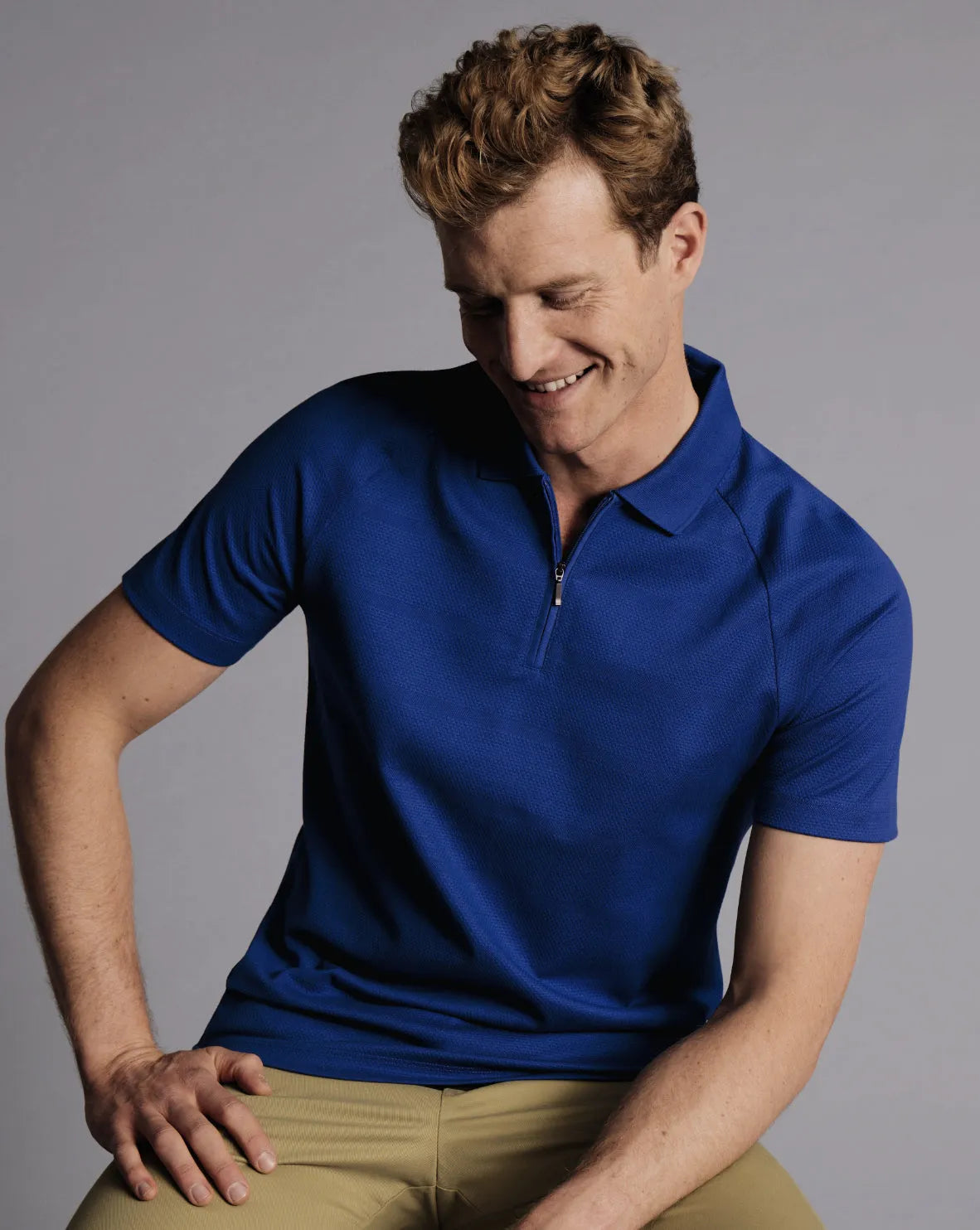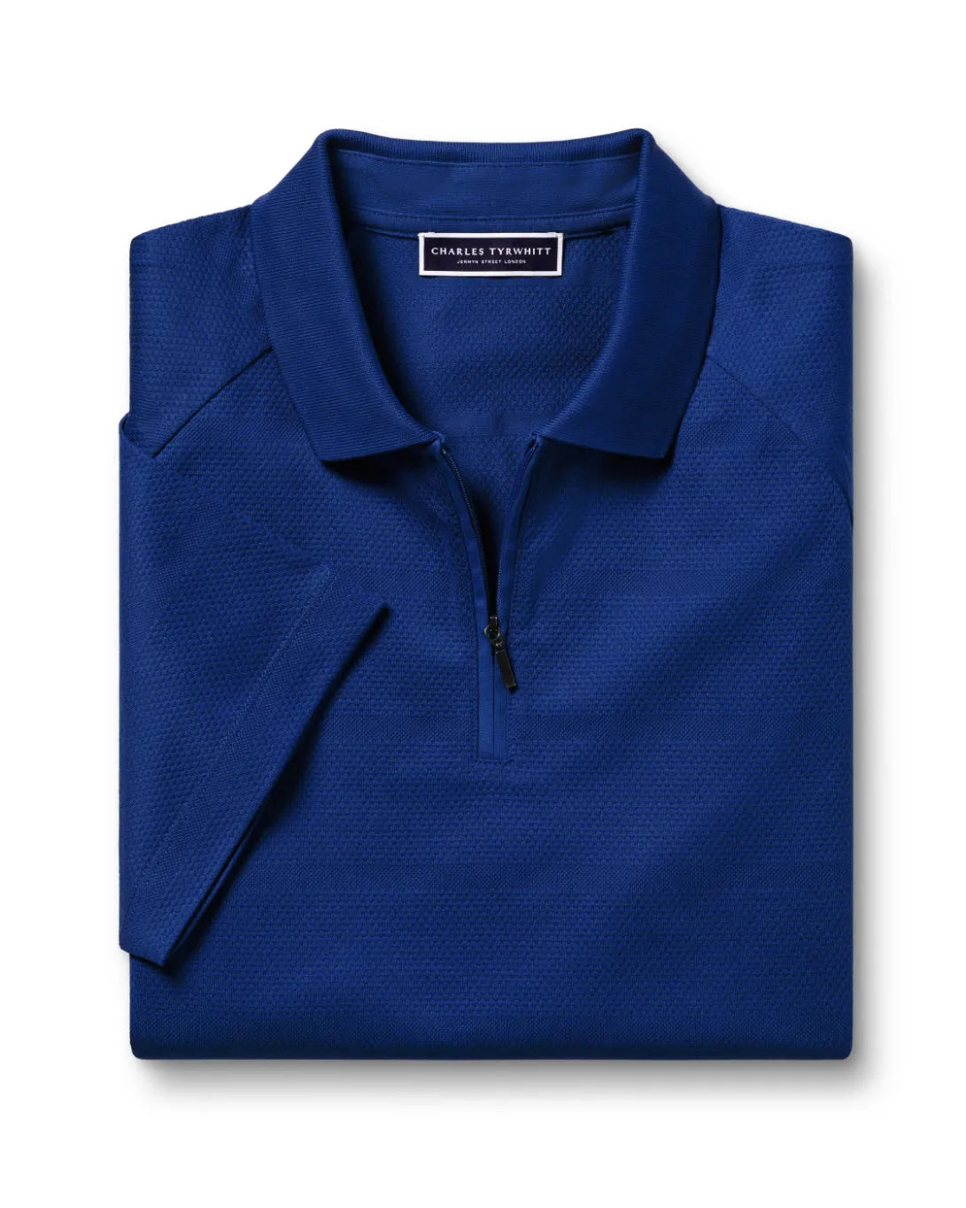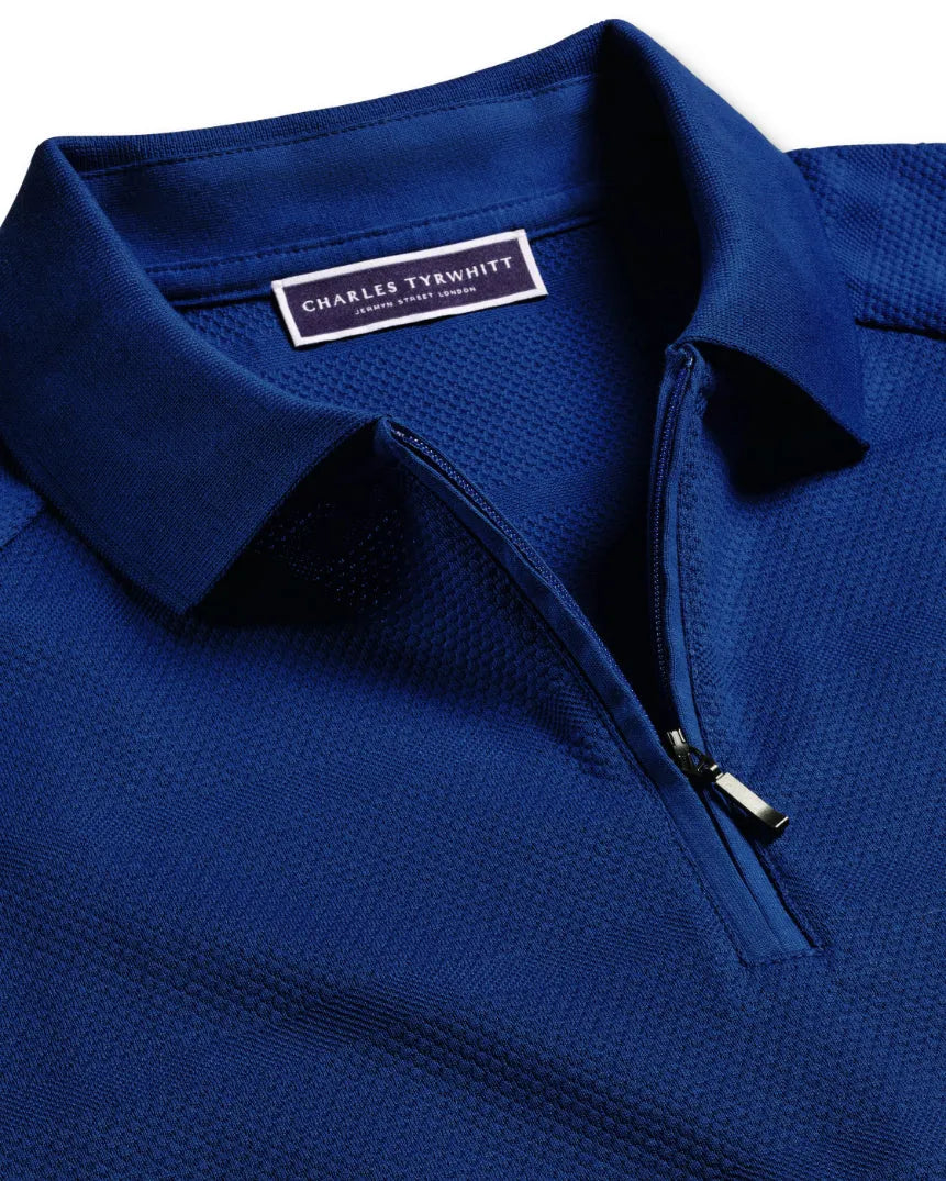 Cobalt Blue Popcorn Textured Stripe Tyrwhitt Cool Zip Neck