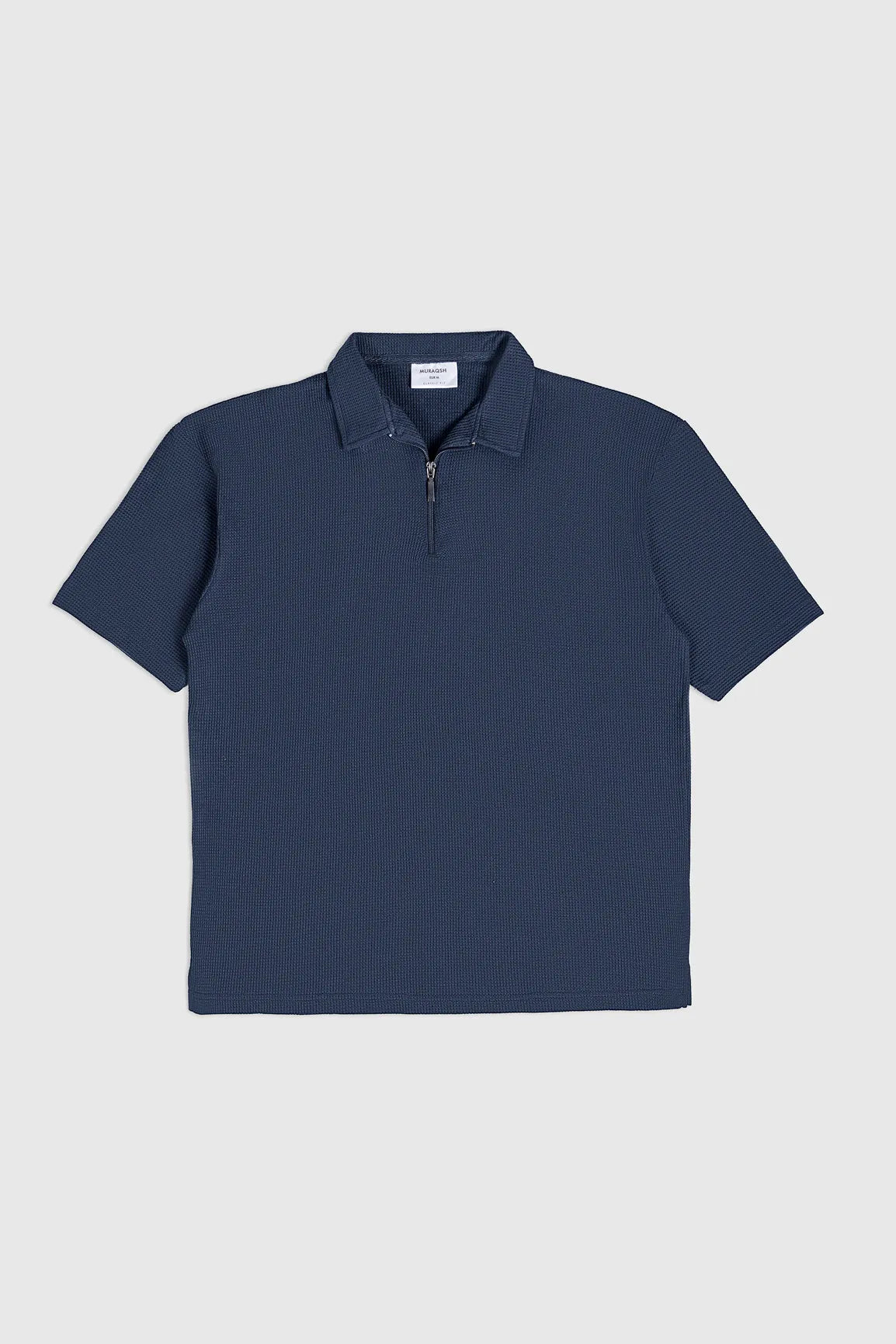 Make A Statement With This Deep Blue Oversized Waffle Zipper Polo. Textured, Bold, And Built For Breezy Summer Comfort.