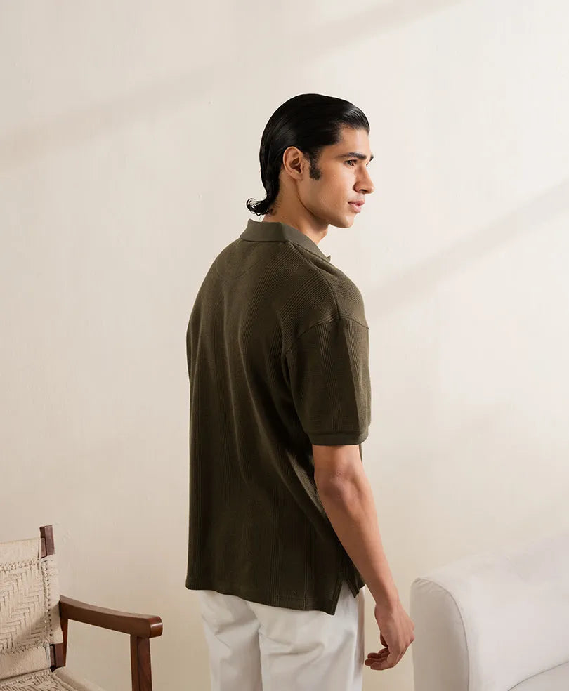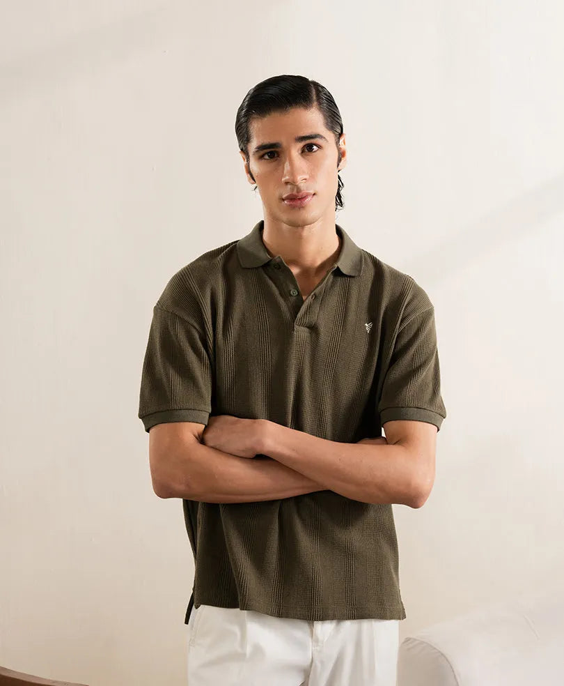 Relaxed, modern, and effortlessly cool — this boxy fit polo in DK olive is crafted from premium knit cotton for a soft yet structured feel. With its minimal design and elevated color tone, it brings understated luxury to everyday wear.