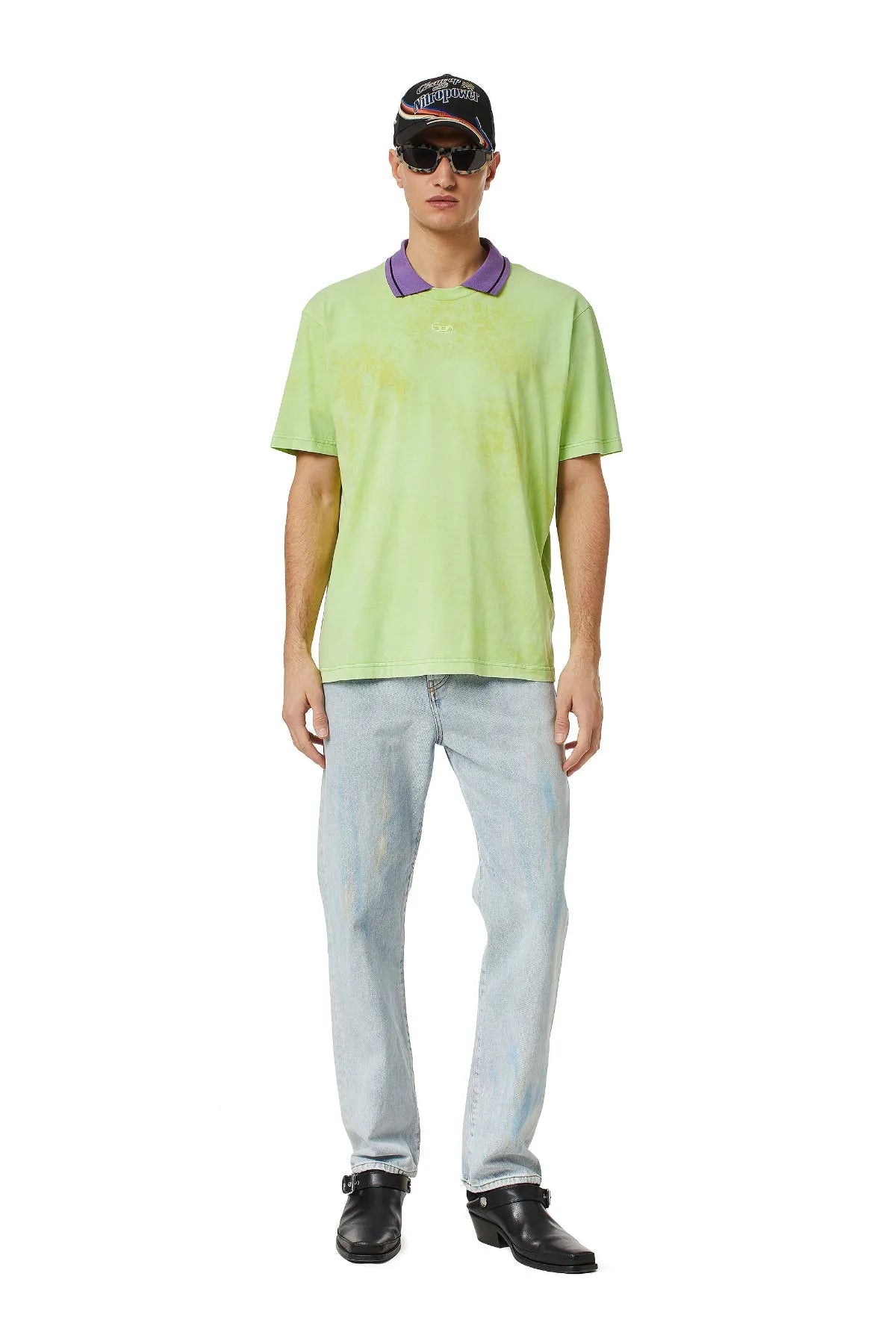 Crafted from cotton jersey, this regular-fit T-shirt has been pigment-dyed and finished with a strong acid wash for a mottled effect. Updated with a contrast knitted polo collar and branded with a tonal embroidered D oval logo.