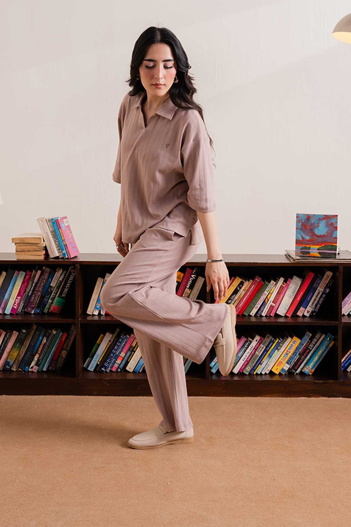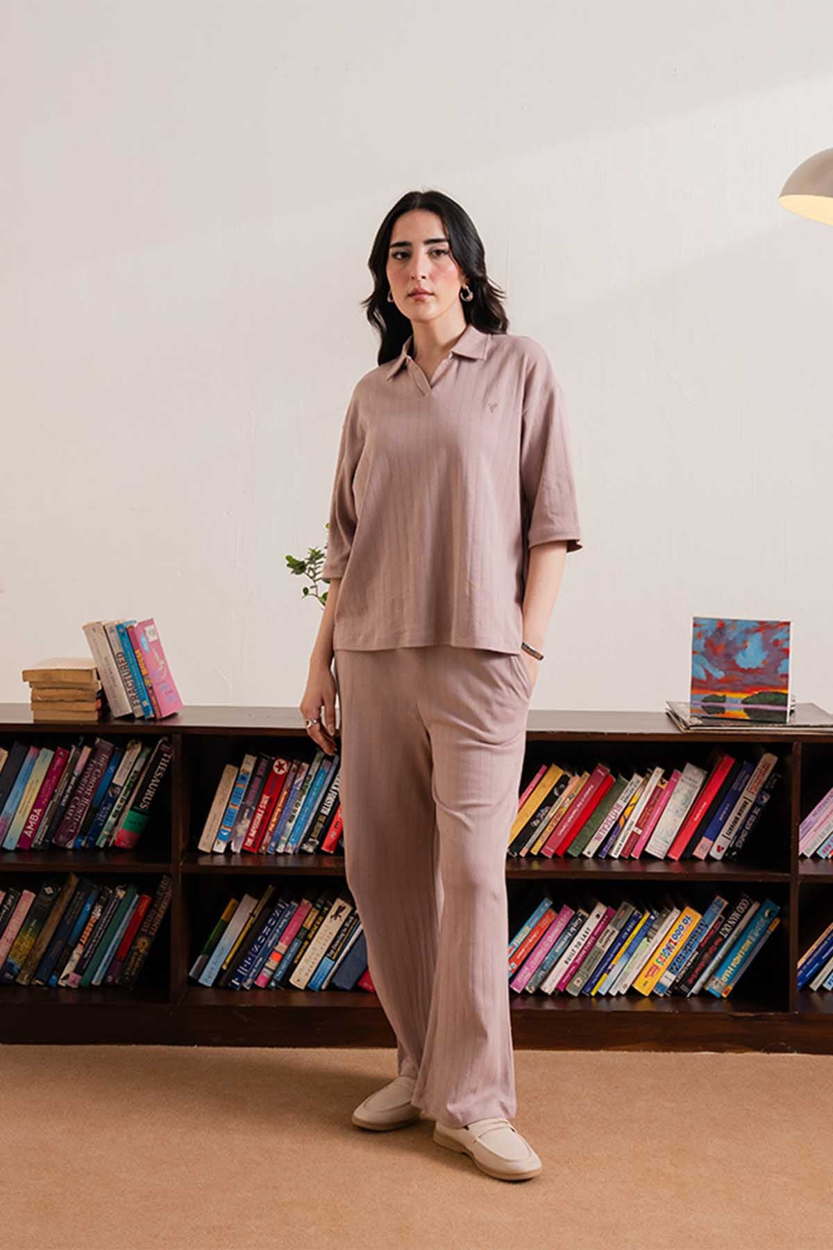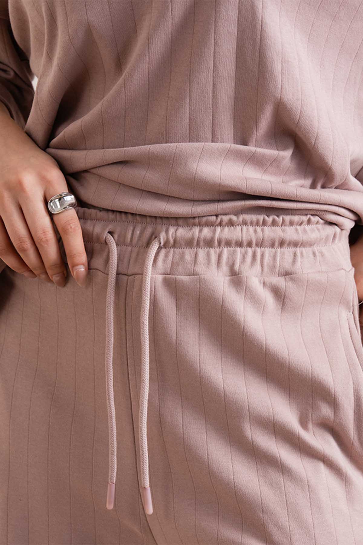 Crafted for comfort with a refined edge, these drop needle trousers are made from 100% cotton interlock fabric, offering a smooth hand feel and natural breathability. The subtle drop needle texture adds depth to the relaxed silhouette, making them a versatile choice for everyday wear.