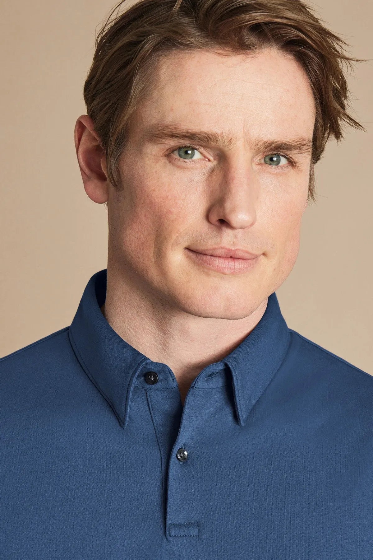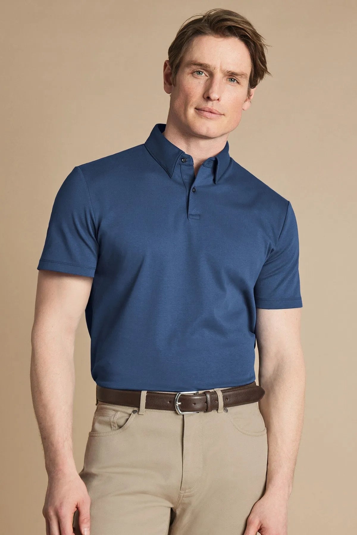 Mercerised yarn for a silky handfeel, Concealed button-down collar, One button placket,