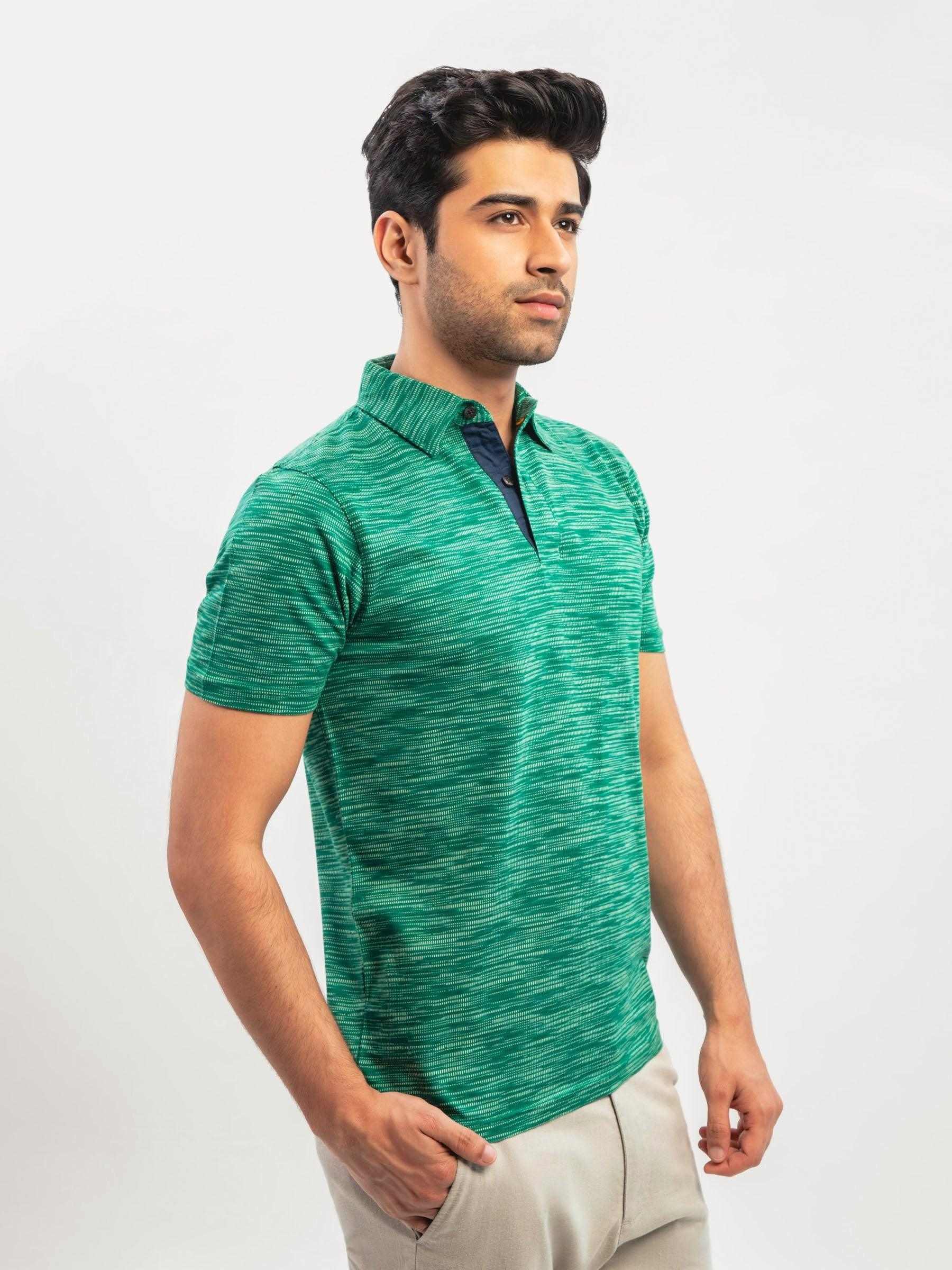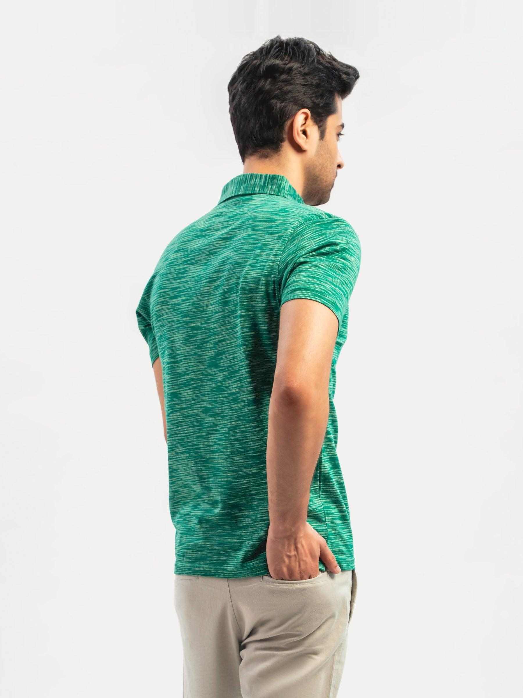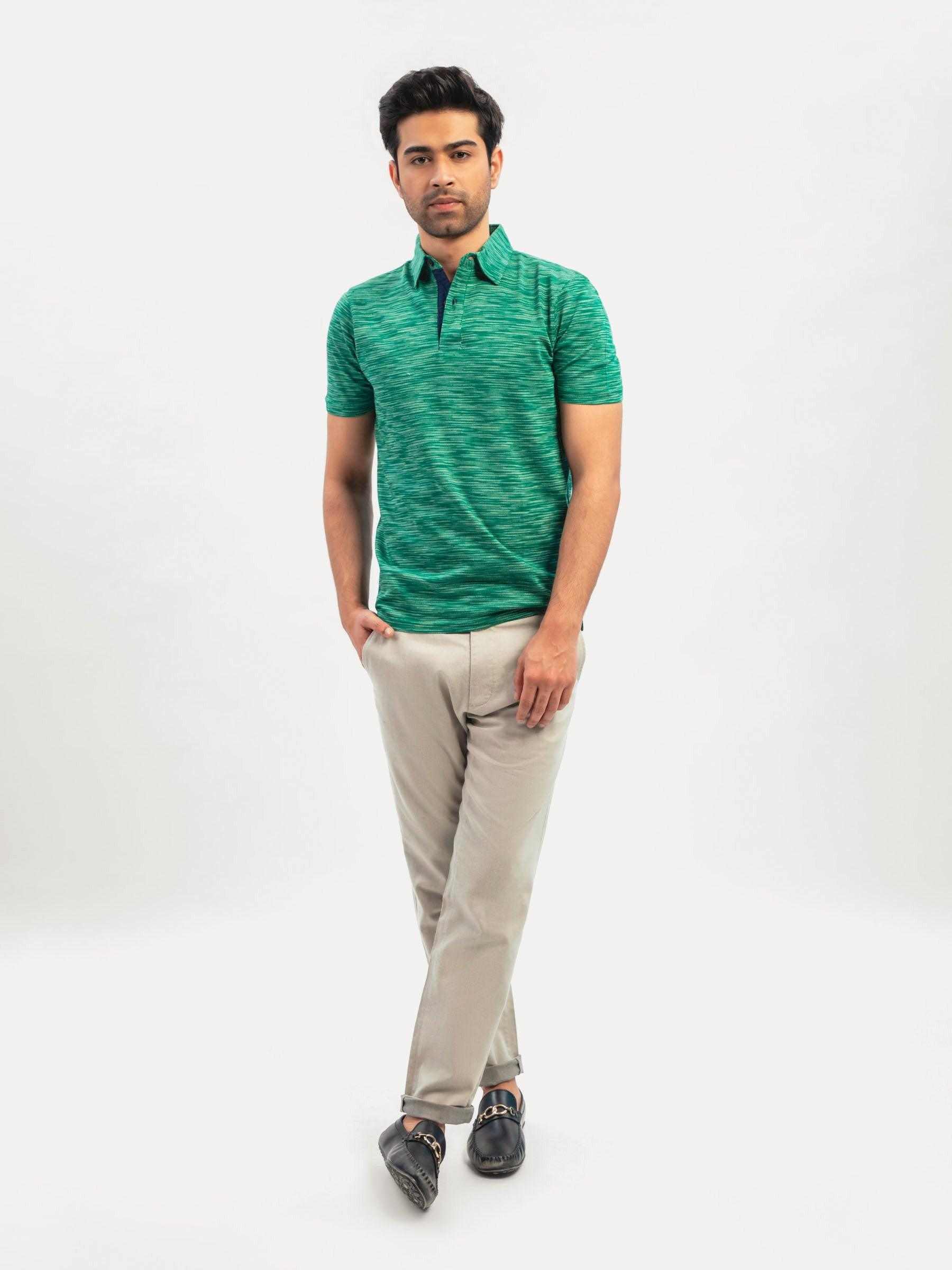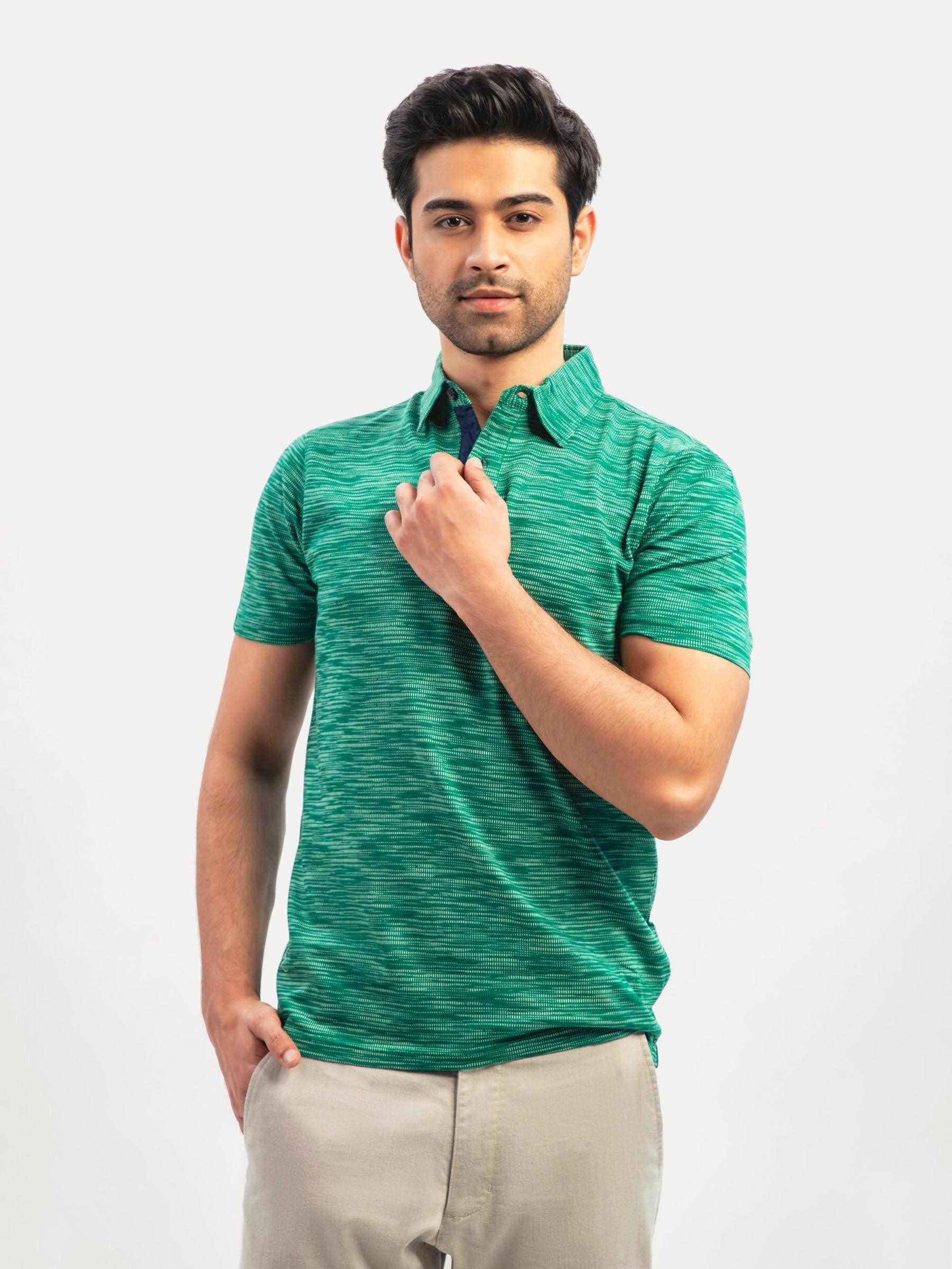 Crafted from 100% jacquard knitted fabric & mercerized for soft feel & luxurious look, this green mercerized polo features self collar, short sleeves, side vents & contrasting inner collar detailing. Add this daytime staple to your weekend leisurewear collection.