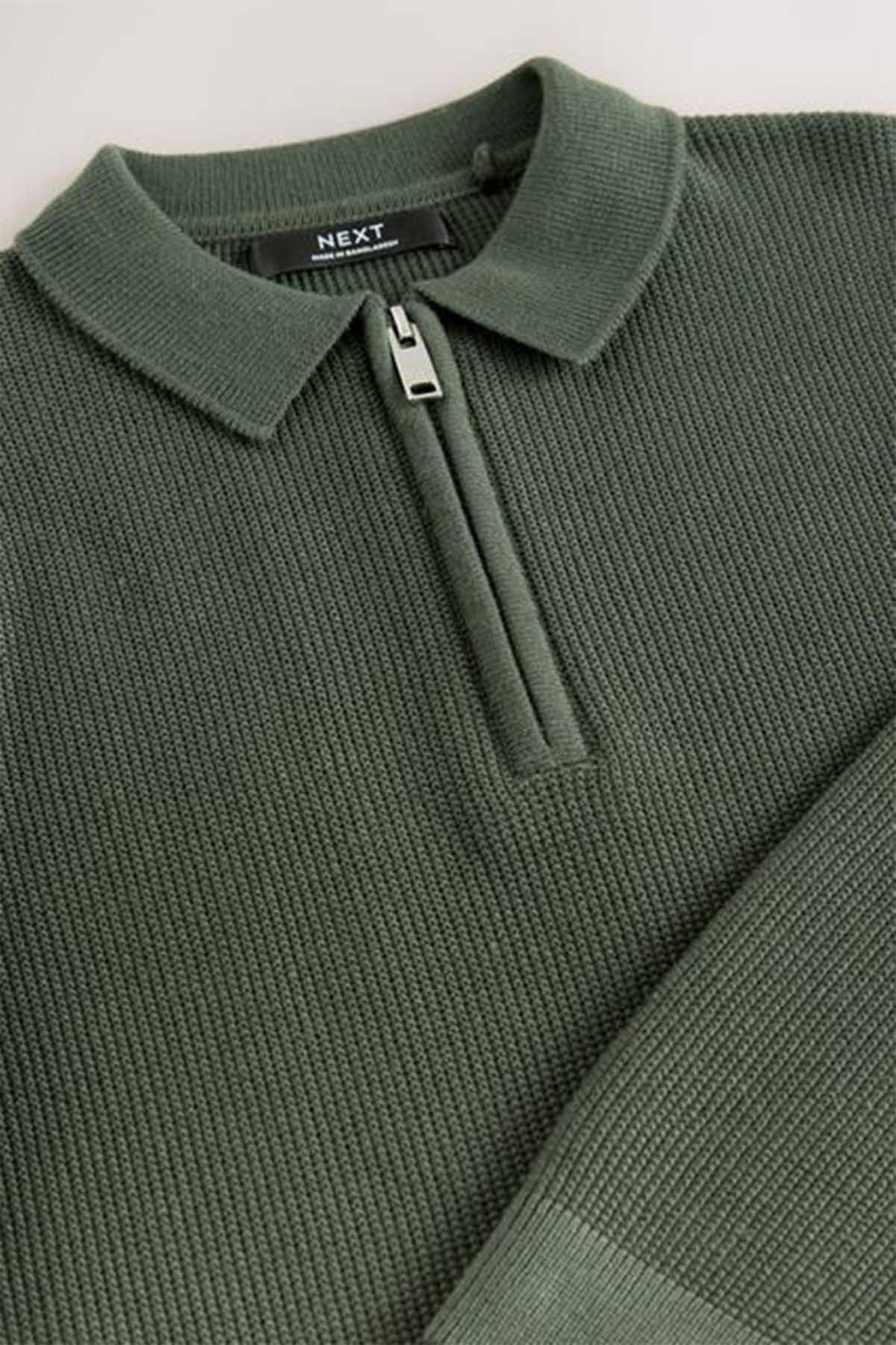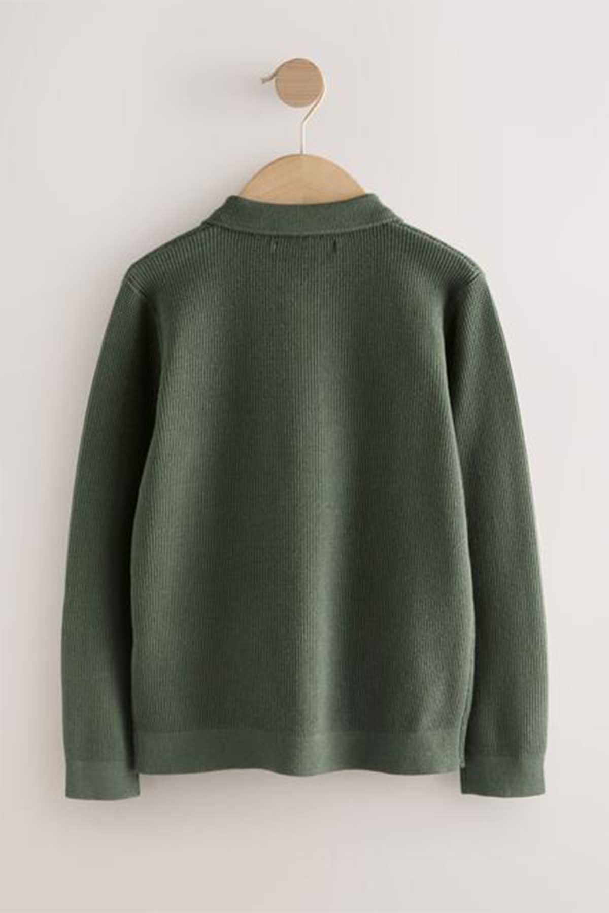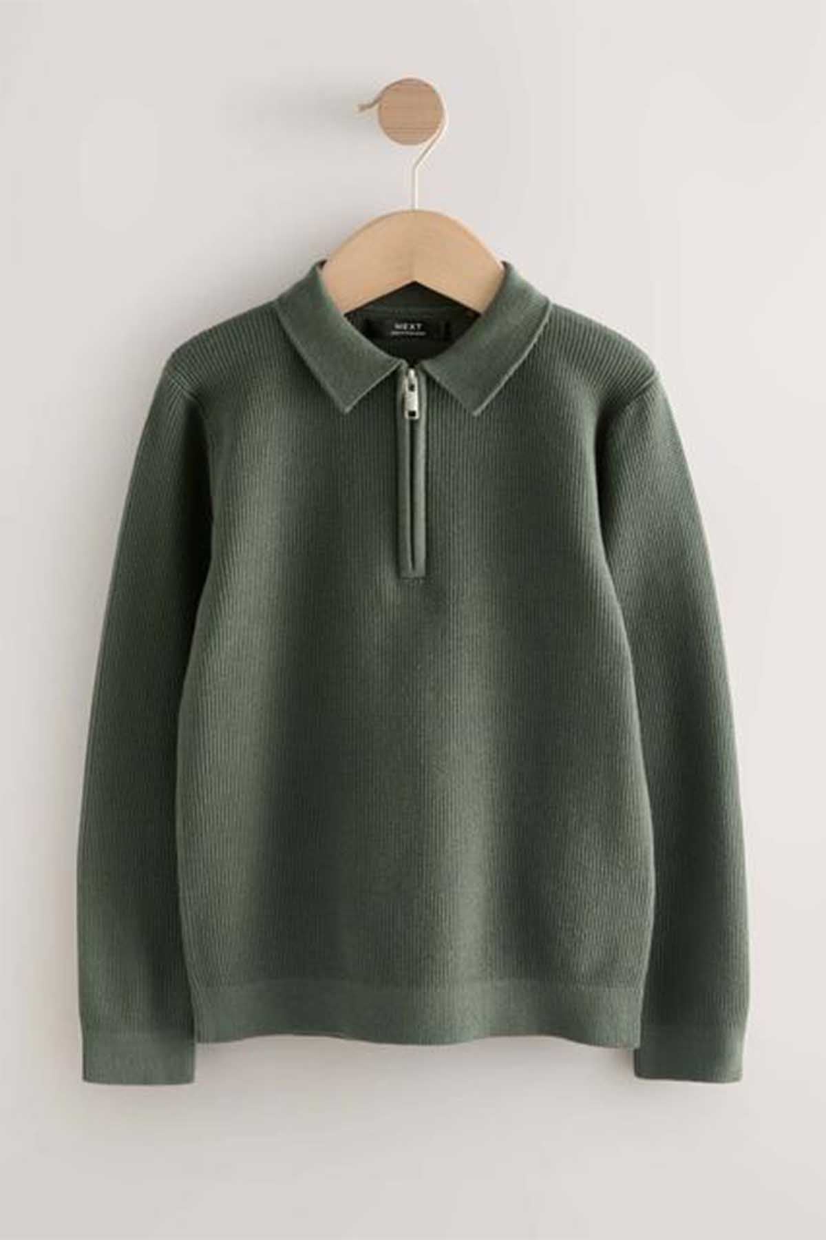 Green Long Sleeve Zip Neck Knitted Polo Shirt (3-16Yrs)
