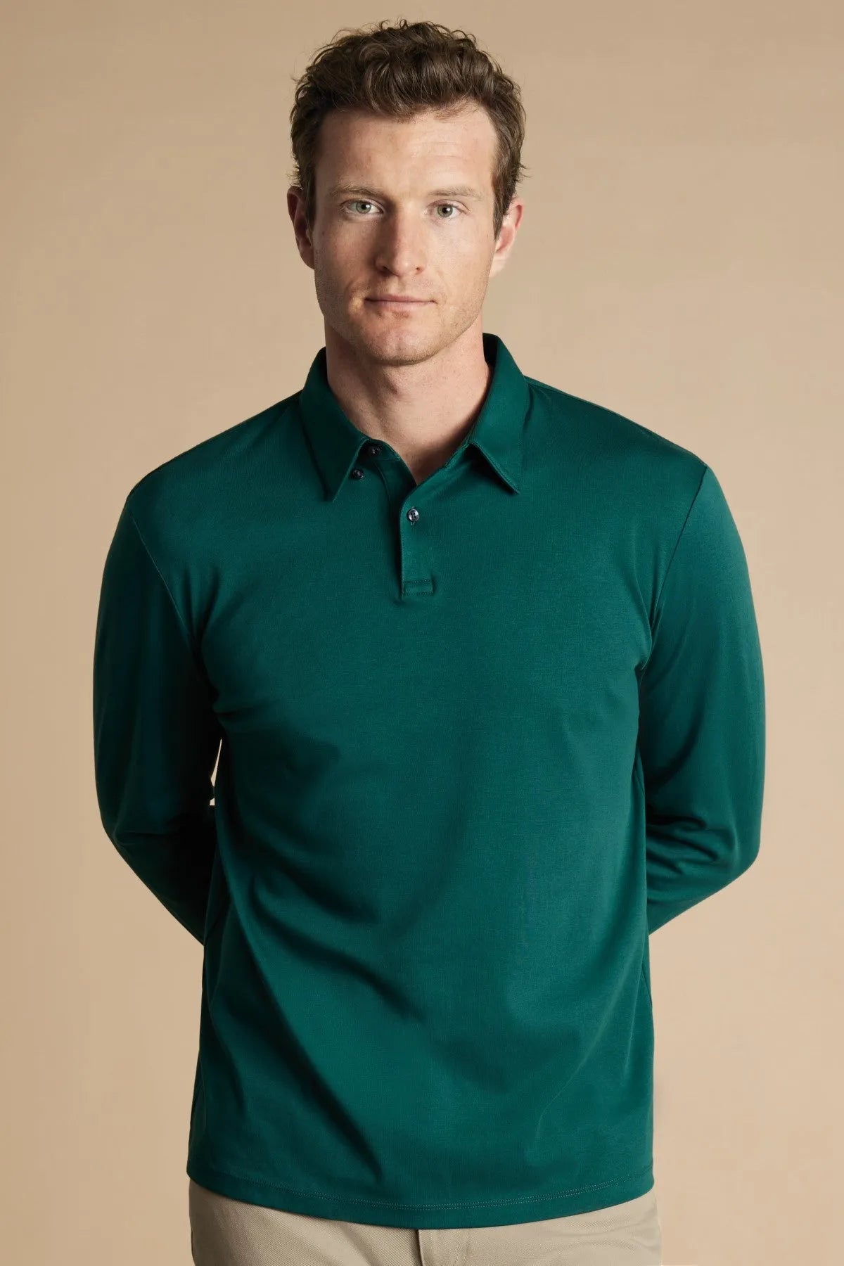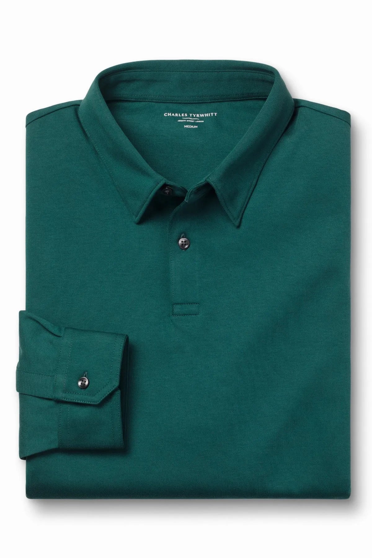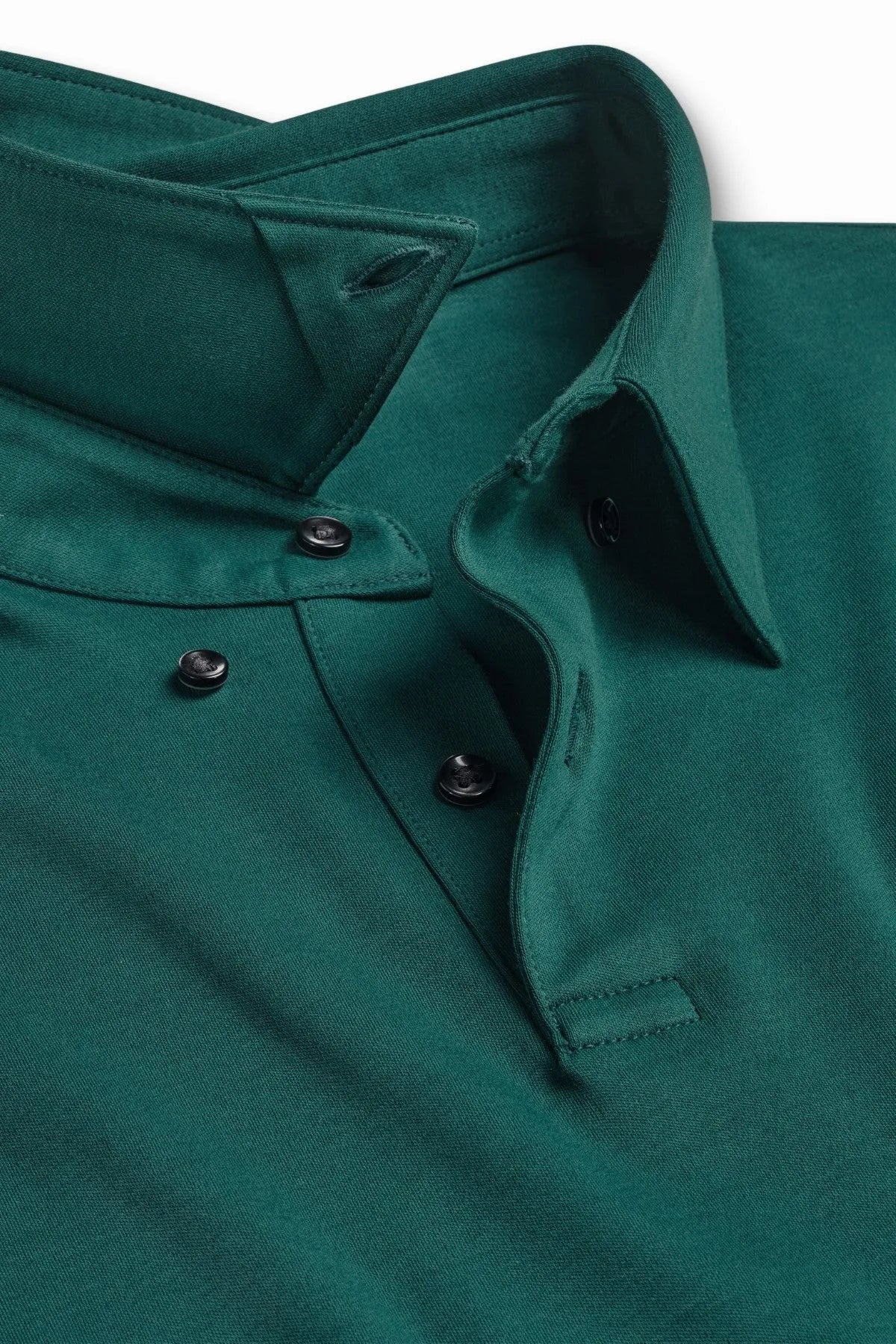A clean forward-point design ensures the collar has a sharp and modern look, while its concealed button-down feature delivers a neat finish. The special jersey fabric is crafted from the finest long staple cotton yarns. These are skilfully knitted using a method that results in an extra-smooth finish with a subtle sheen and soft handle.