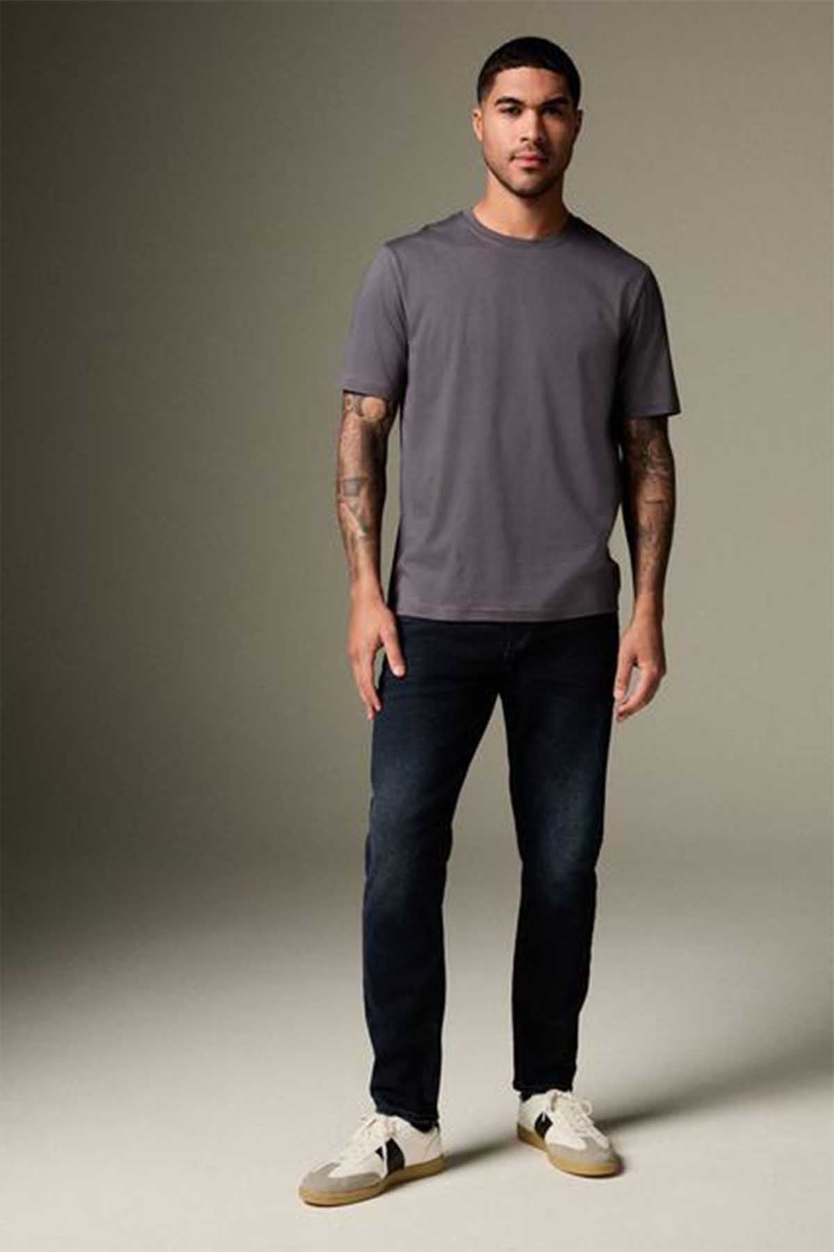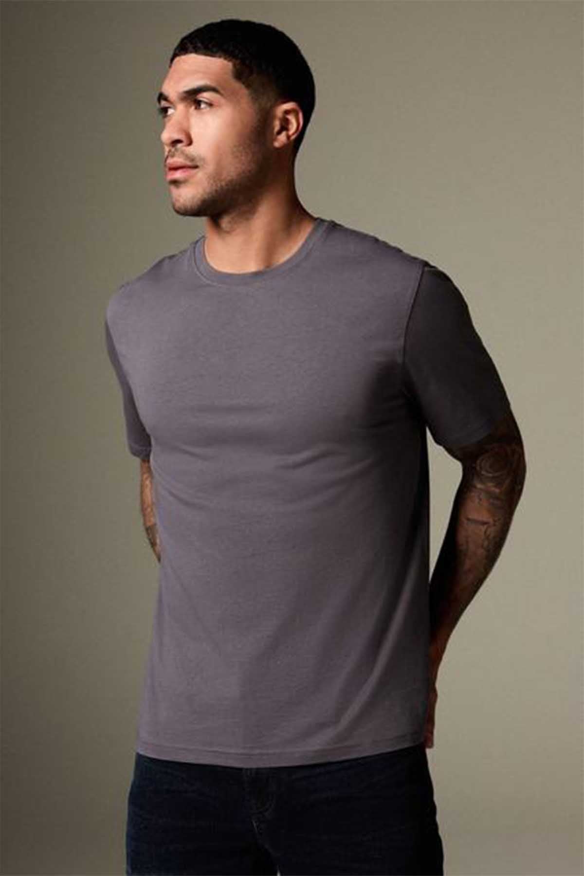 Grey Slate Slim Fit Essential Crew Neck Cotton T-Shirt