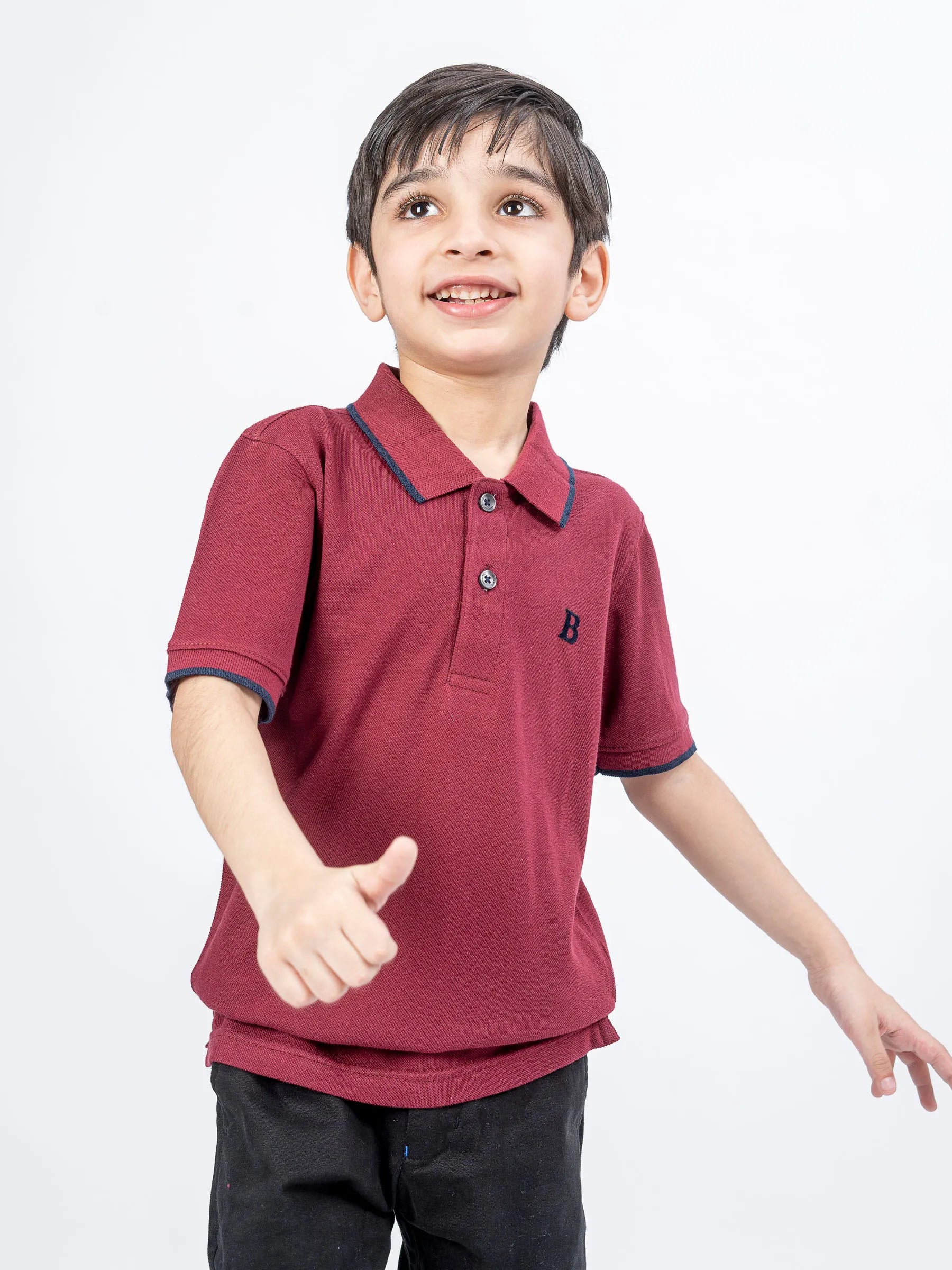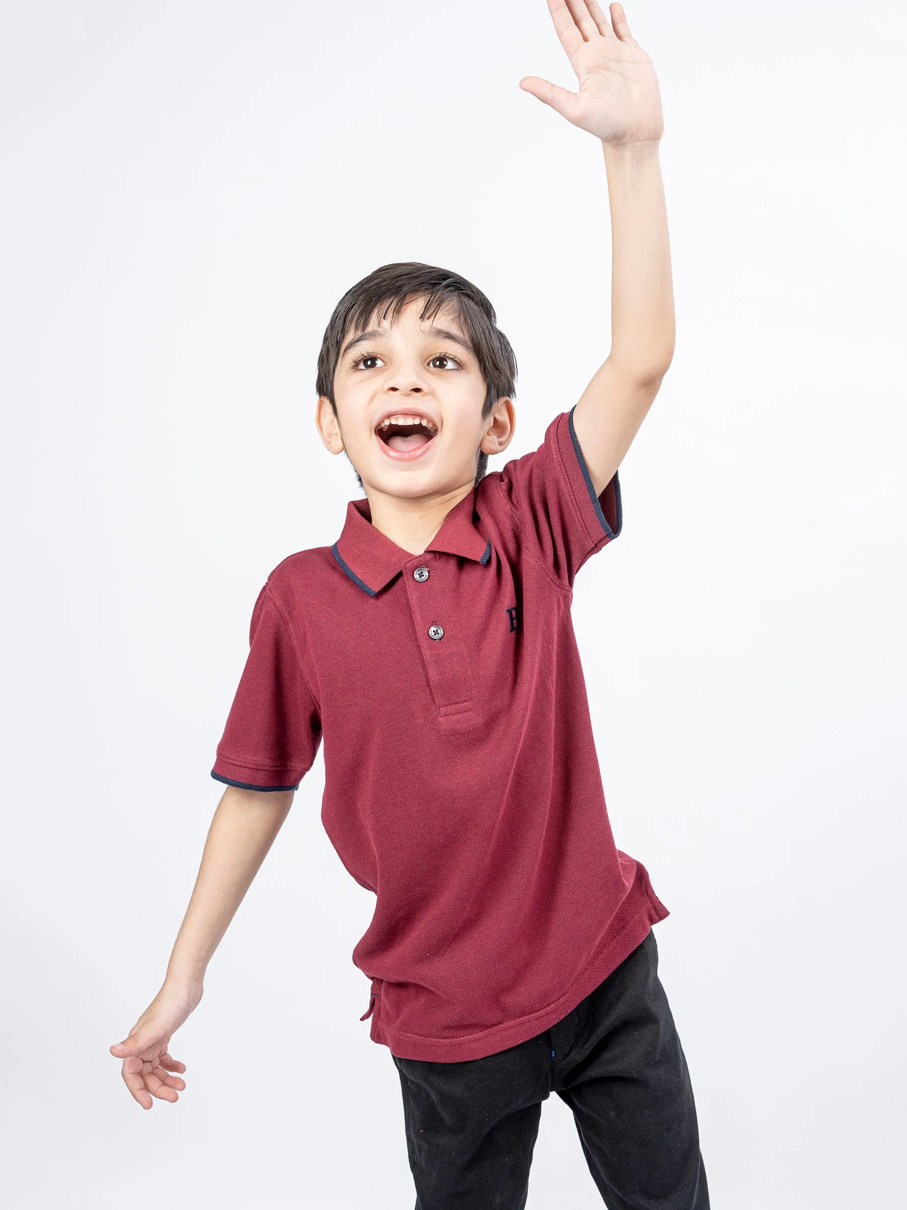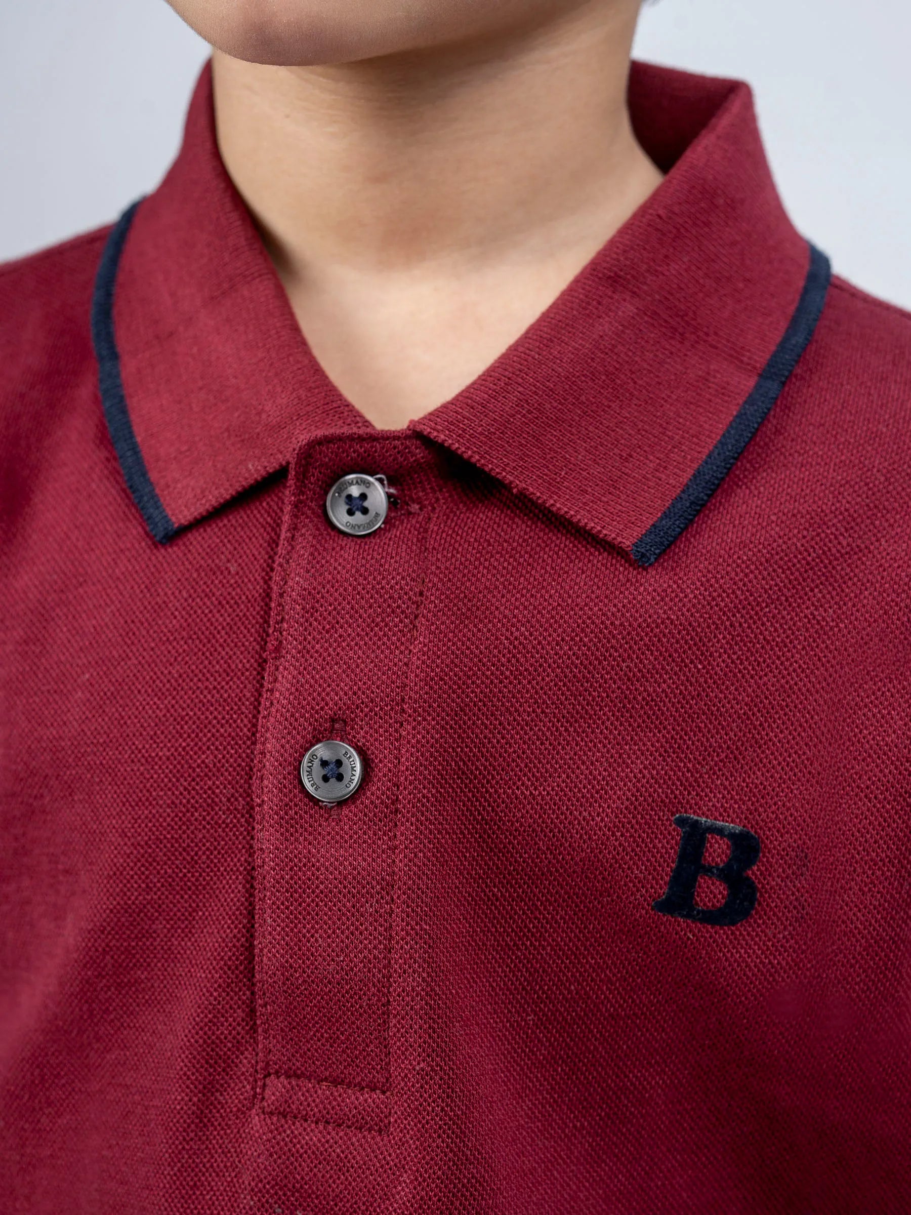 Keep your little one looking sharp with our kids maroon polo with tipping collar. Featuring a classic fit, contrasting navy blue tipping on collar, and soft, breathable fabric, this polo is perfect for both playtime and special occasions. Stylish, comfortable, and effortlessly cool!