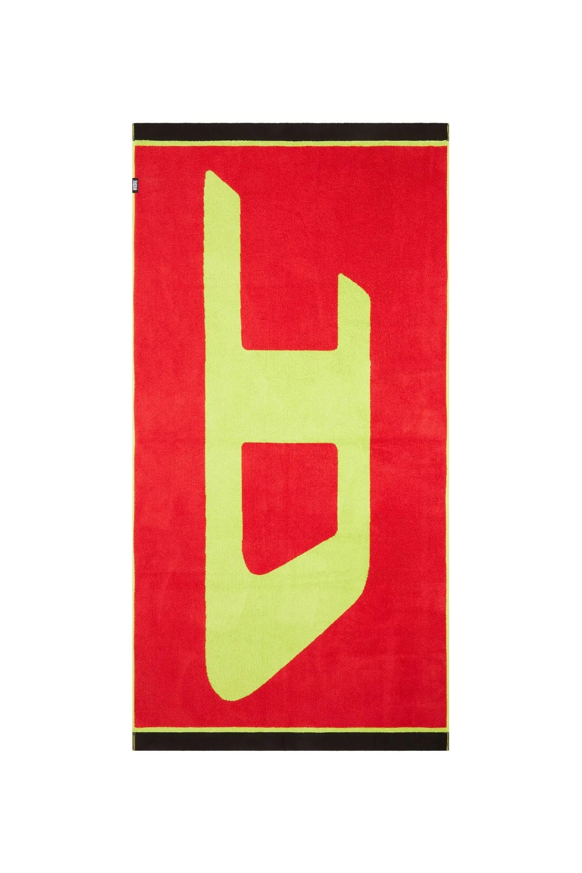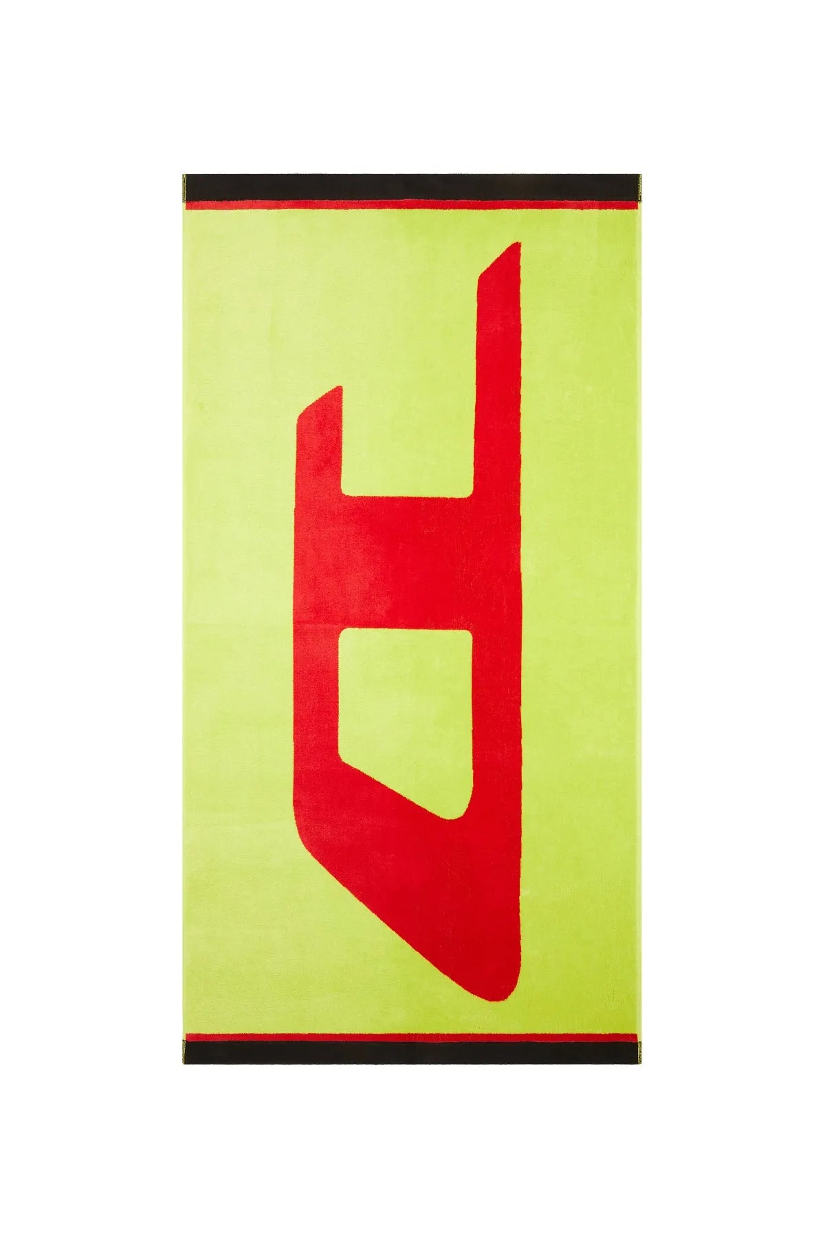 This cotton beach towel features a neon hue and a contrasting red 'D' logo in blown-up proportions.