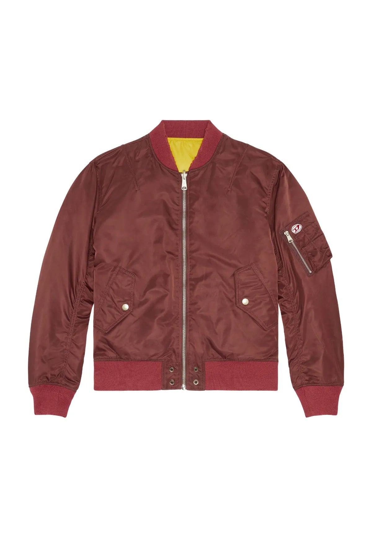 This men's padded bomber jacket is a reversible style cut for a regular fit from water-repellent Italian nylon. With its stone wash, dirty effects and lightly distressed trims, the tonal side has a vintage military feel offset by the bold, colour-blocked reverse.