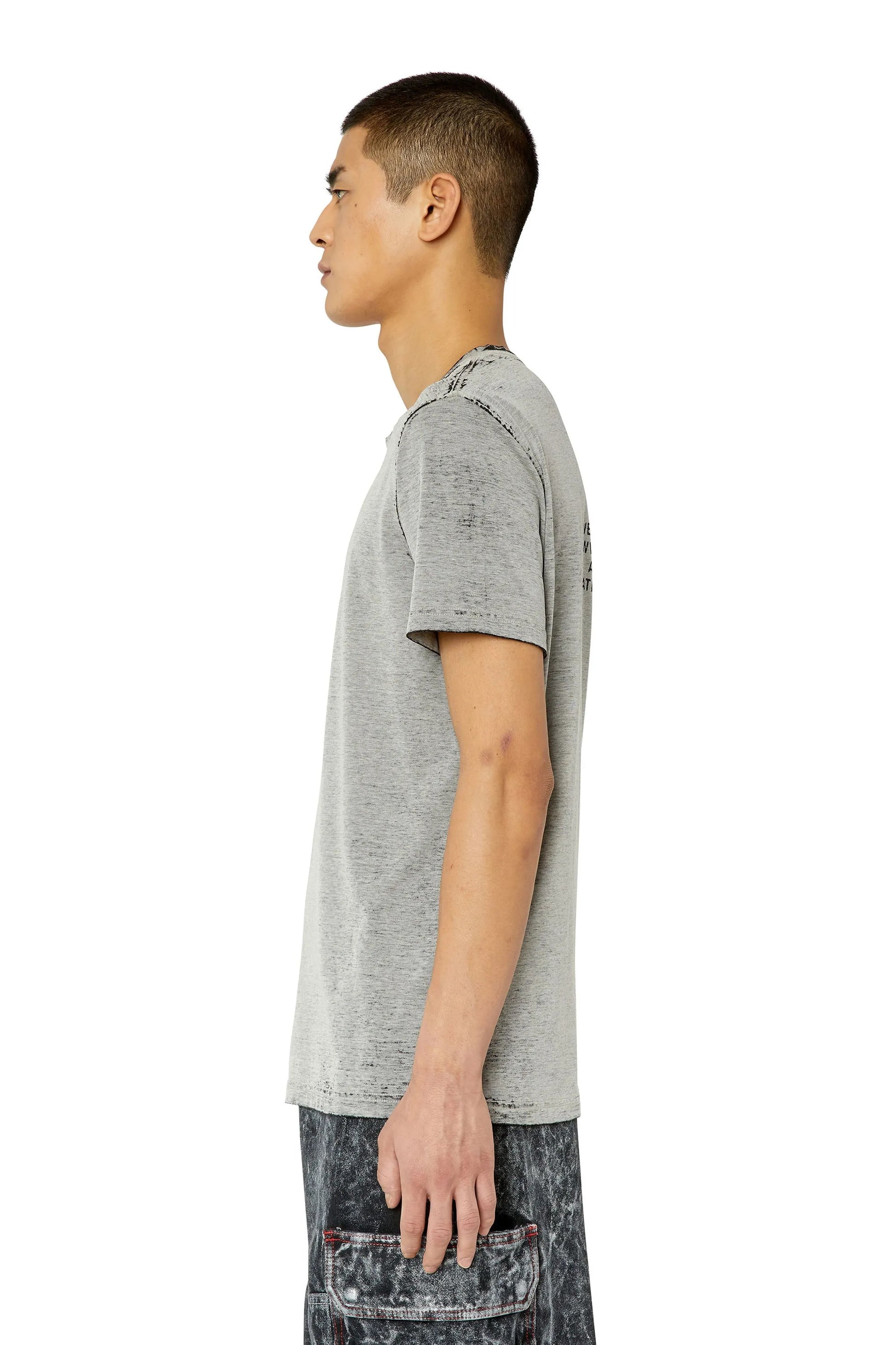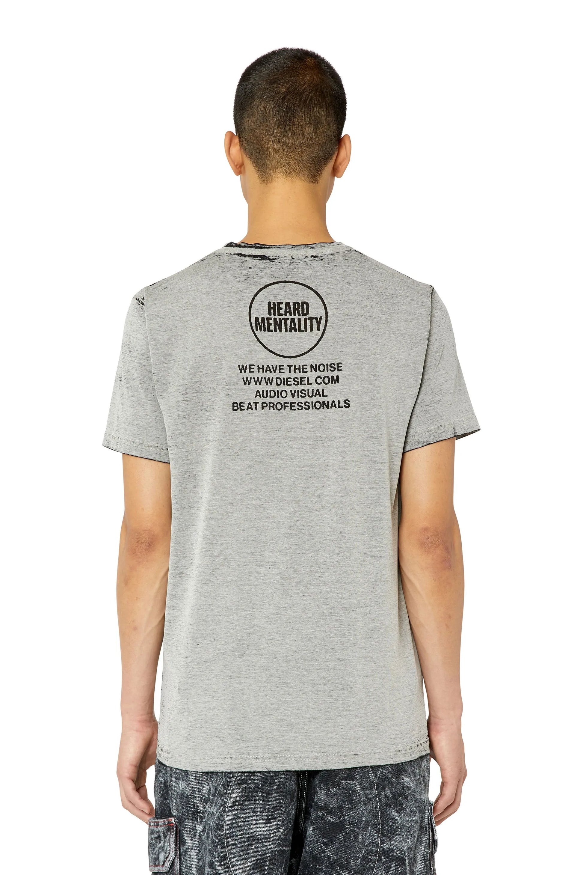 This men's T-shirt has undergone a burnout treatment, the fibres and colour stripped down for a retro feel. Made from cotton-blend jersey in a slim fit, it's detailed with 'Diesel Heard Mentality' branding on the back.
