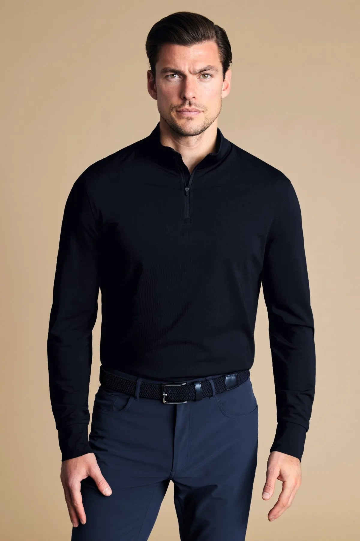 Look out for Tyrwhitt performance details like our athletic branding on the zip placket and heat seal in the neckline. At a lightweight 210 grams, it'll keep you cool while playing or on stuffy commutes."