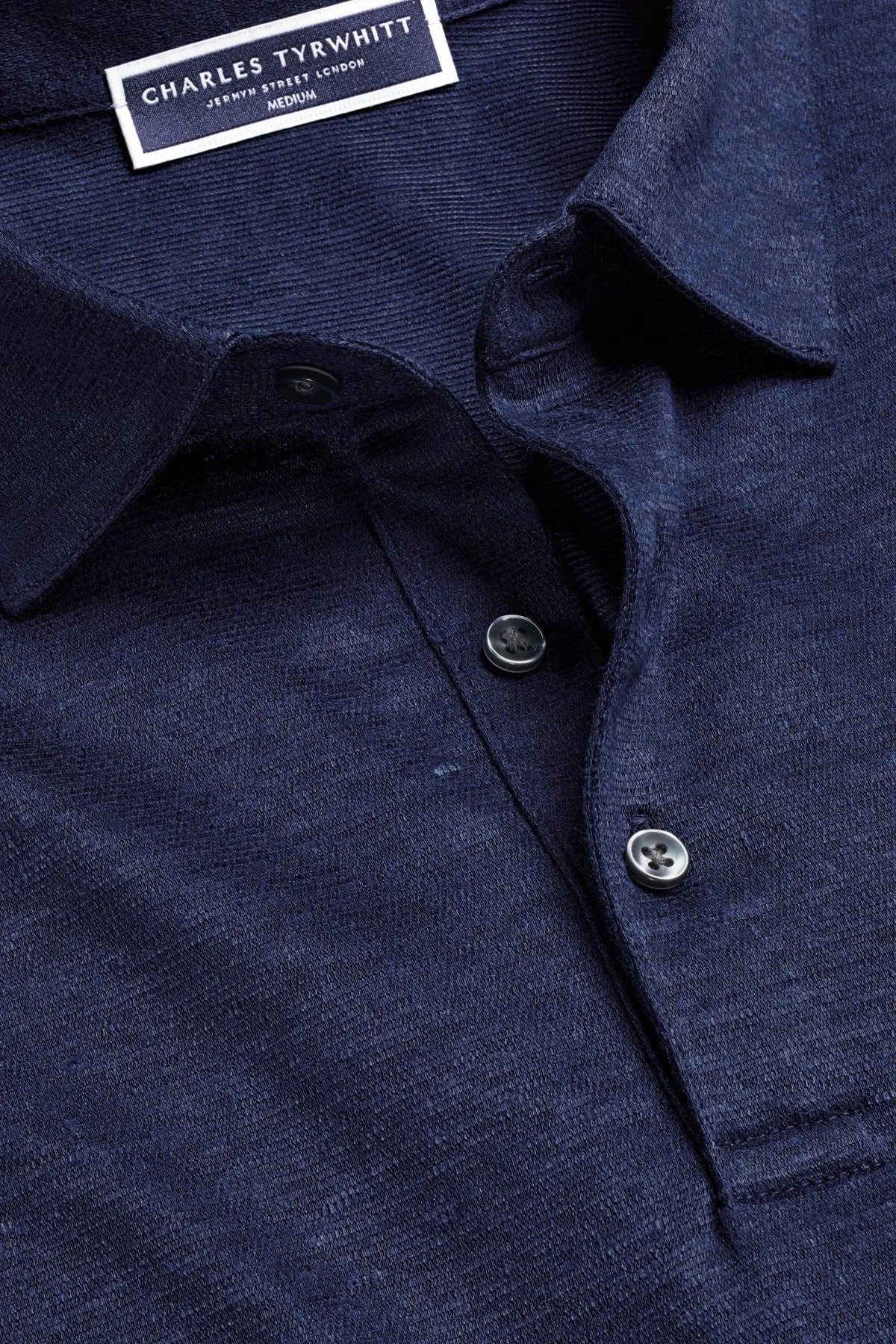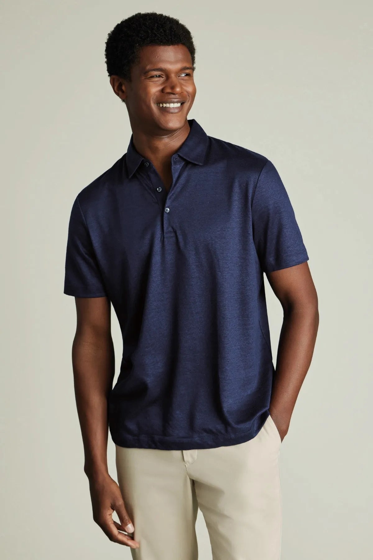 Navy Blue Short Sleeve Linen Polo