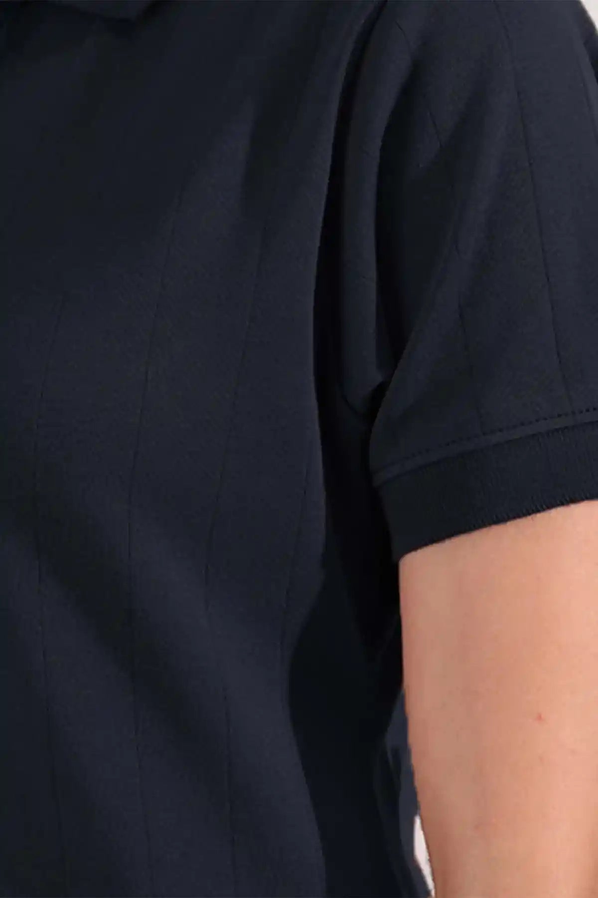 Navy Drop Needle Zip POLO (Women)