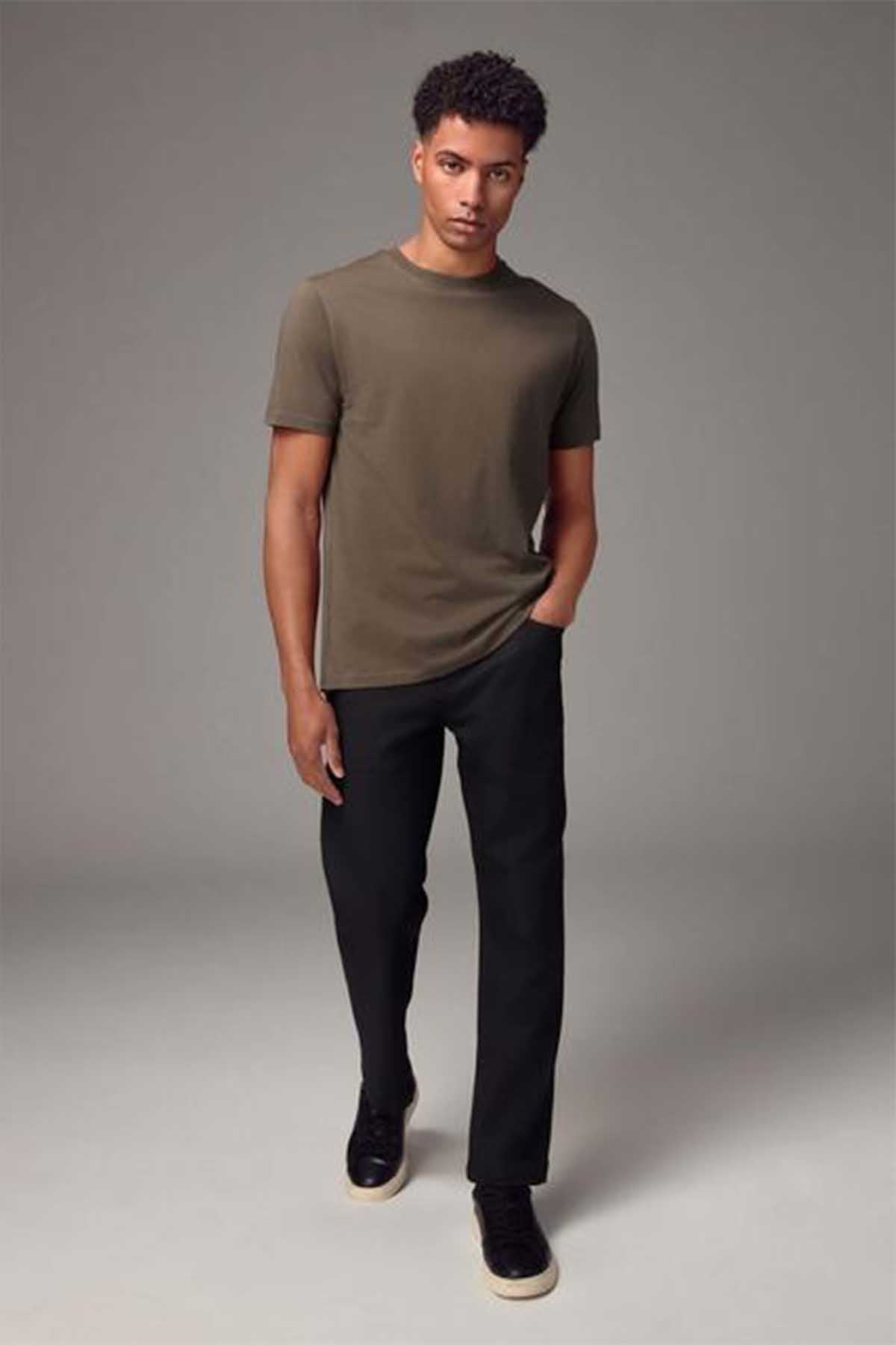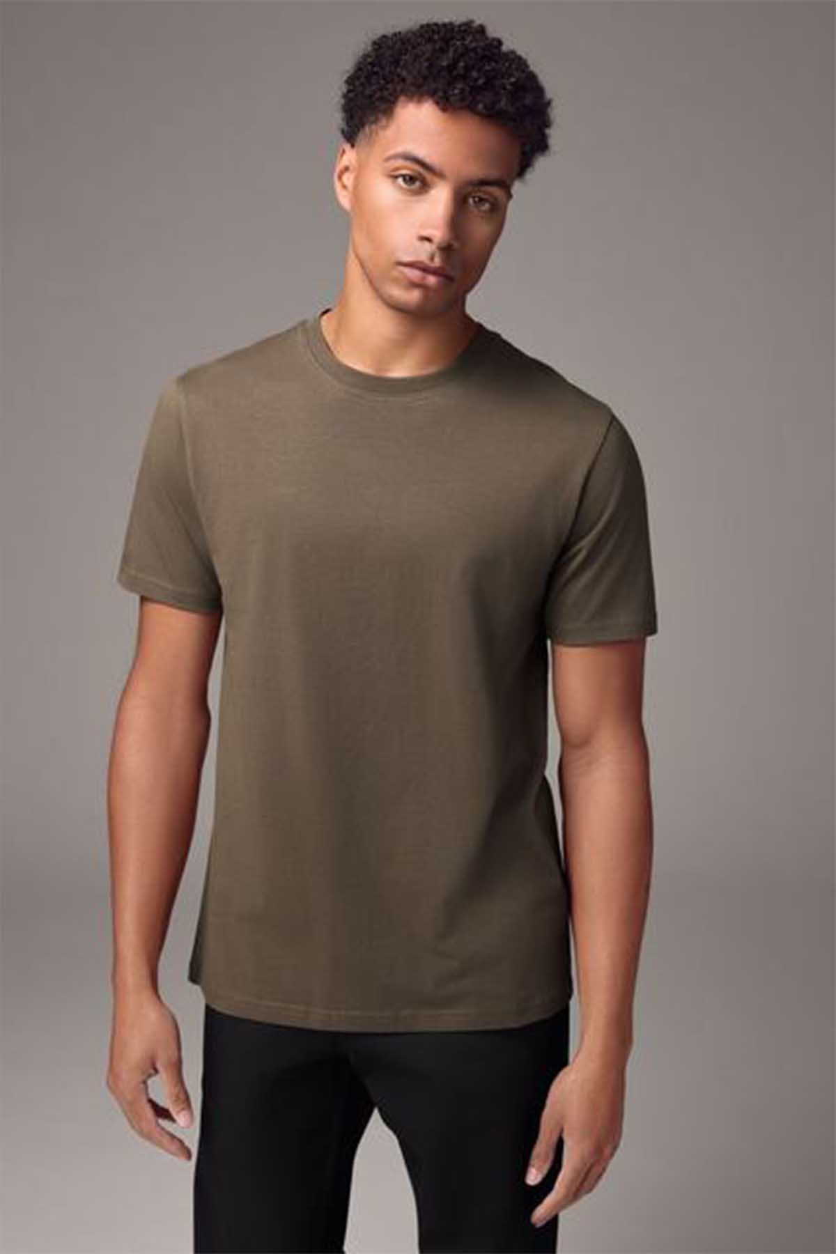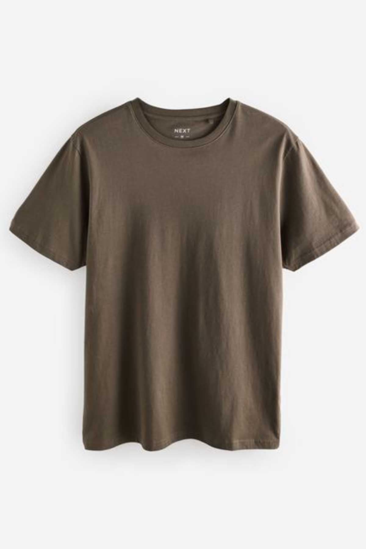 Neutral Brown Regular Fit Essential Crew Neck Cotton T-Shirt