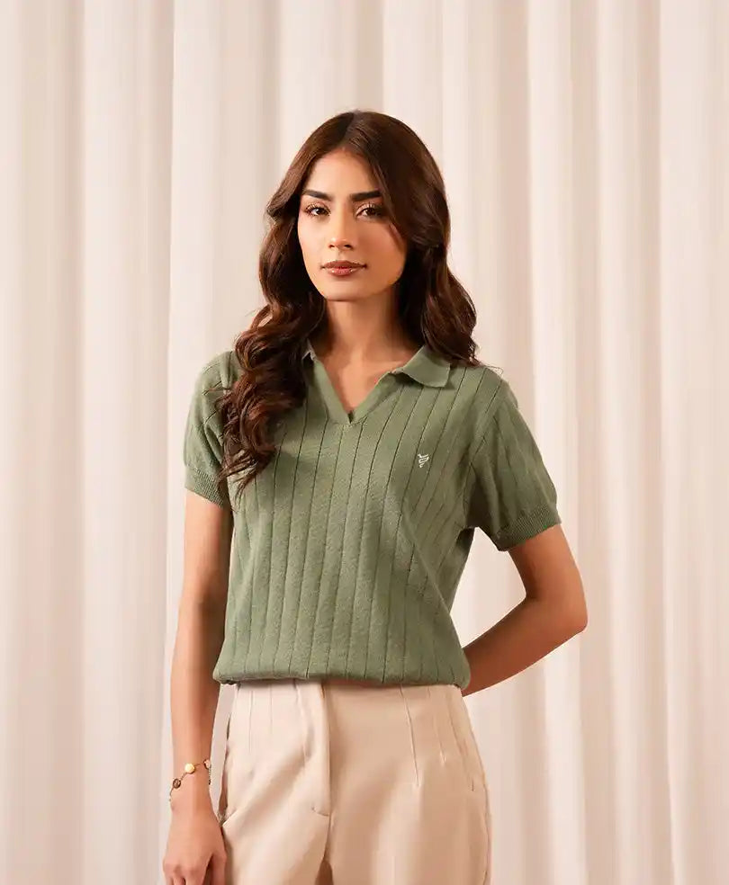 Olive Knitted POLO (Women)