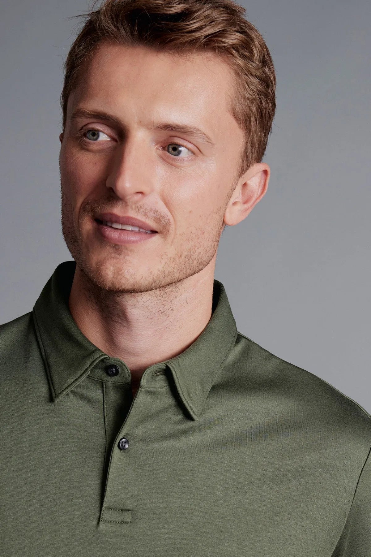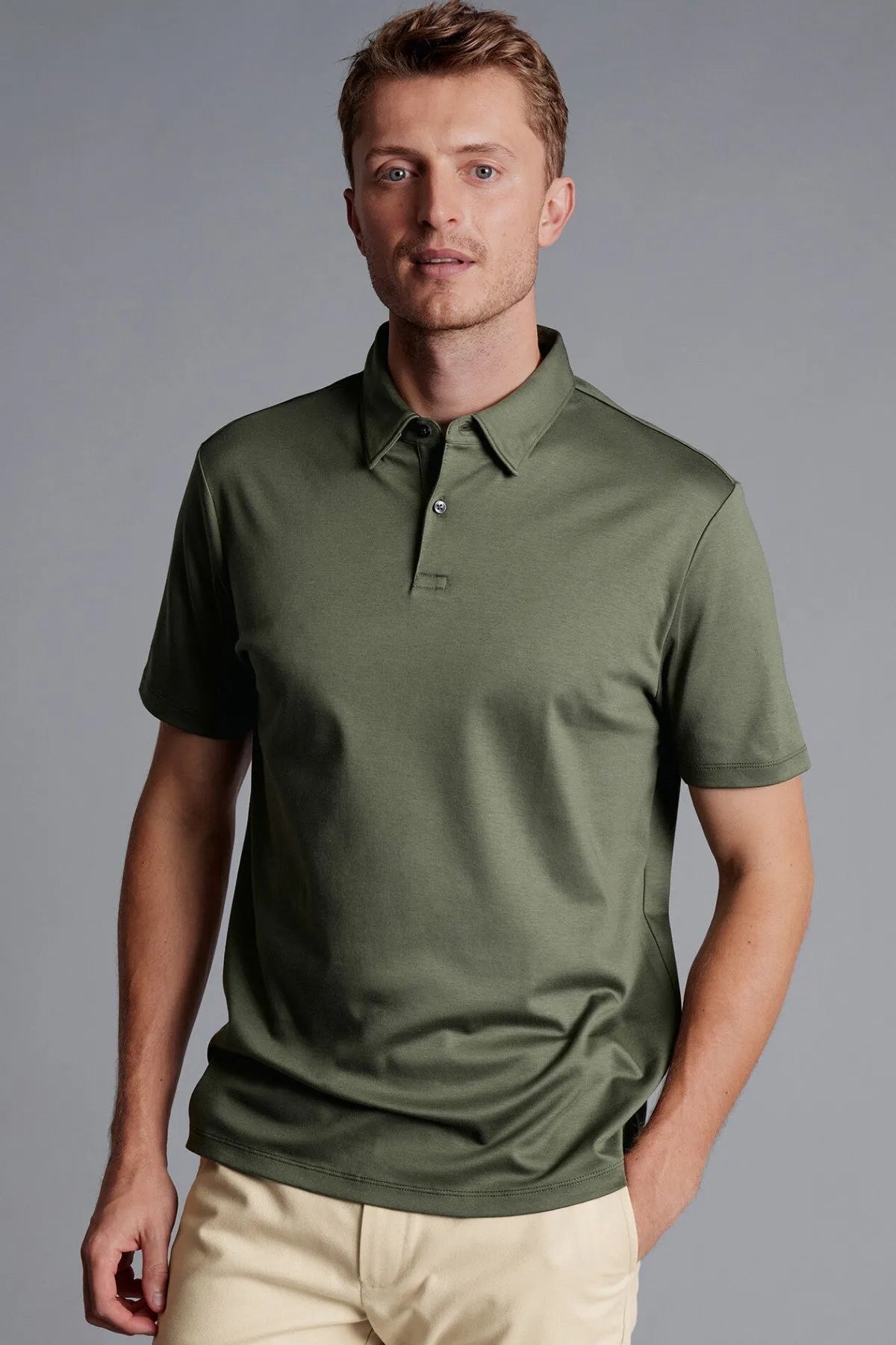 Mercerised yarn for a silky handfeel, Concealed button-down collar, One button placket,