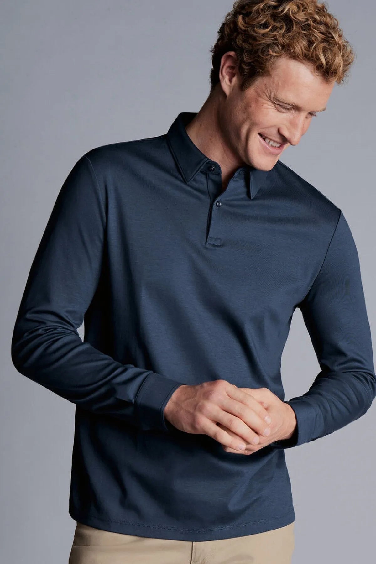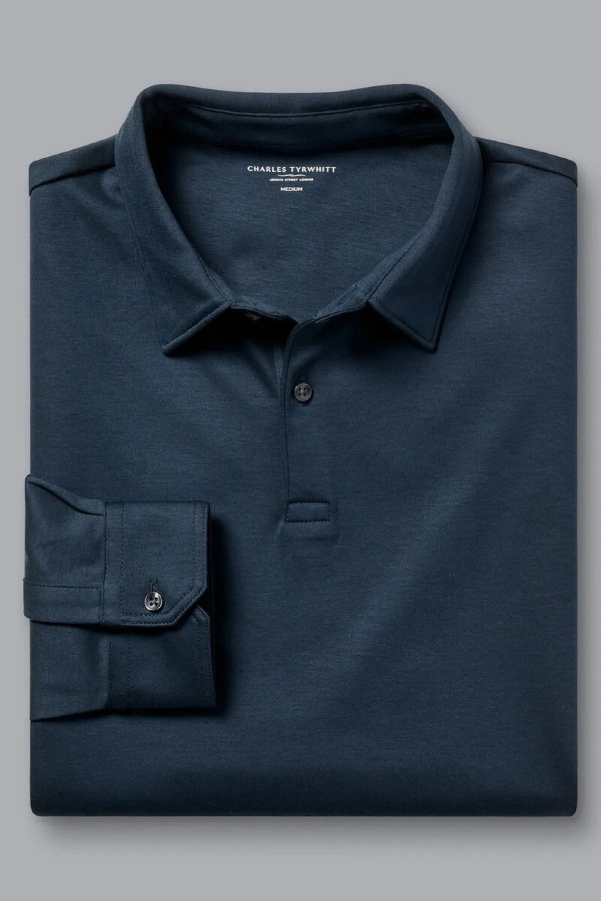 Petrol Blue Plain Long Sleeve Jersey Polo