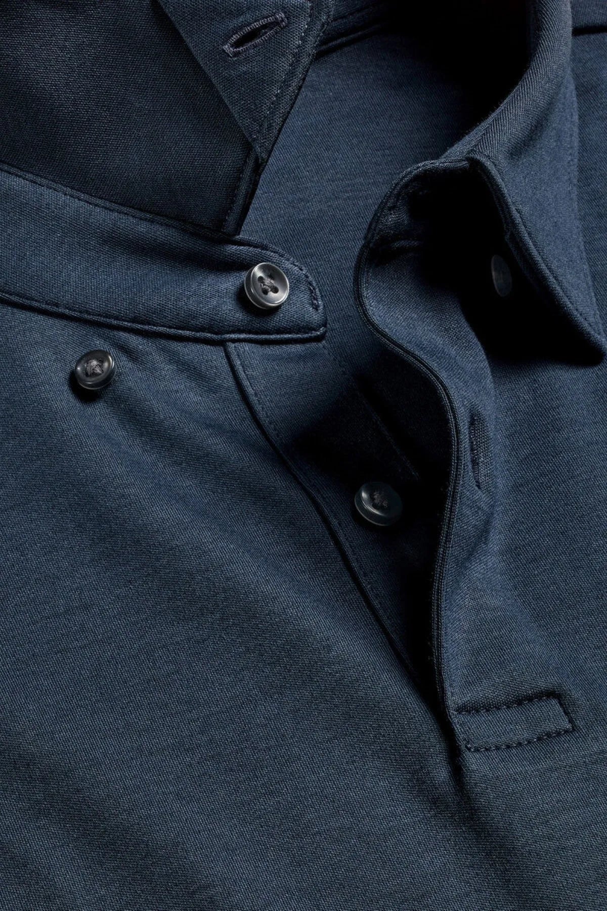 Mercerised yarn for a silky handfeel, Concealed button-down collar, One button placket,