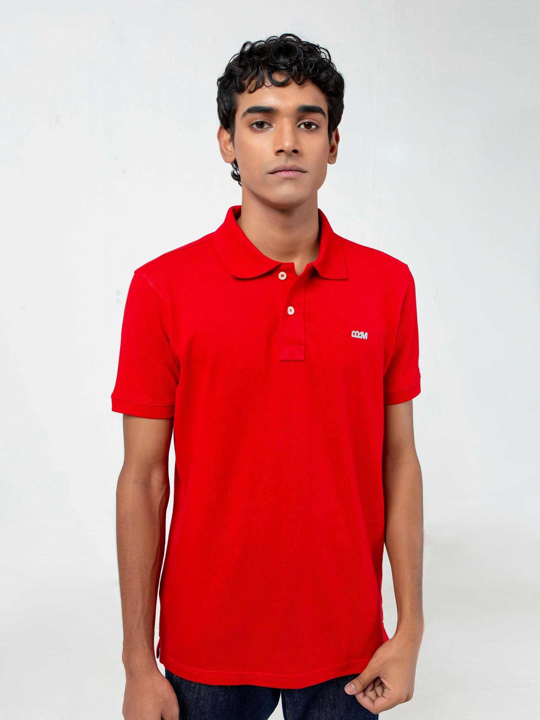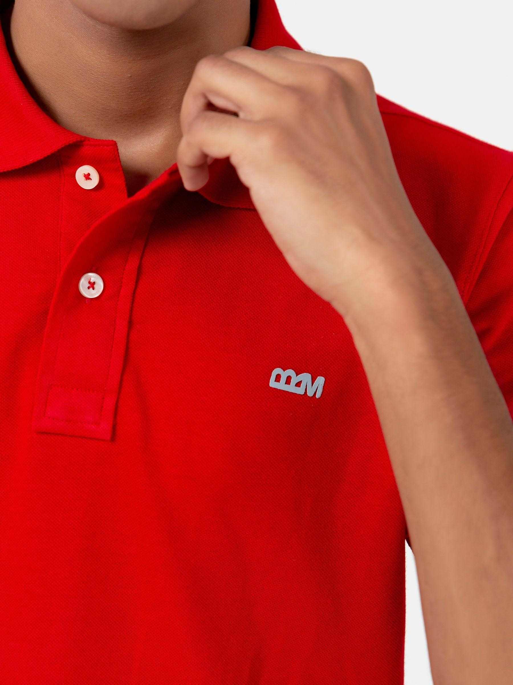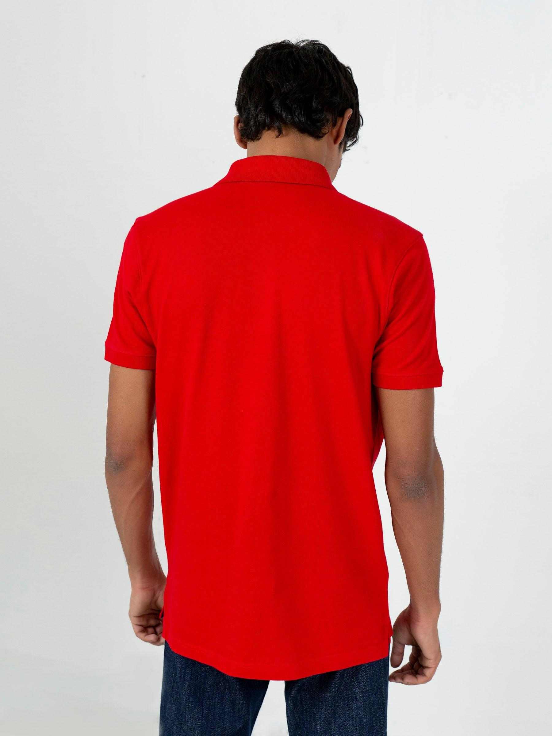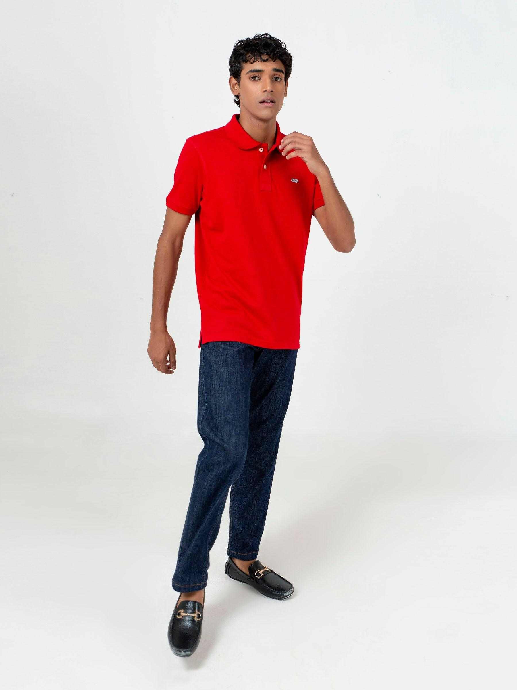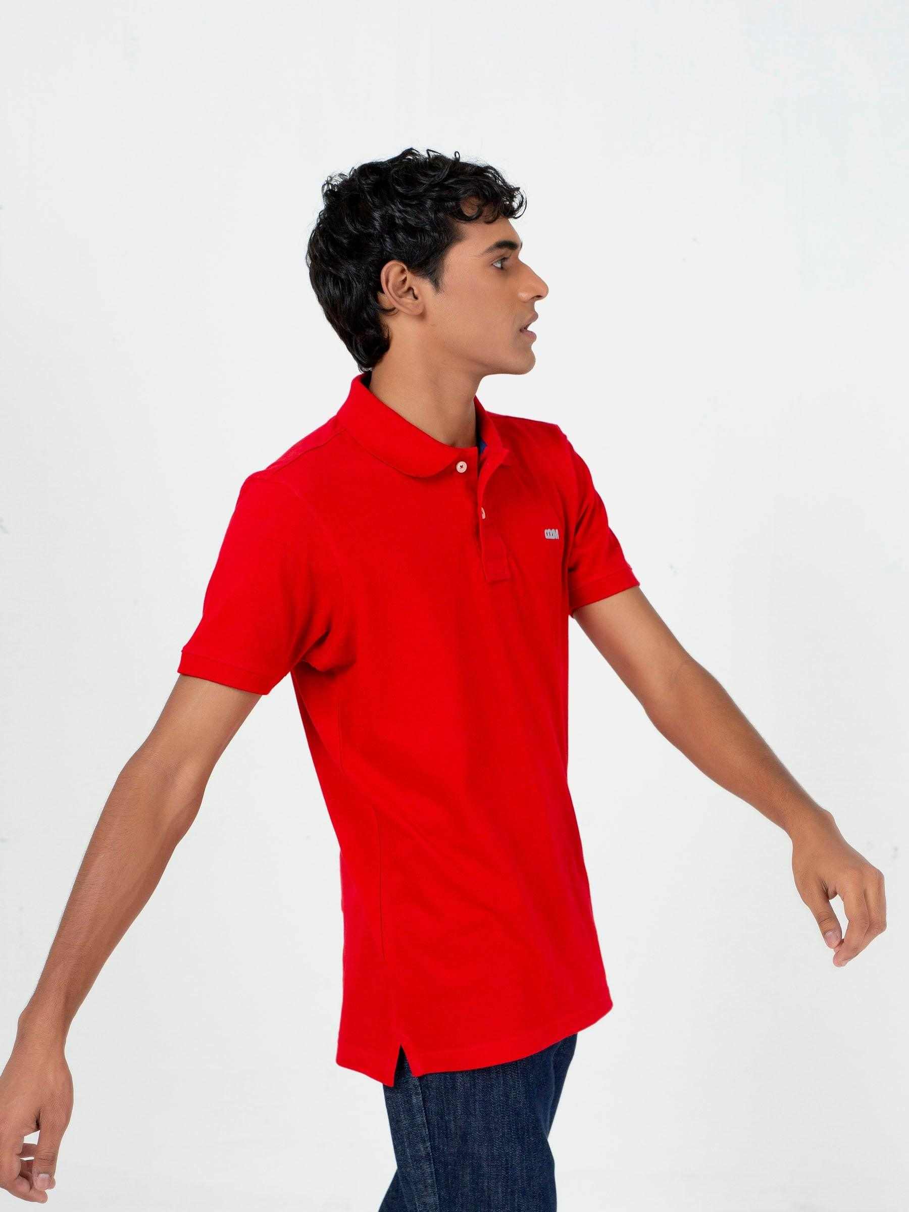 Our new two button basic pique polo is a wardrobe staple & you can never go wrong with it. Made with high quality pique fabric, this red basic polo is perfect for work wear or weekend casuals. Featuring ribbed collar, cuff & branded logo in front