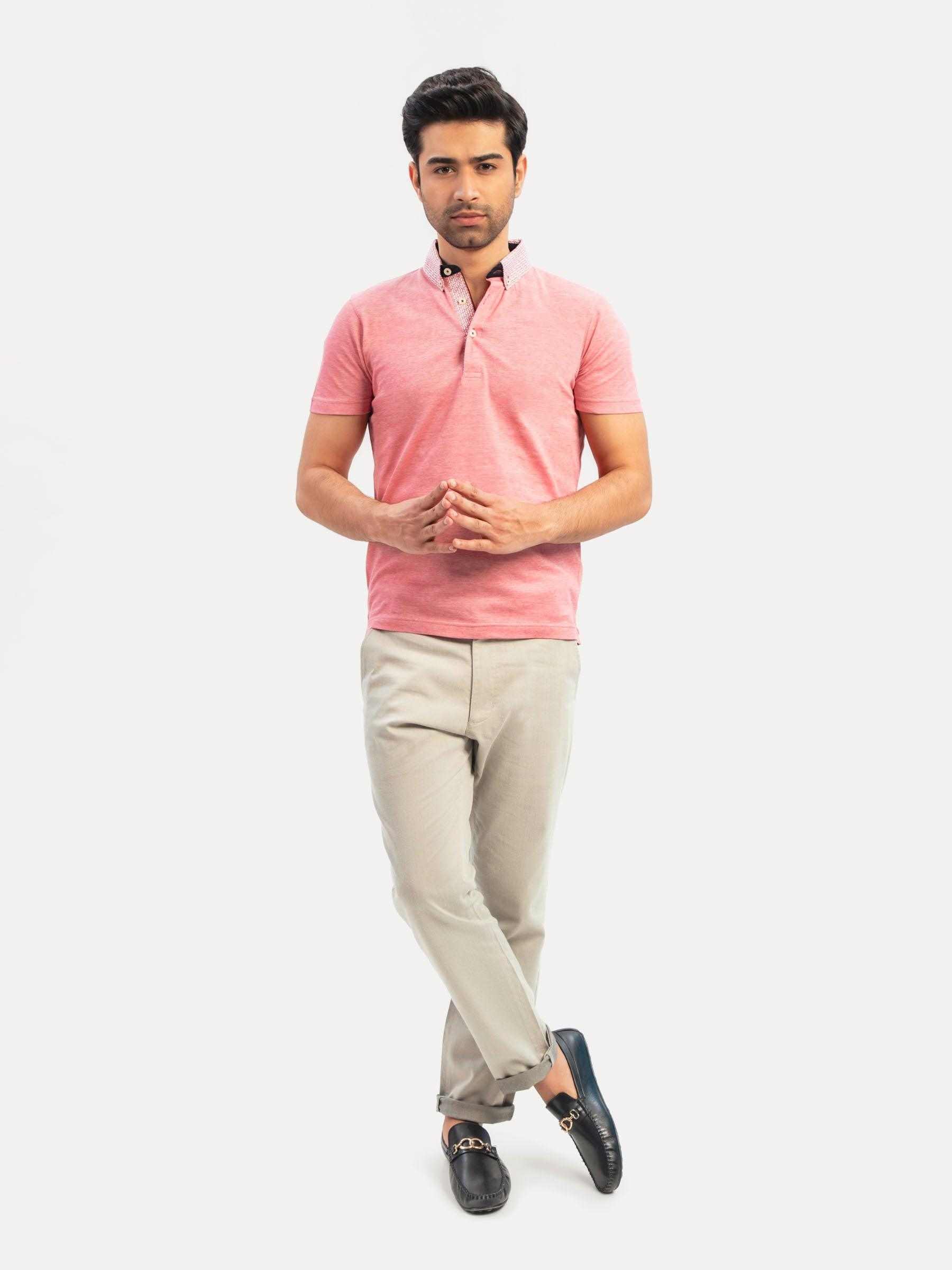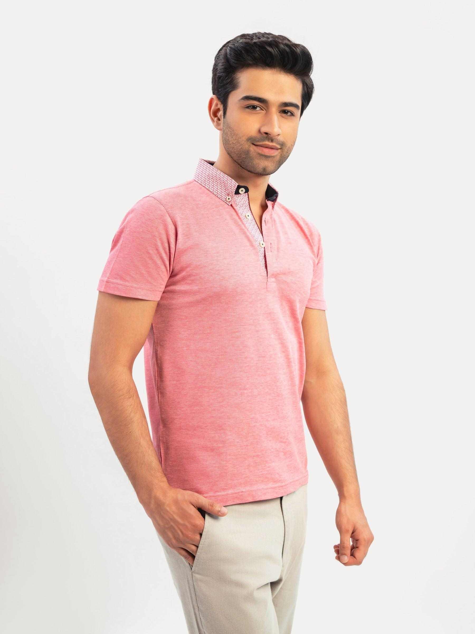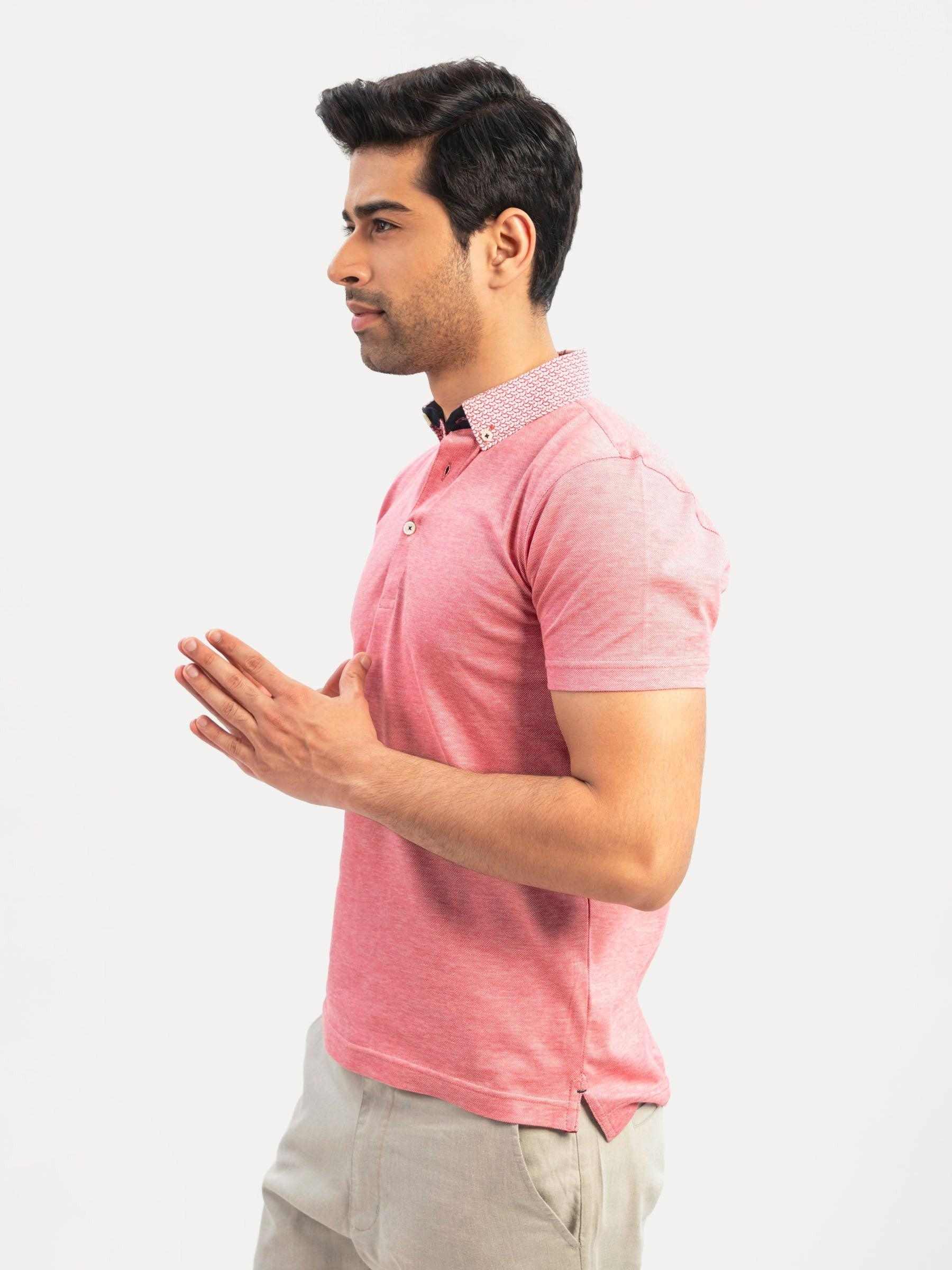 Embrace spring/summer season in our red mercerized pique polo from SS'24 collection. Beautifully knitted mercerized fabric brings a luxury touch to your wardrobe, while the printed maroon button-down collar adds a unique and stylish detail. Finished with inner placket & inner collar detailing for a casual look"