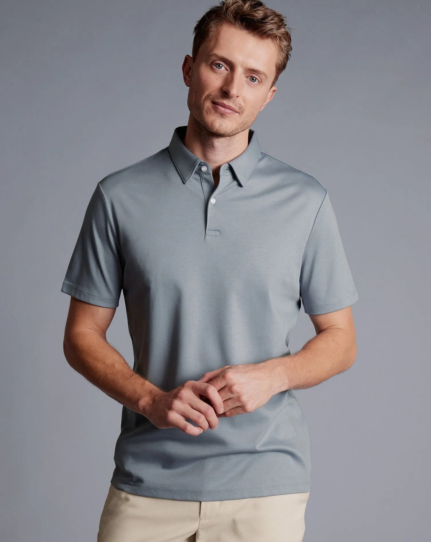 Mercerized yarn for a silky hand feel Concealed button-down collar One button placket Naturally breathable