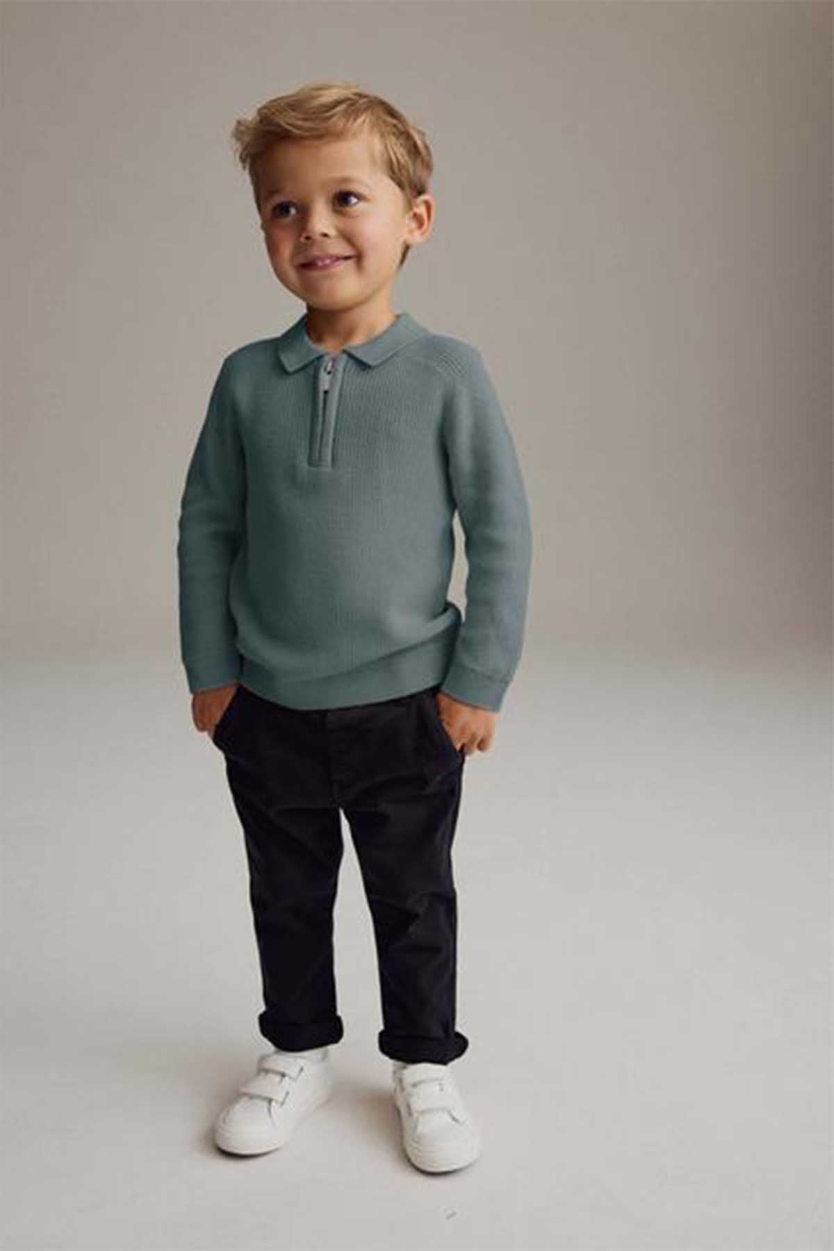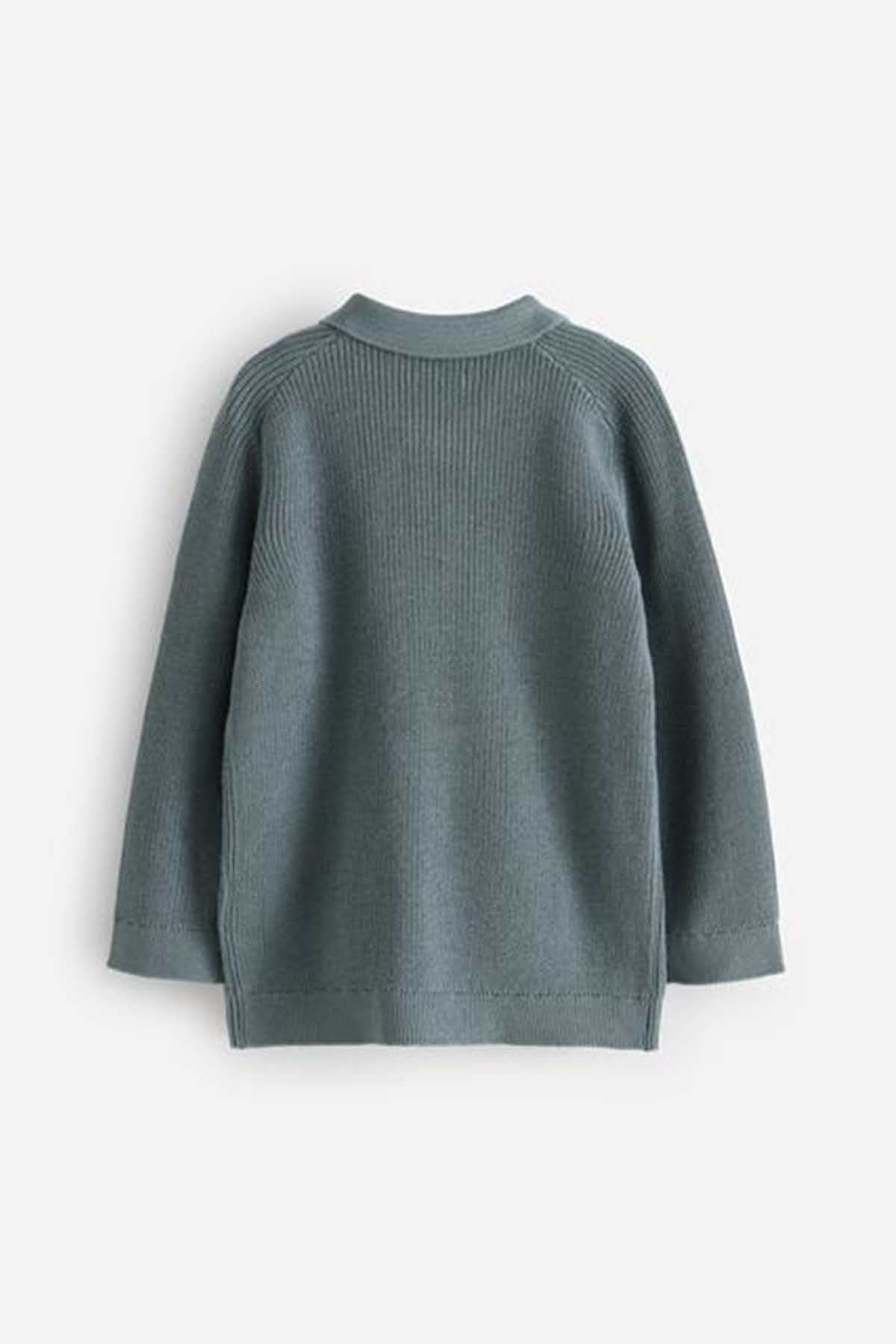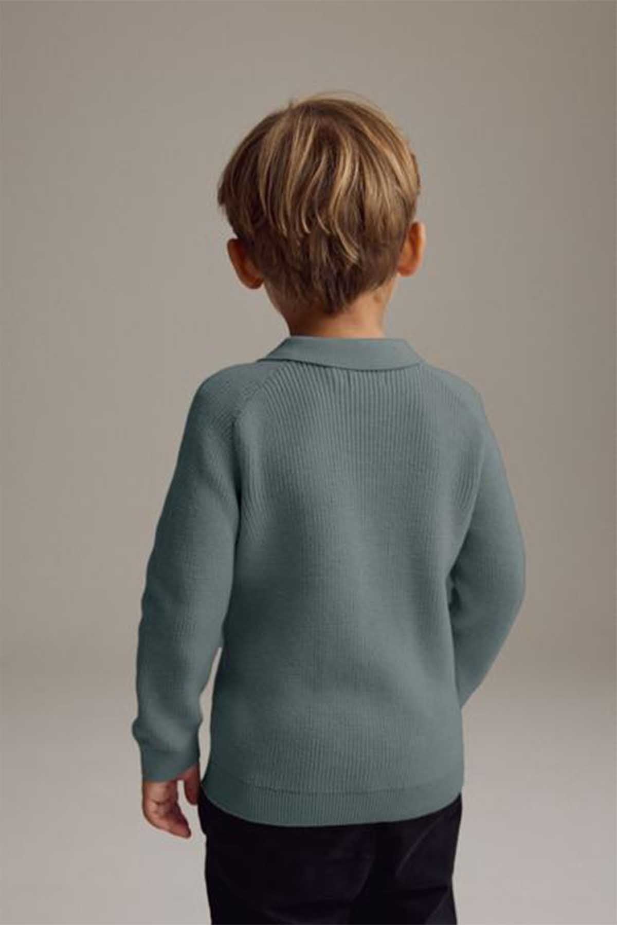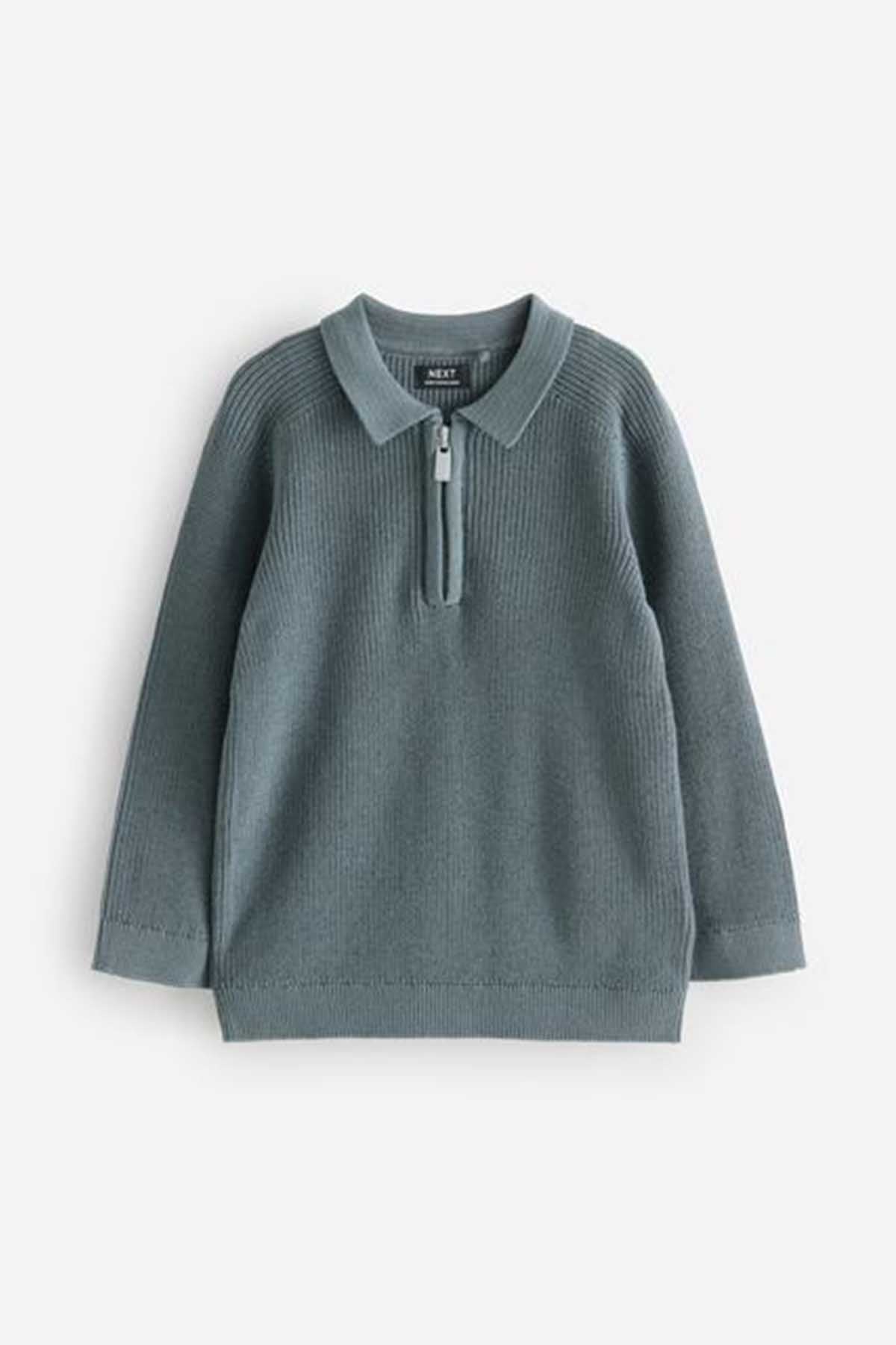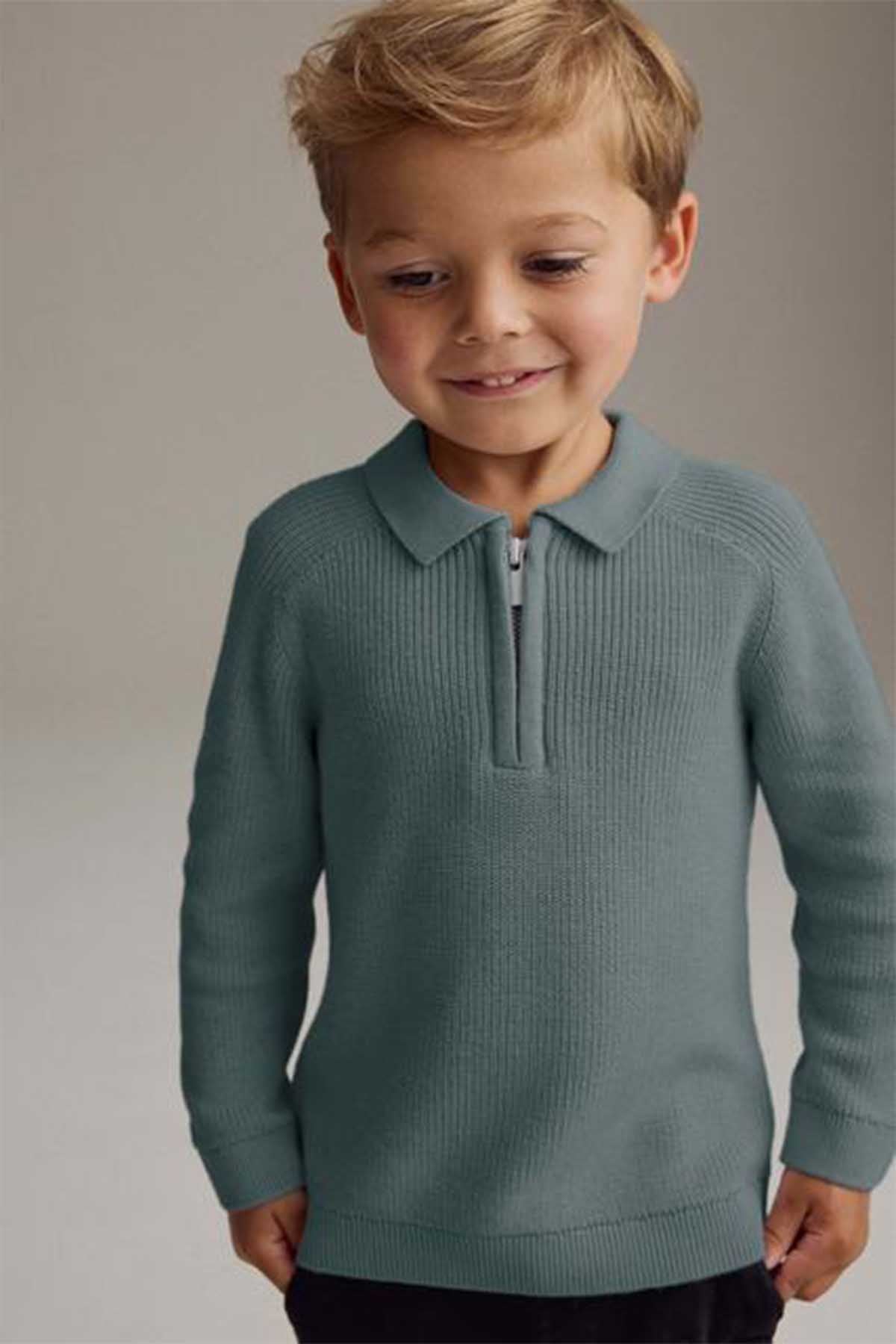 Teal Blue Long Sleeve Quarter Zip Knitted Polo Shirt (3mths-7yrs)