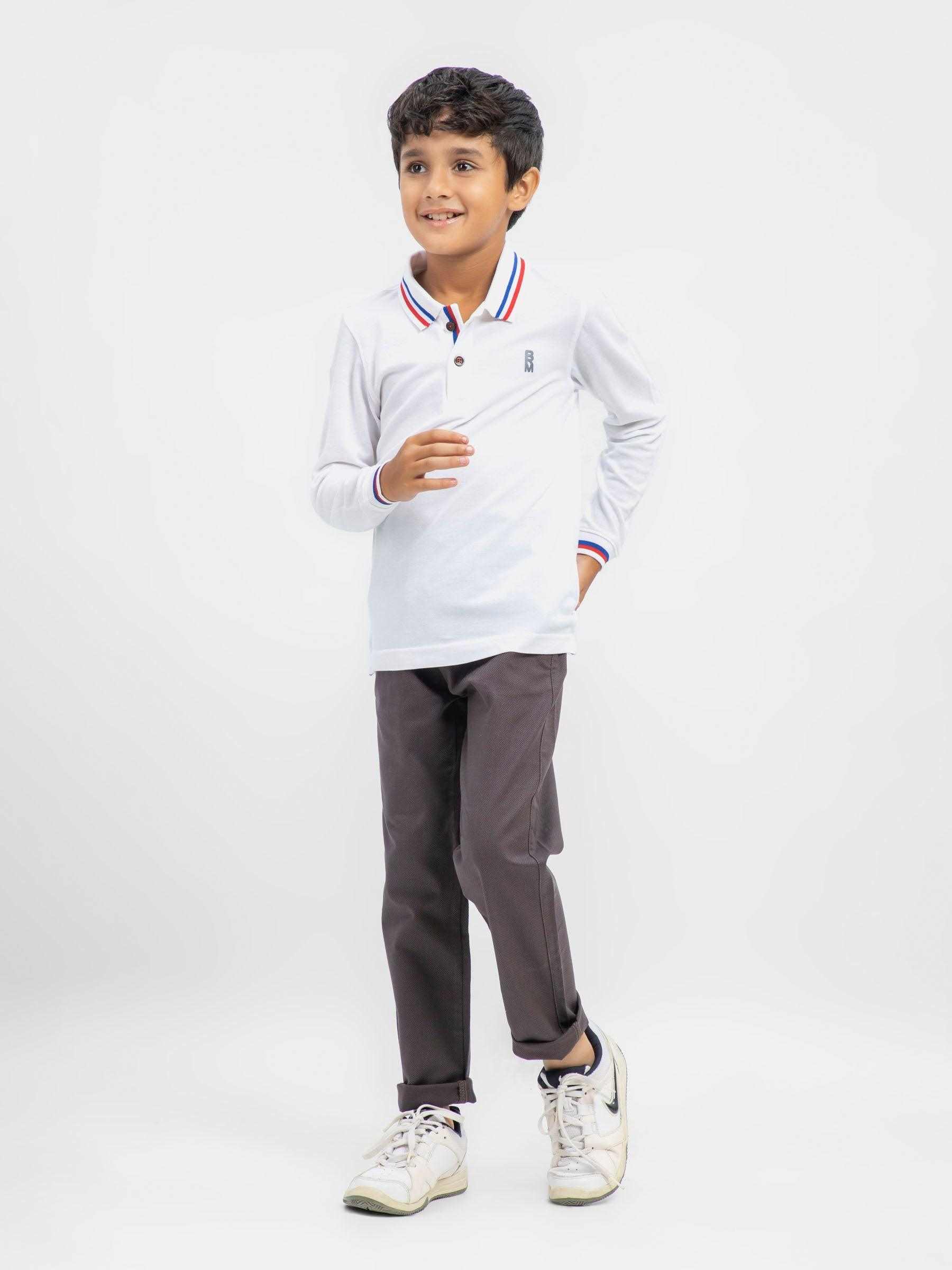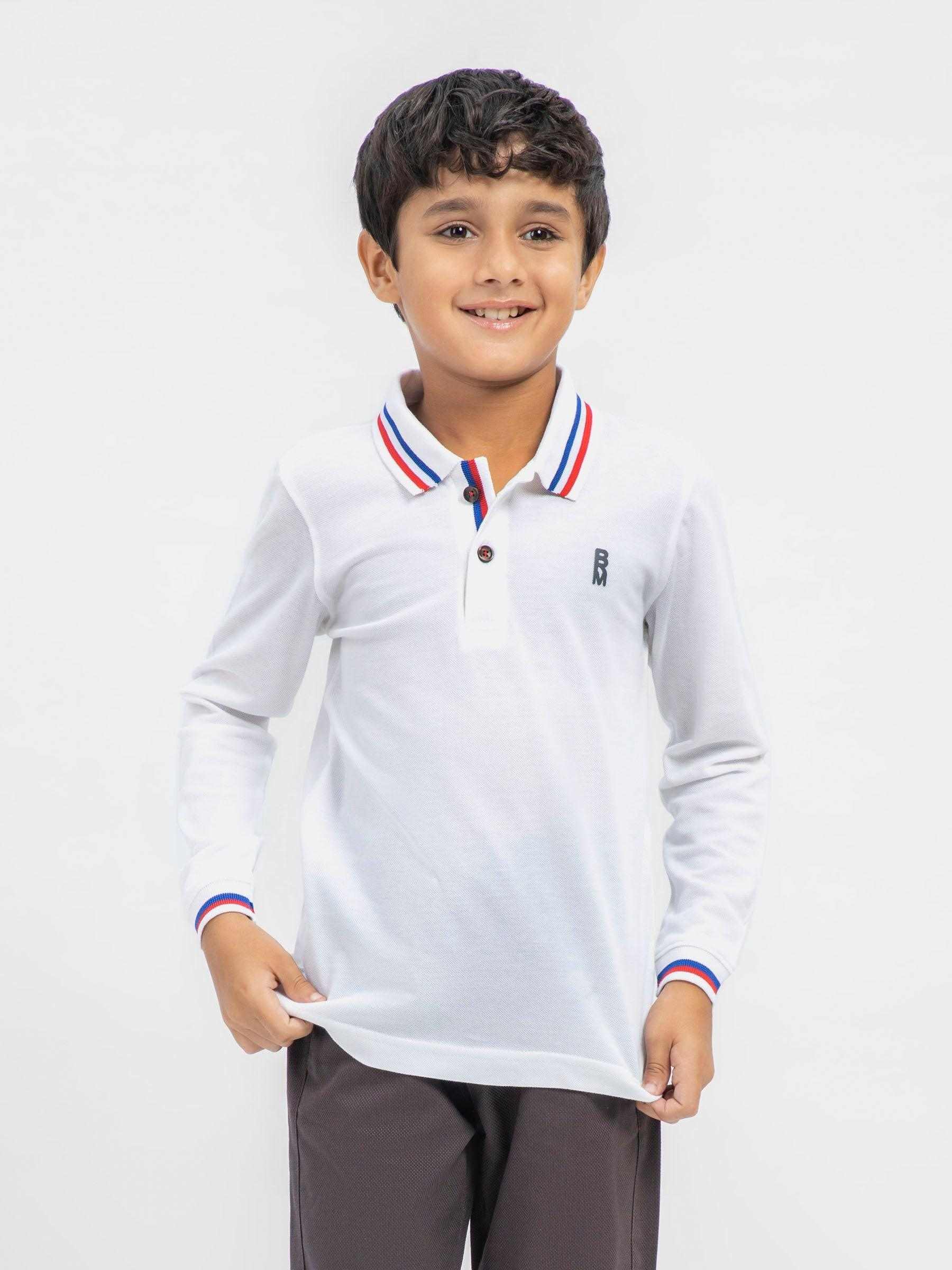 Elevate your child's style with our new white long sleeve polo shirt from FW'23 Collection. Featuring bright constrasting tipping for cool yet sophisticated look. Made from high-quality materials, this pique polo offers both comfort and durability, making it perfect for everyday wear.