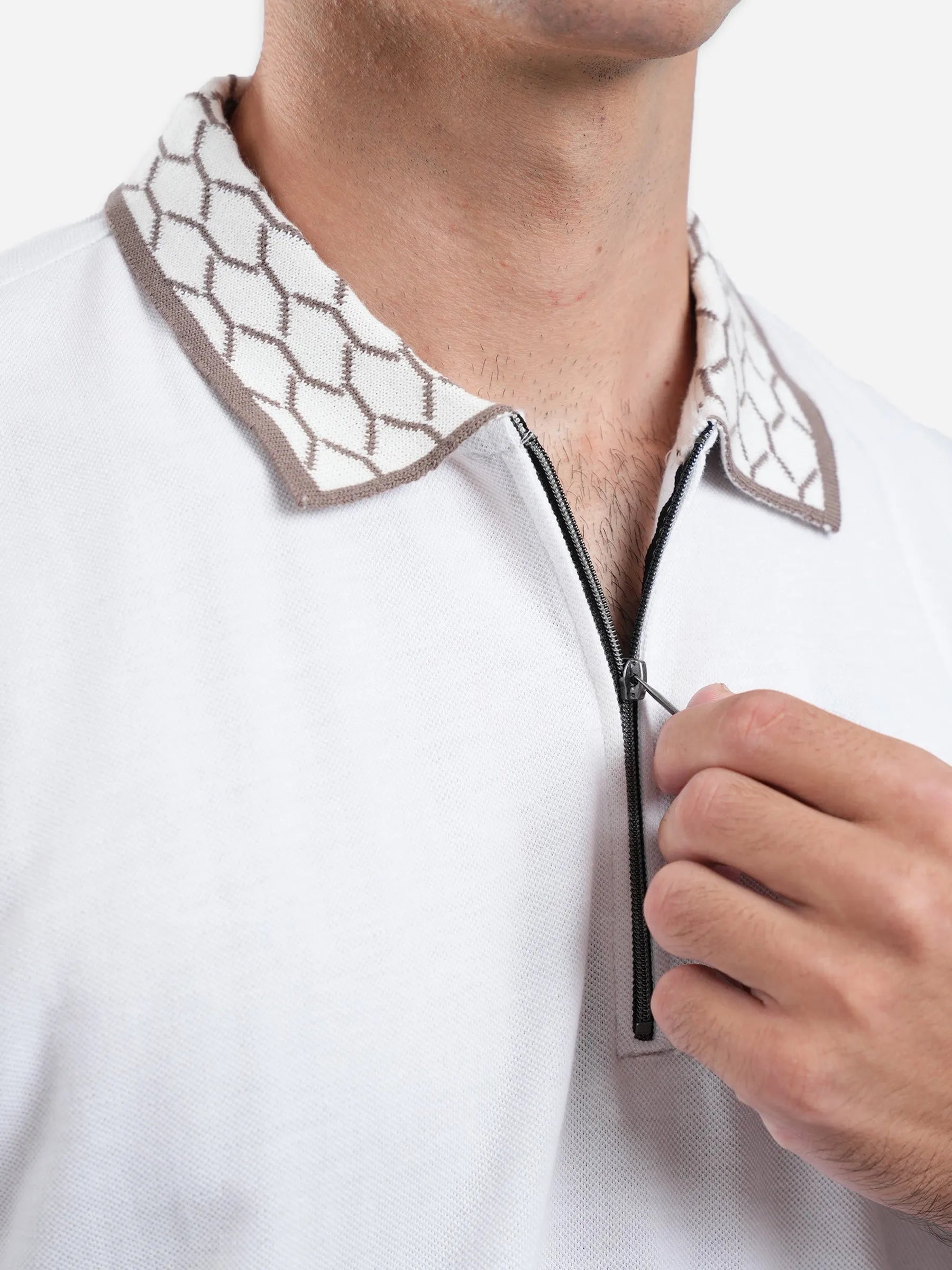 Upgrade your everyday style with this maroon zipper polo shirt featuring a jacquard collar. Made from high-quality pique fabric, this men's polo combines comfort with contemporary design. The stylish half-zip front adds a modern twist, while the textured jacquard collar brings a refined touch. Perfect for smart-casual looks, this maroon polo shirt transitions seamlessly from day to night.