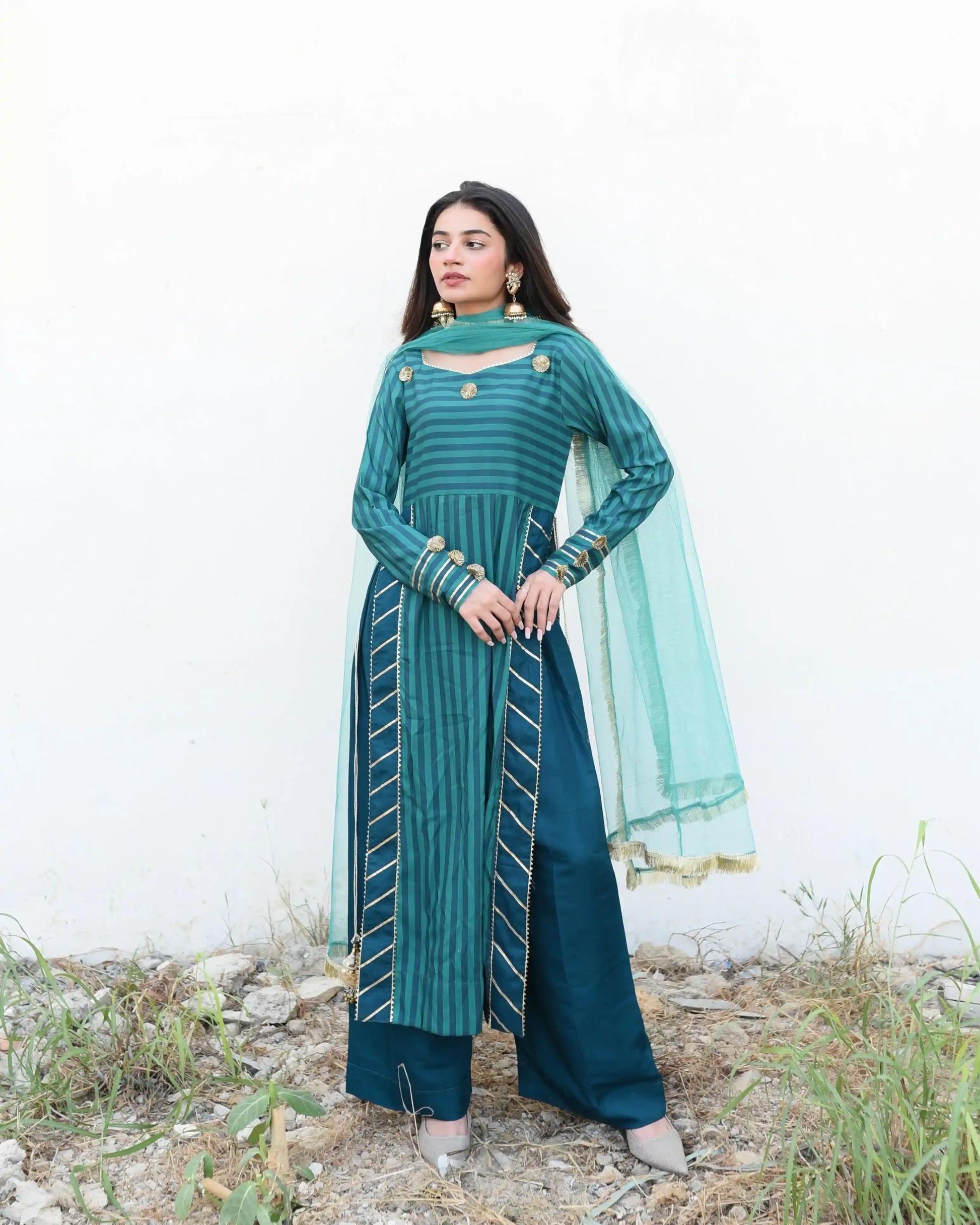 Green Stripe Gota Suit