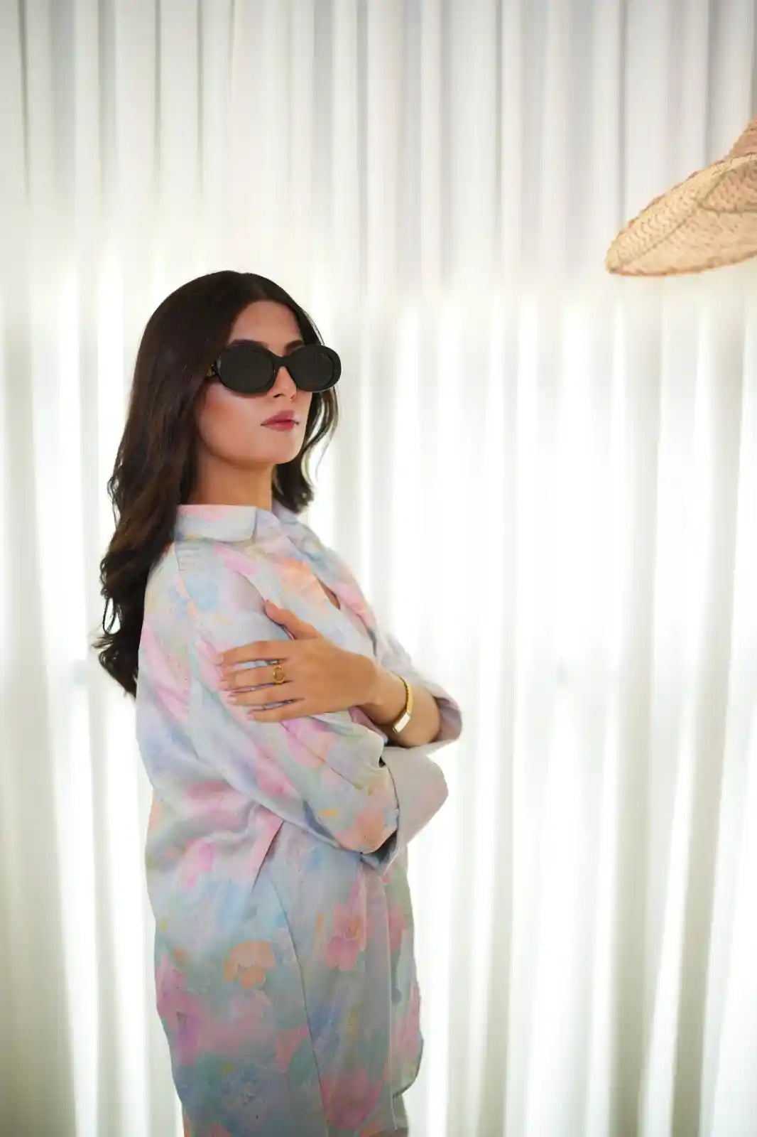 Step into refined elegance with our florence silk matching cord set in a dreamy pastel floral print. The button-down shirt exudes sophistication with its smooth, flowy silhouette, while the straight-cut trousers provide a sleek and comfortable fit