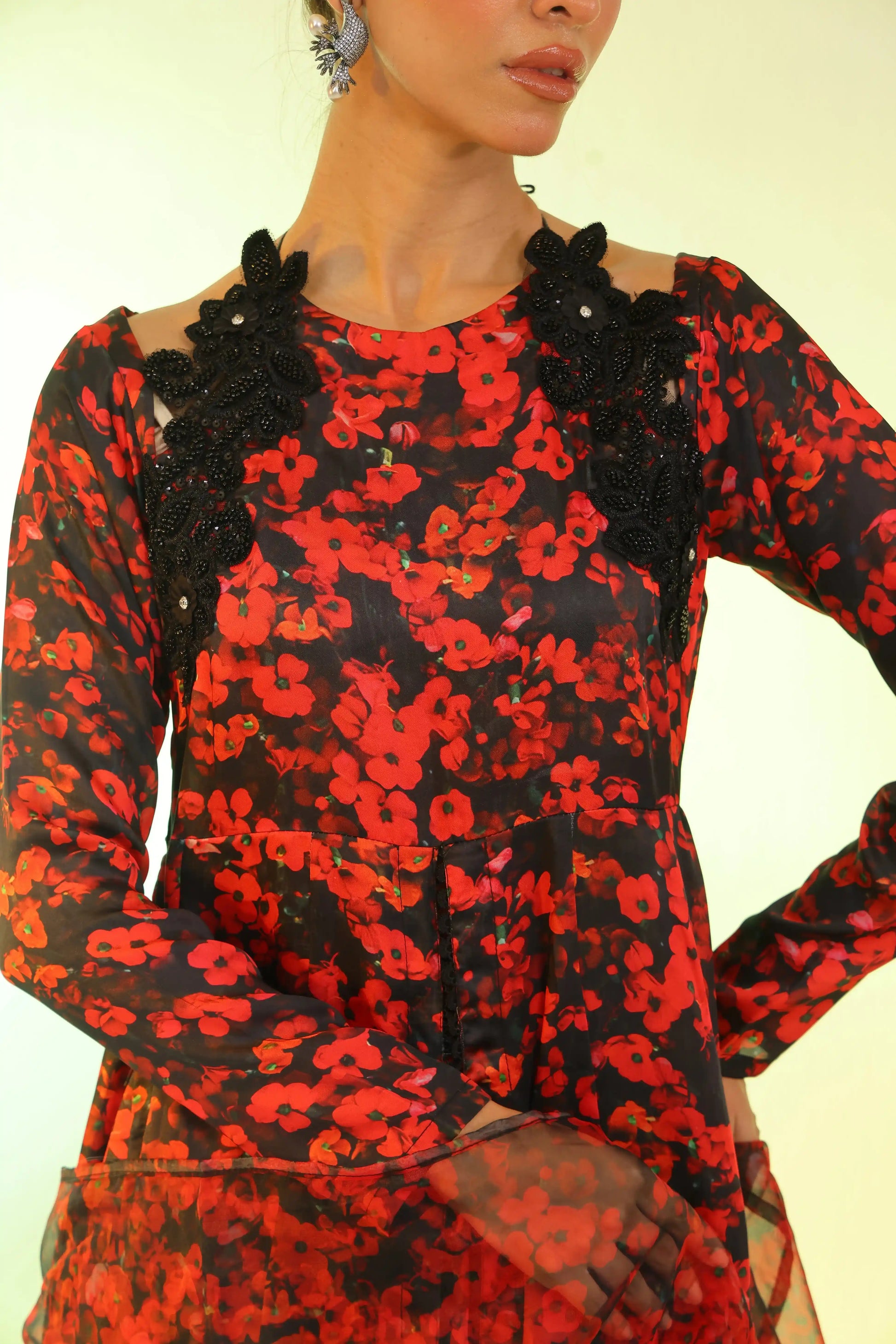 Neckline Detailed with Cutdana-Embroidered Bunches