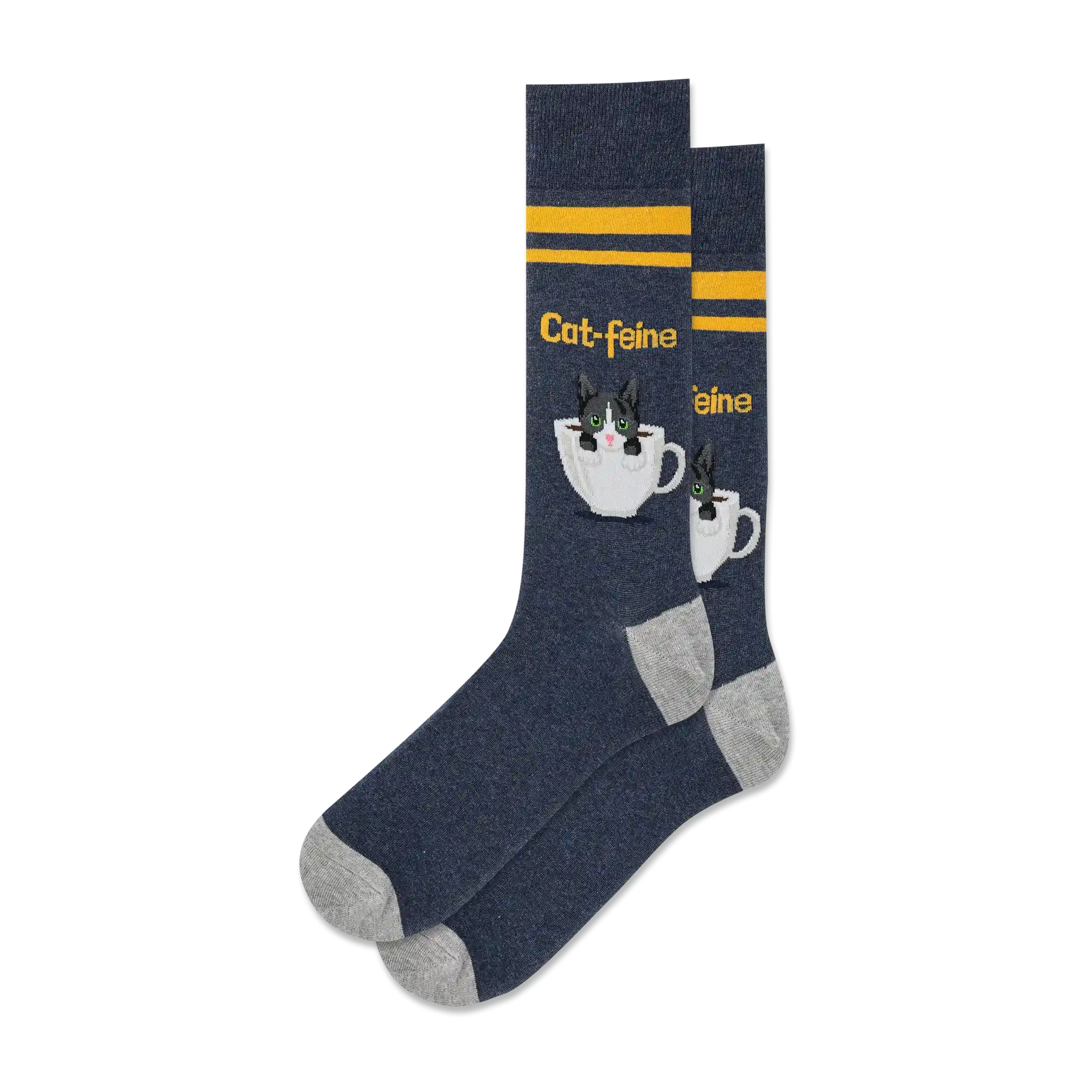 Display your combined love of cats and coffee with these comfortably crafted socks. Throw them on before your morning brew and let kitty snuggle up next to you. It's like a little slice of heaven.