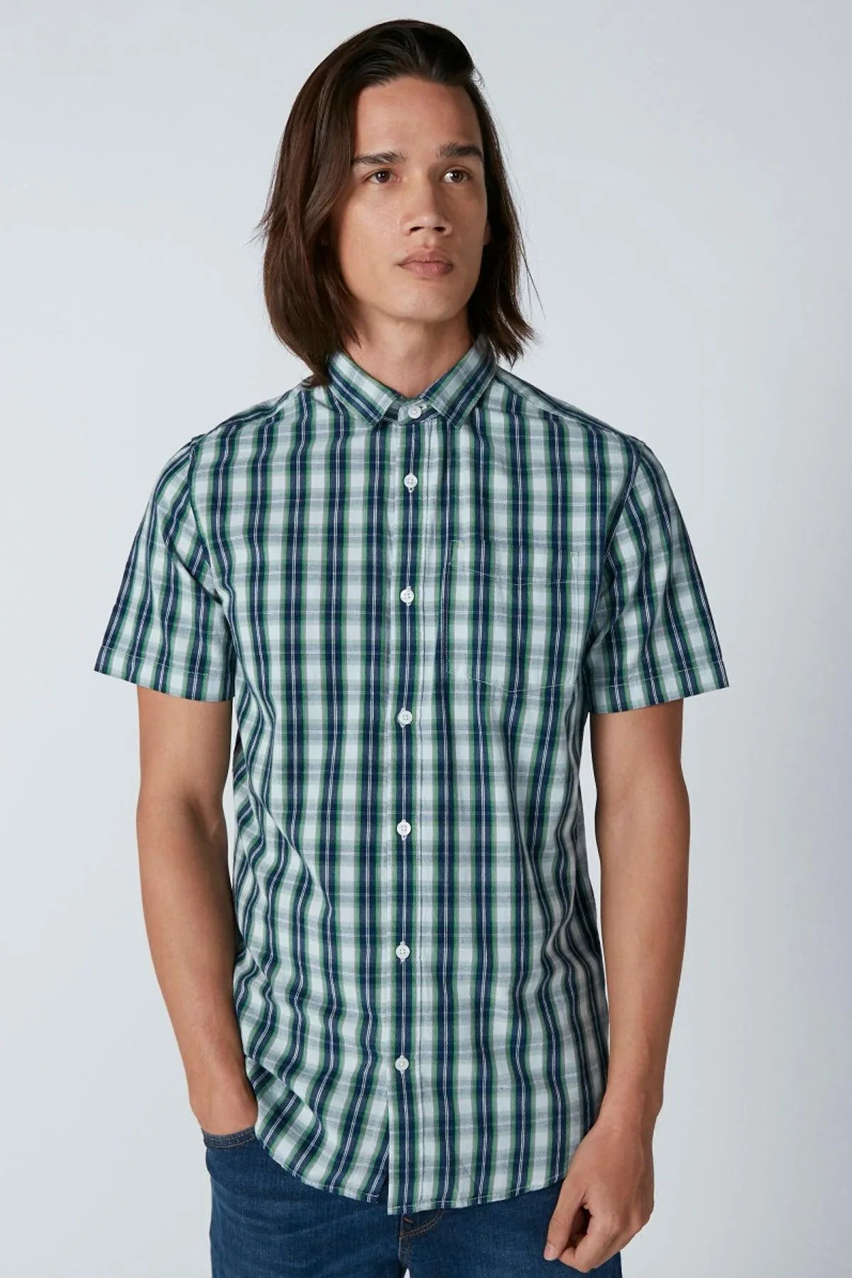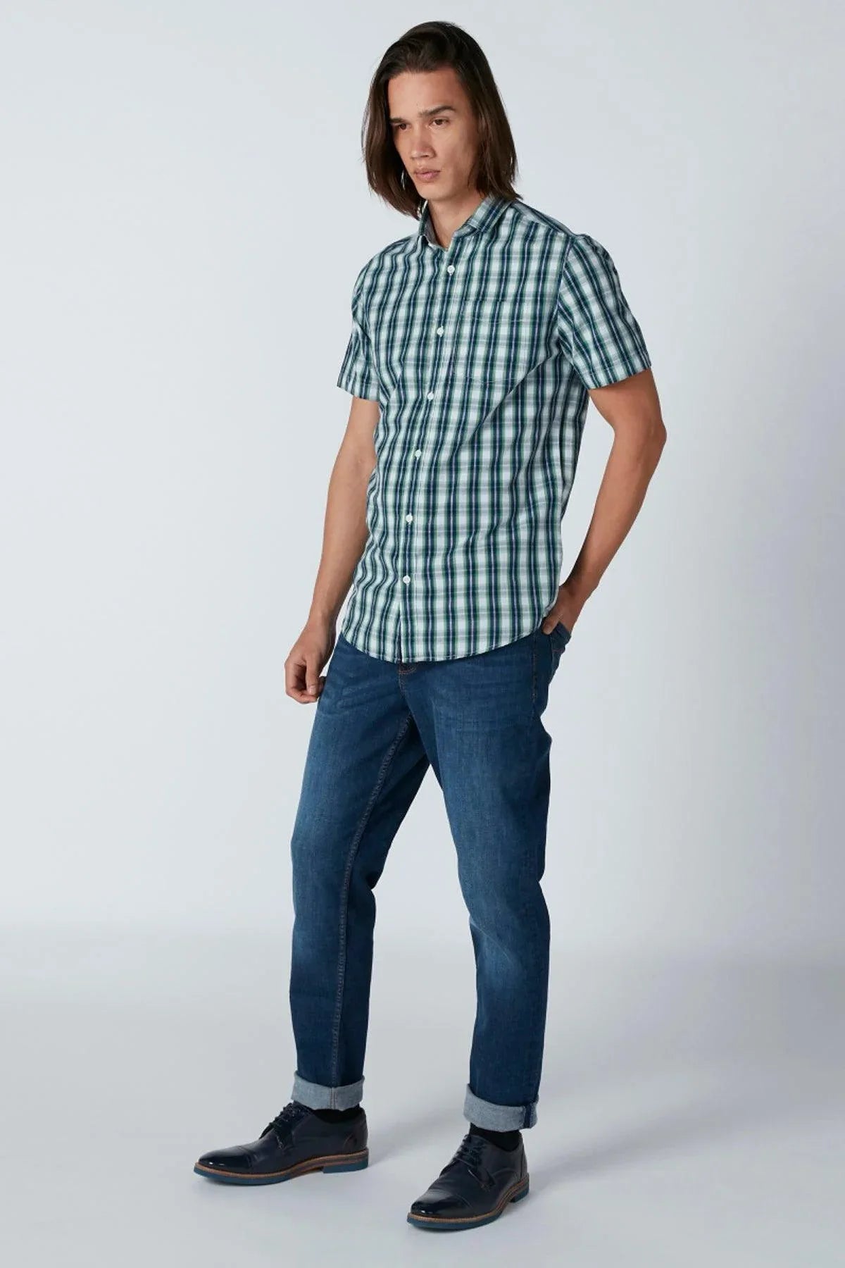 Chequered Shirt with Short Sleeves and Pocket Detail