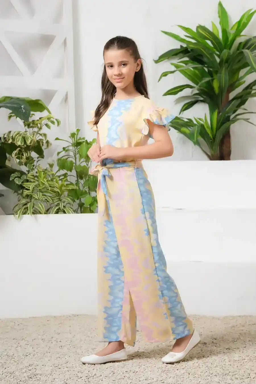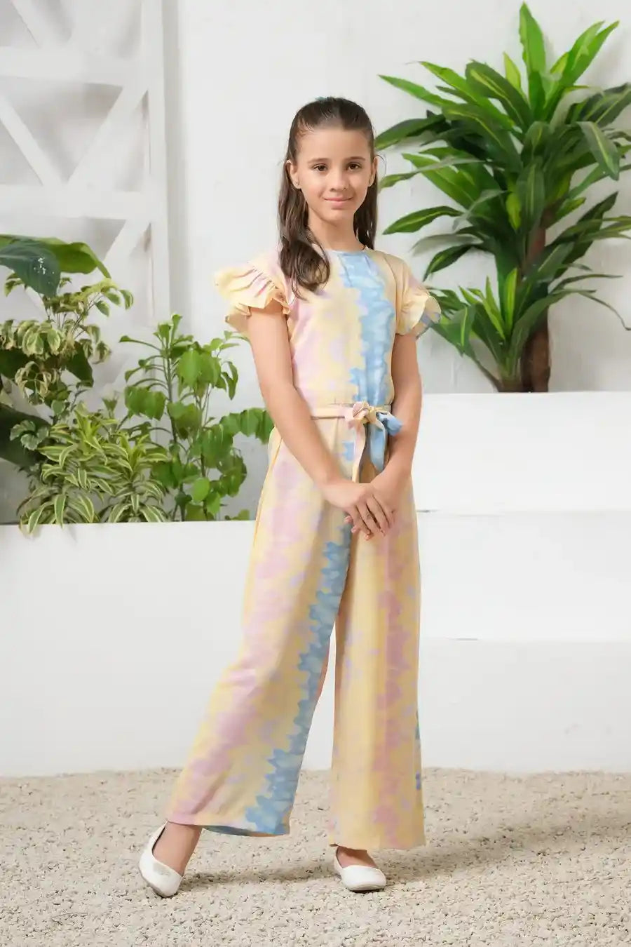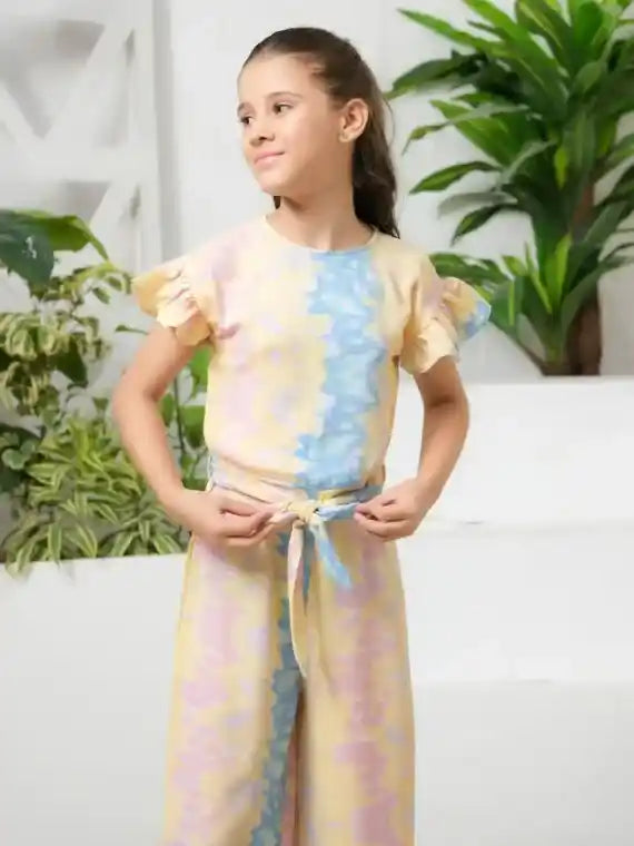 Cosmic Candy Tie-Dye Ruffle Trim Belted Jumpsuit
