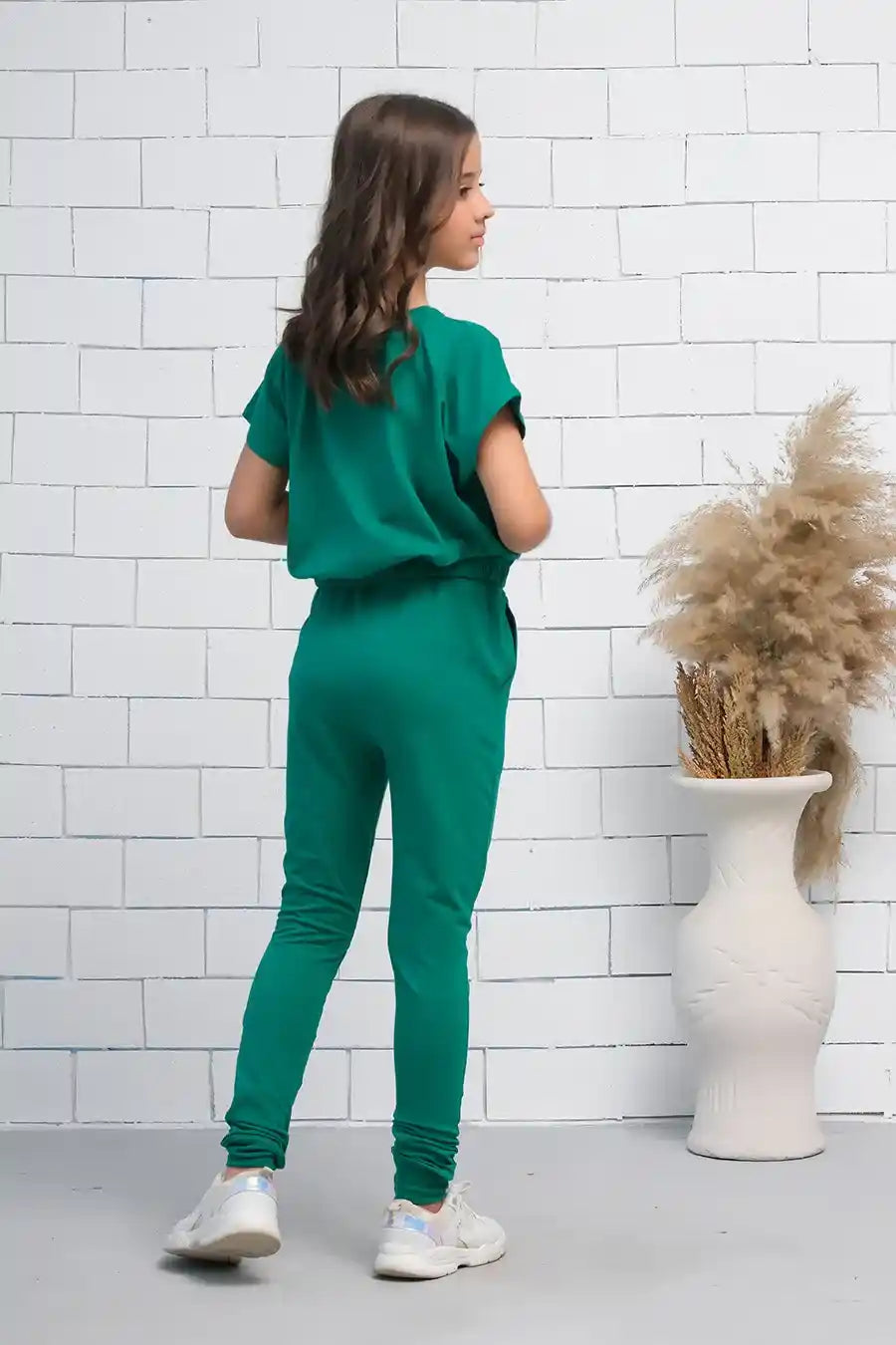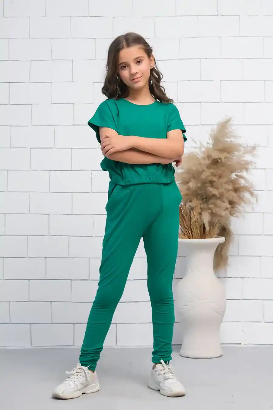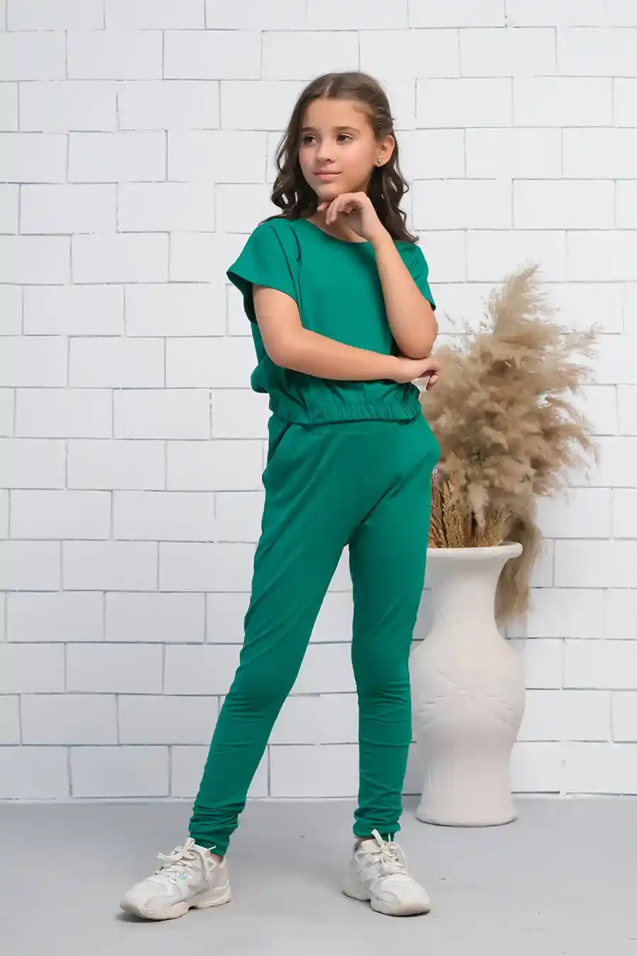 Green 2Pcs Cord Set with Short Sleeves Shirt and Trouser